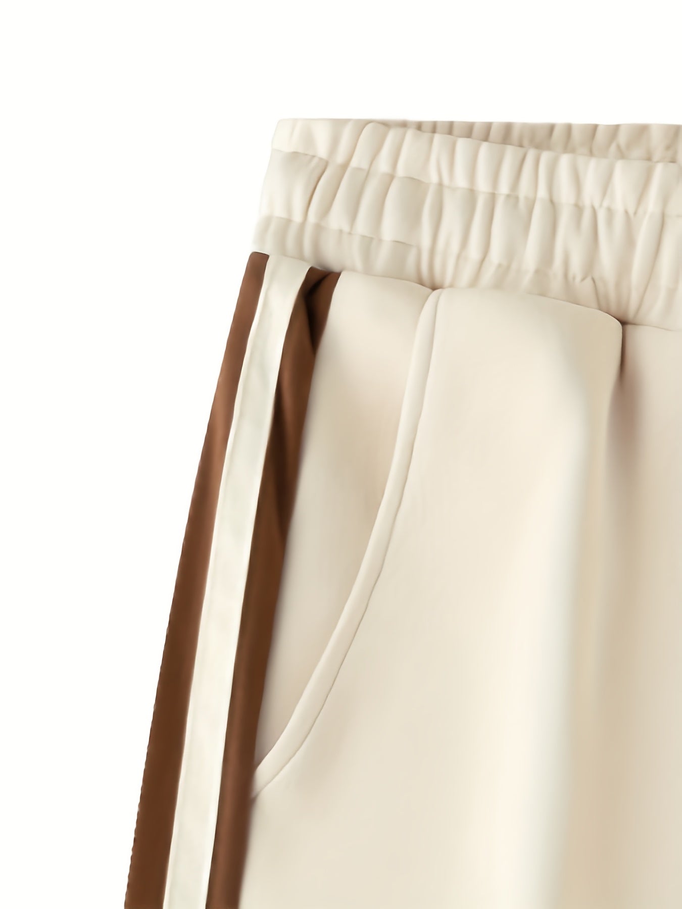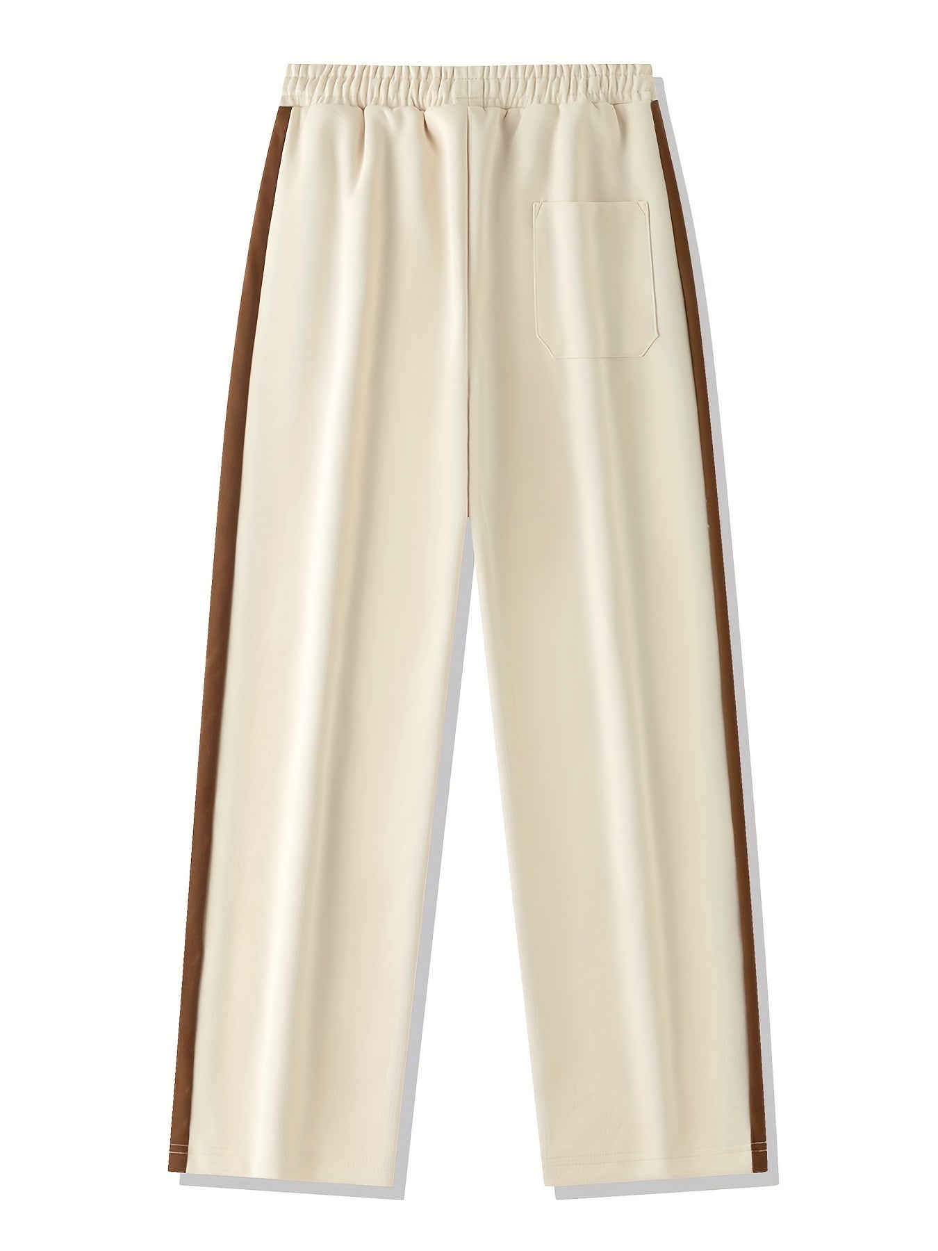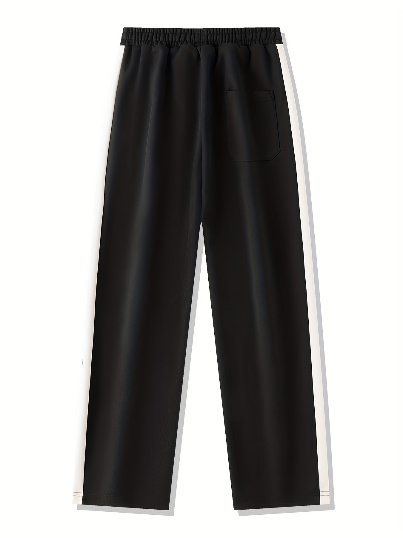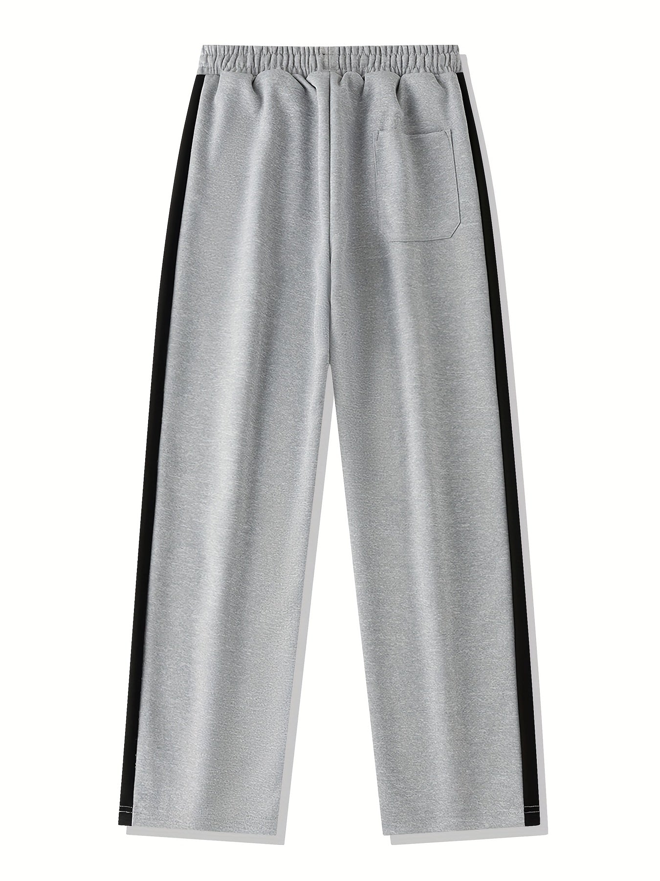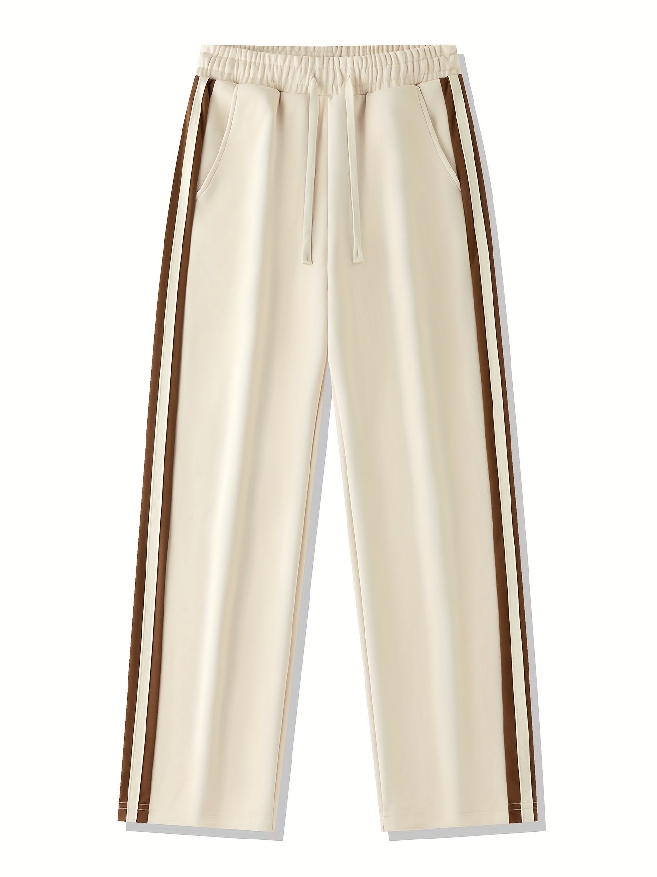 1 Loose Striped Casual Jogger Pants - Unisex, Elastic Waistband Design, Wide-Leg Style, 100% Polyester Knit Fabric, Comfortable for All Seasons, Gym & Weekend Outfits
