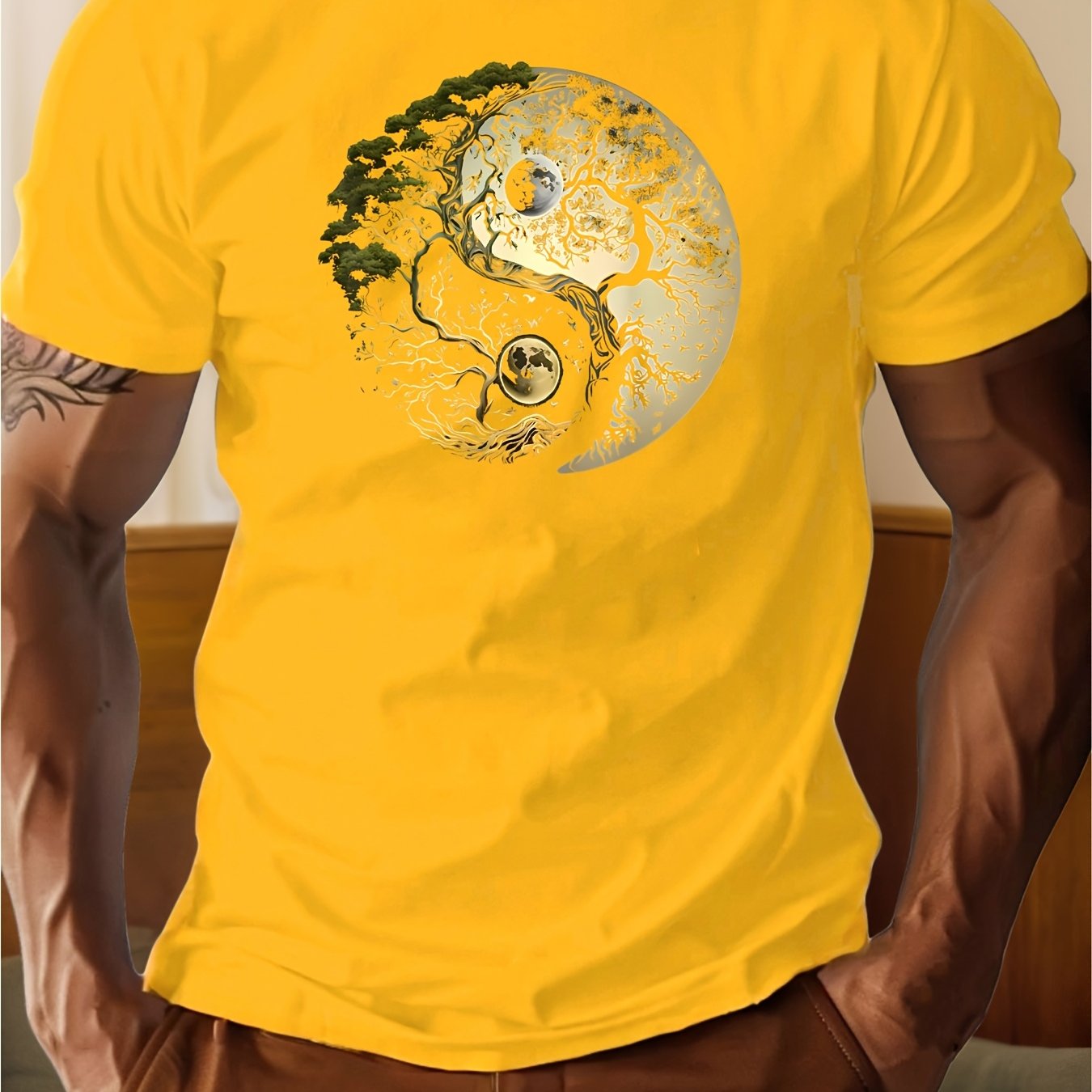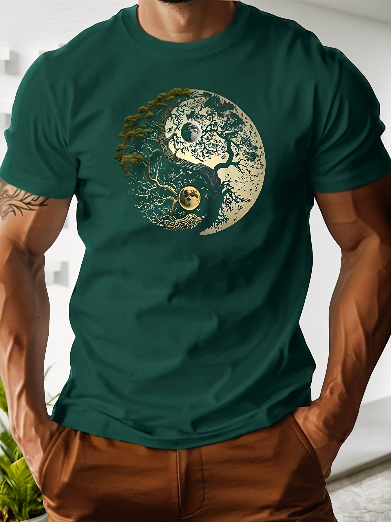 Men's Dark Green Yin Yang Graphic T-Shirt - Casual Summer Style
