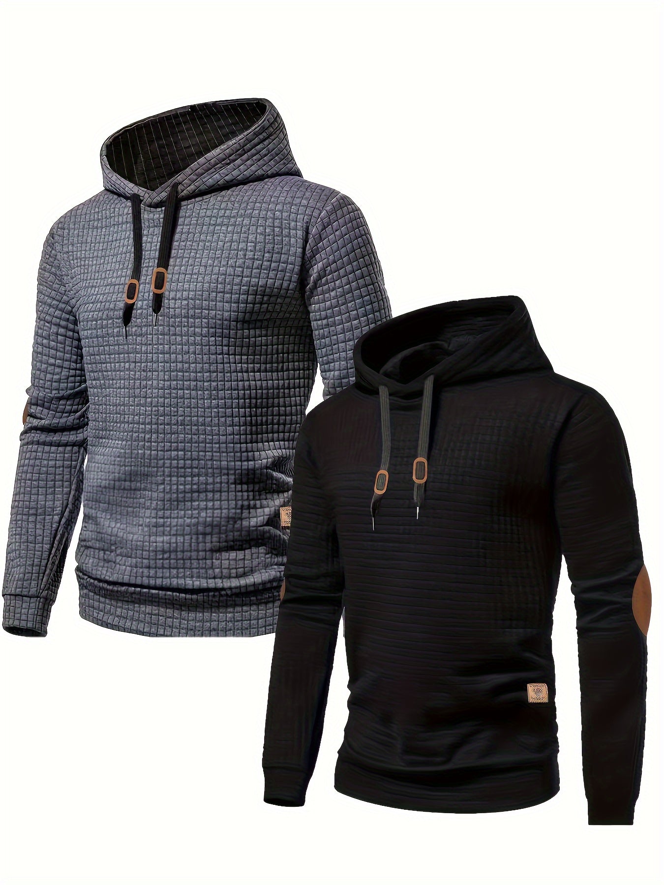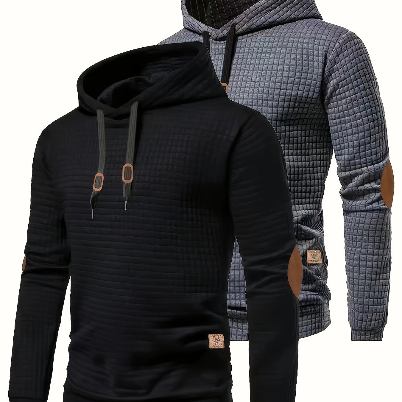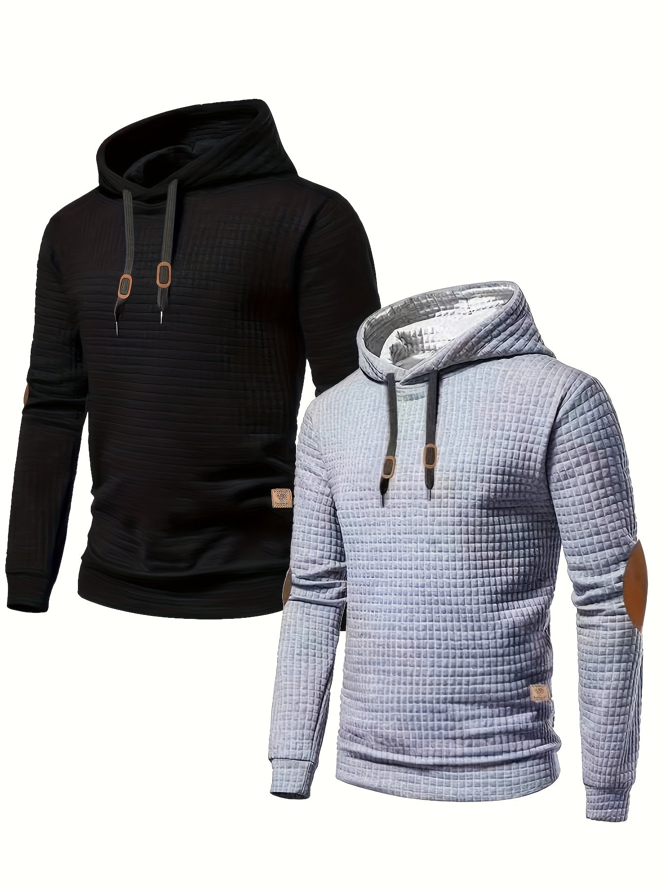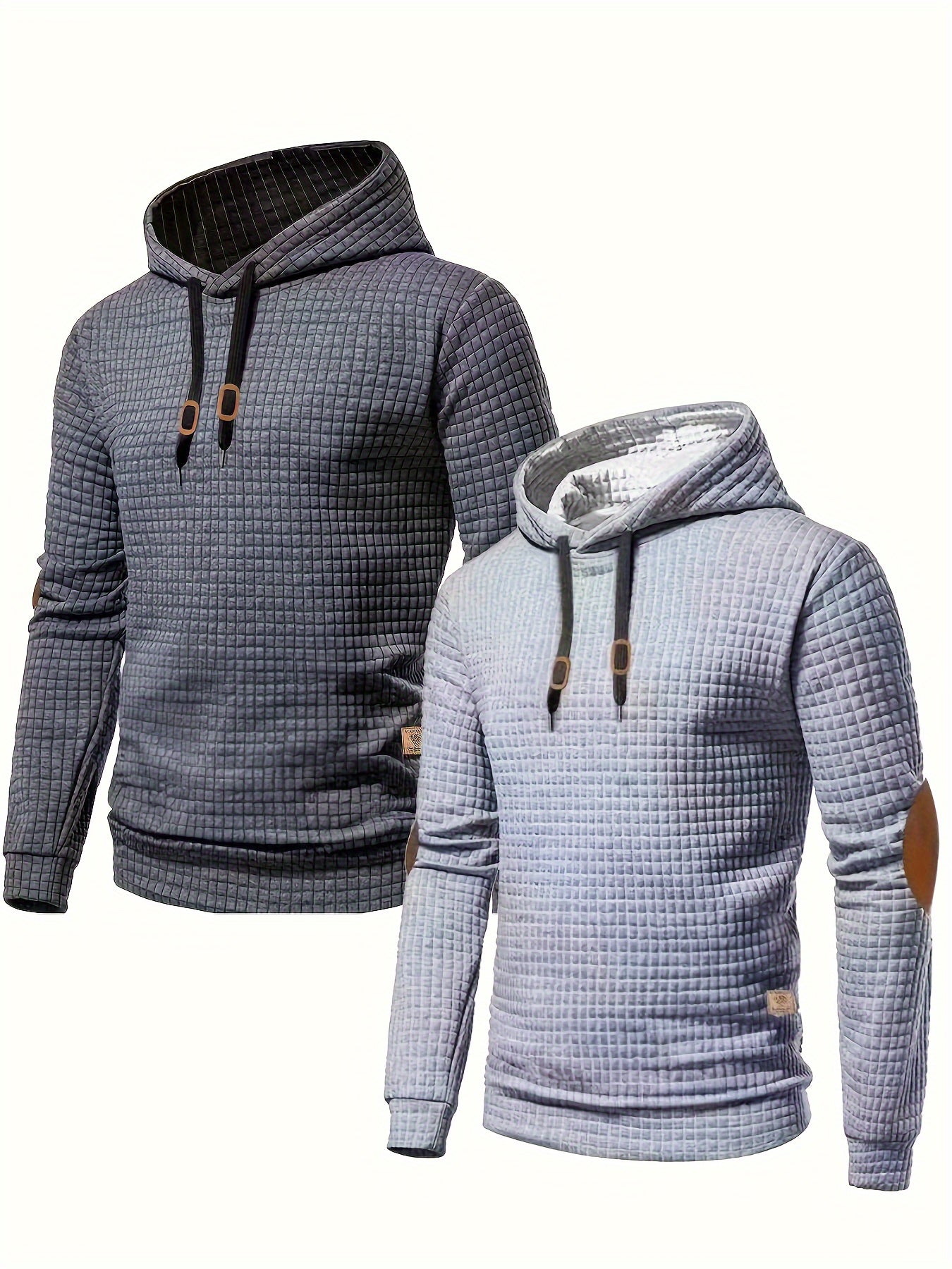 2pcs Men'S Plaid Hooded Sweatshirts - Cozy Fall Pullover with Kangaroo Pocket, Casual Long Sleeve Hoodies in White & Dark Gray, Soft Polyester Blend for Casual Attire, Sweater Hoodie