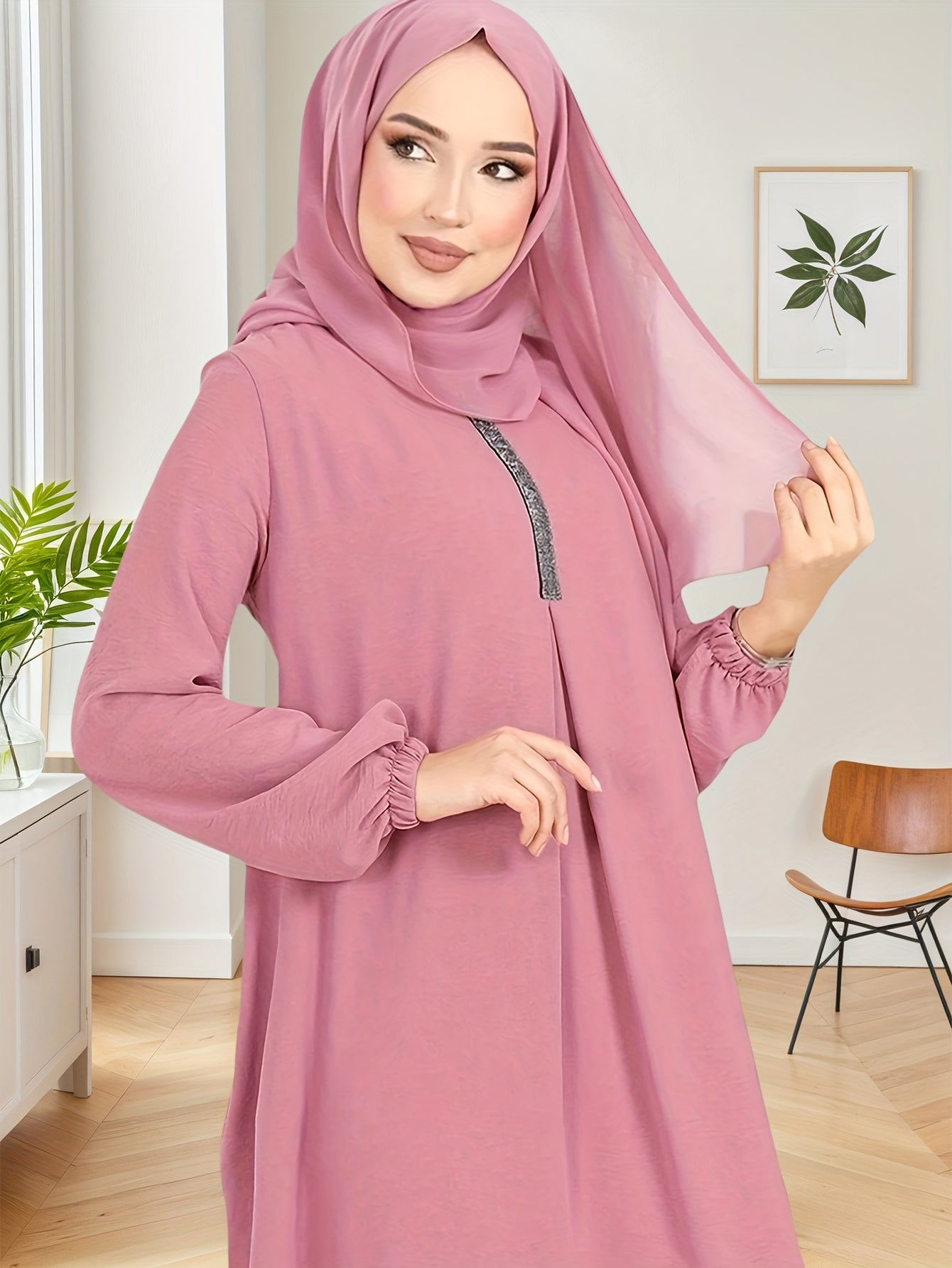 Elevate your wardrobe with this minimalist fashion statement. The Women's Elegant Long Sleeve Abaya Dress combines sophistication with functionality, ensuring you look stunning on any occasion. Its loose fit provides comfort while the solid color keeps it timelessly chic. Perfect for layering or wearing alone, this dress pairs easily with your favorite accessories, making it a must-have piece in every woman's closet.