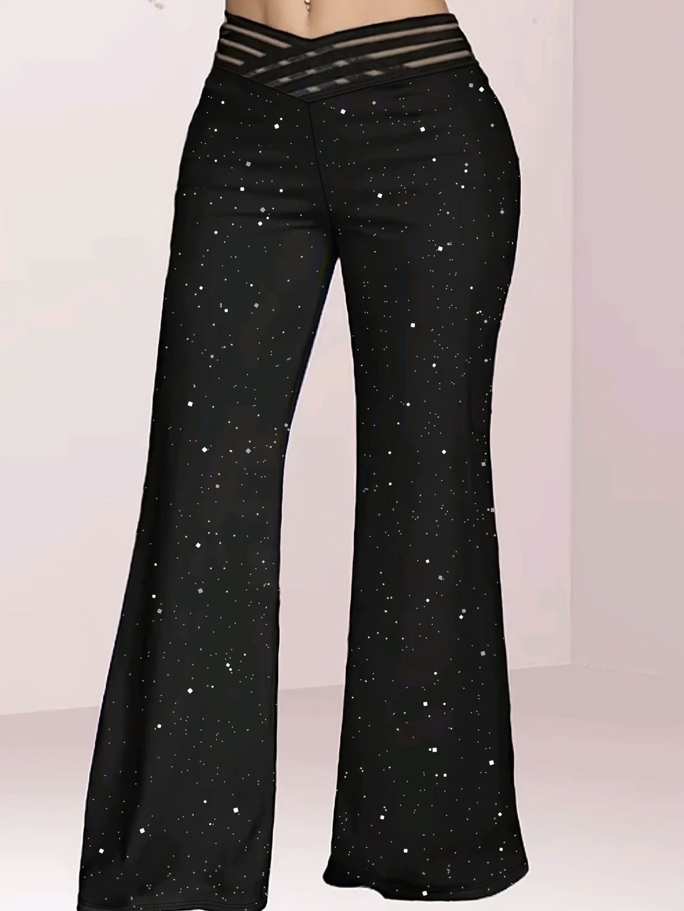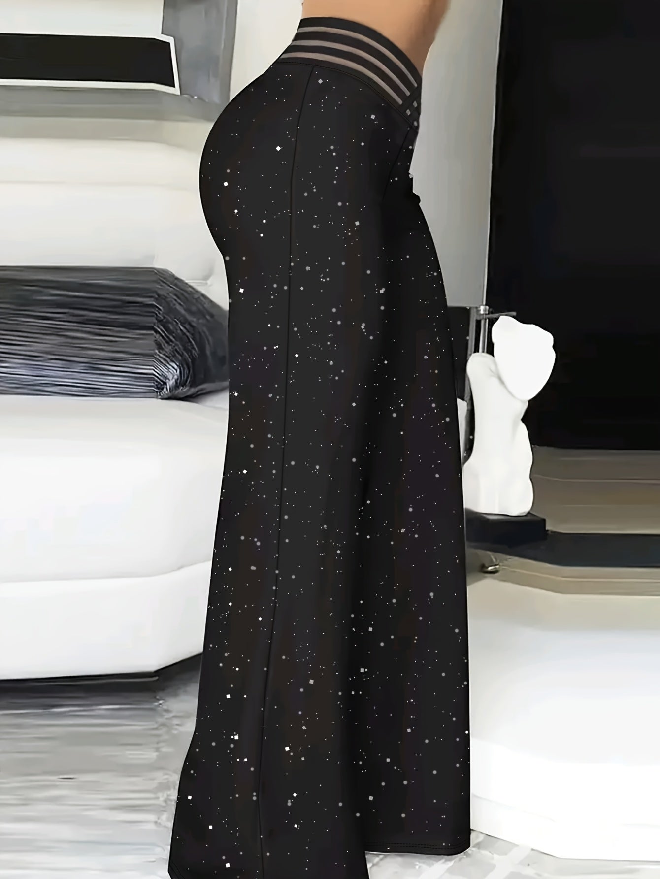 Elegant Black Flare Leg Pants - Stylish Wide-Leg Starry Pattern