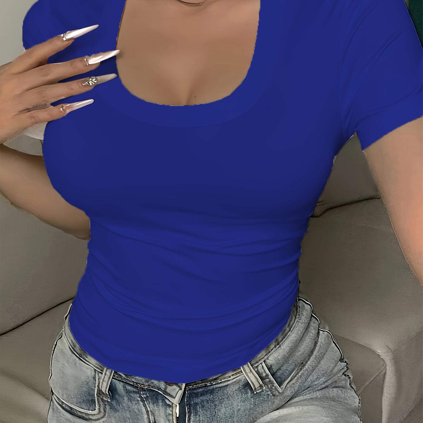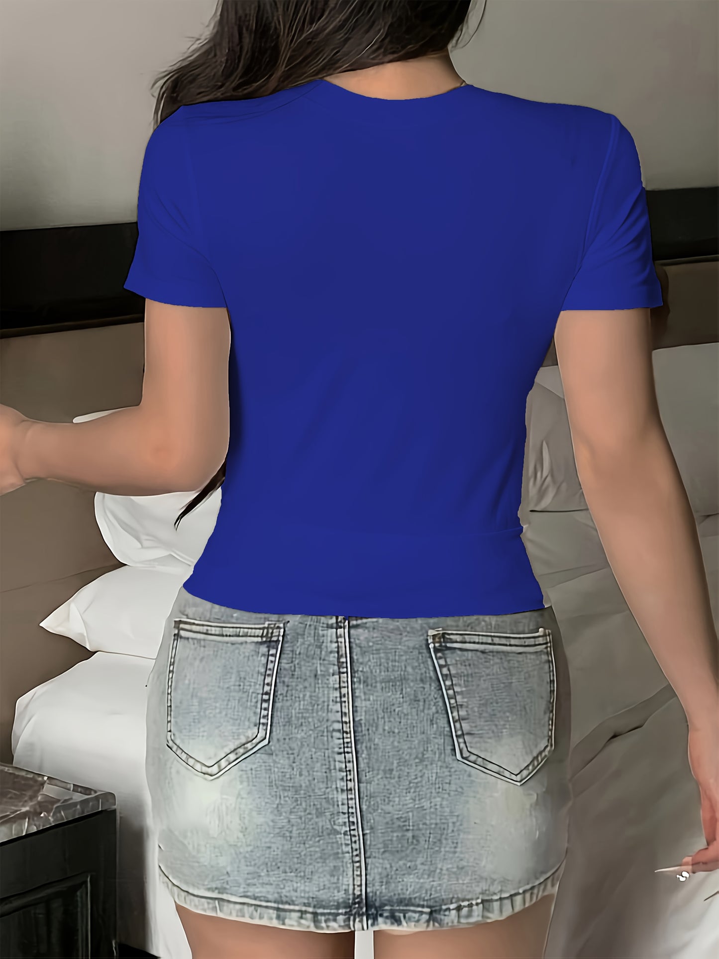 Women's Slim Fit Cropped T-Shirt - Vibrant Blue Short Sleeve Top