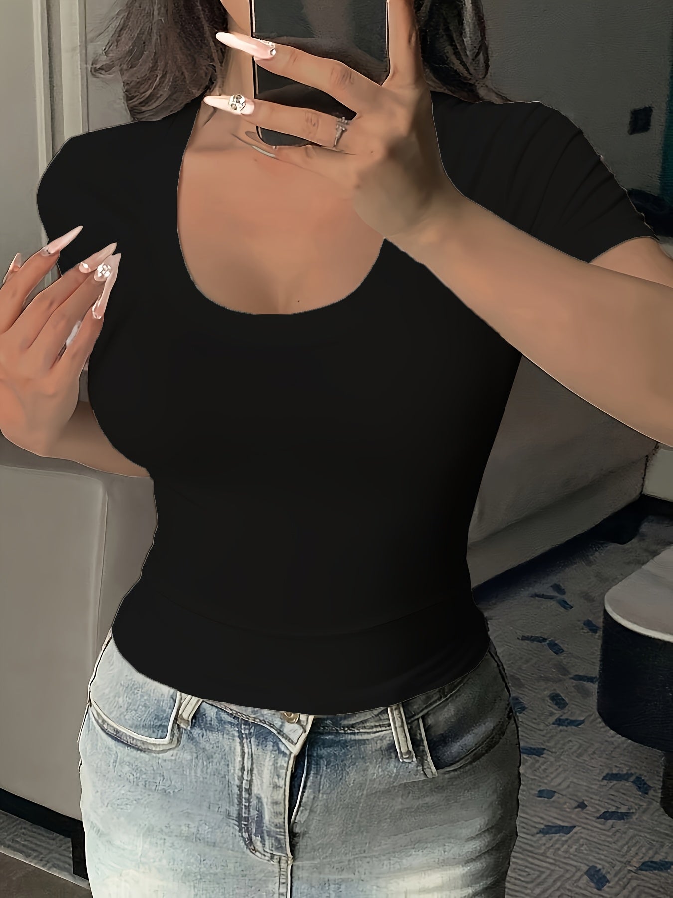 Elevate your casual attire with this chic Women's Slim Fit Cropped T-Shirt. Its vibrant color and flattering fit make it an essential piece for any fashion-forward wardrobe. Perfect for pairing with high-waisted jeans or skirts, this t-shirt is designed for versatility and style, ensuring you stand out effortlessly wherever you go.