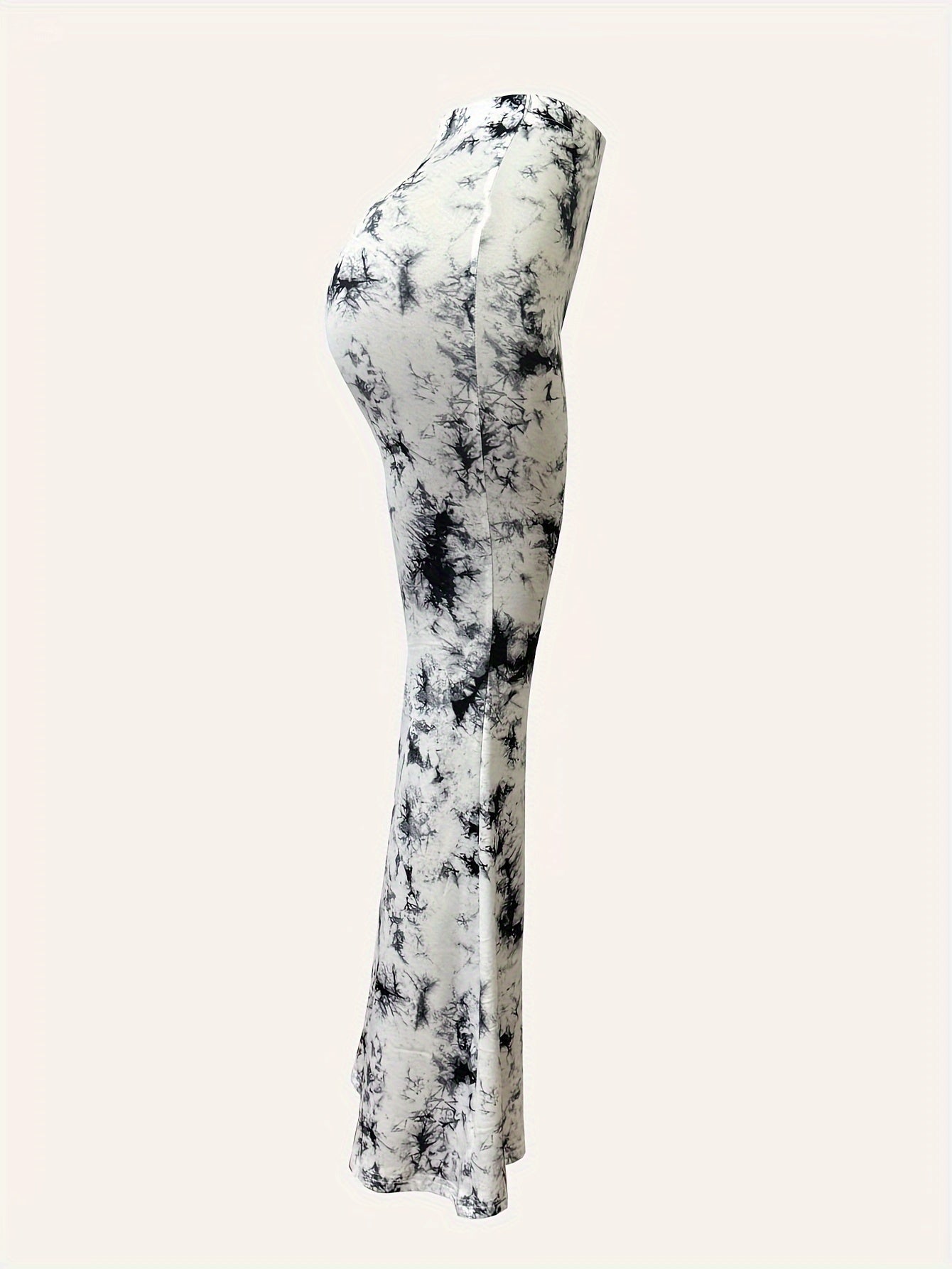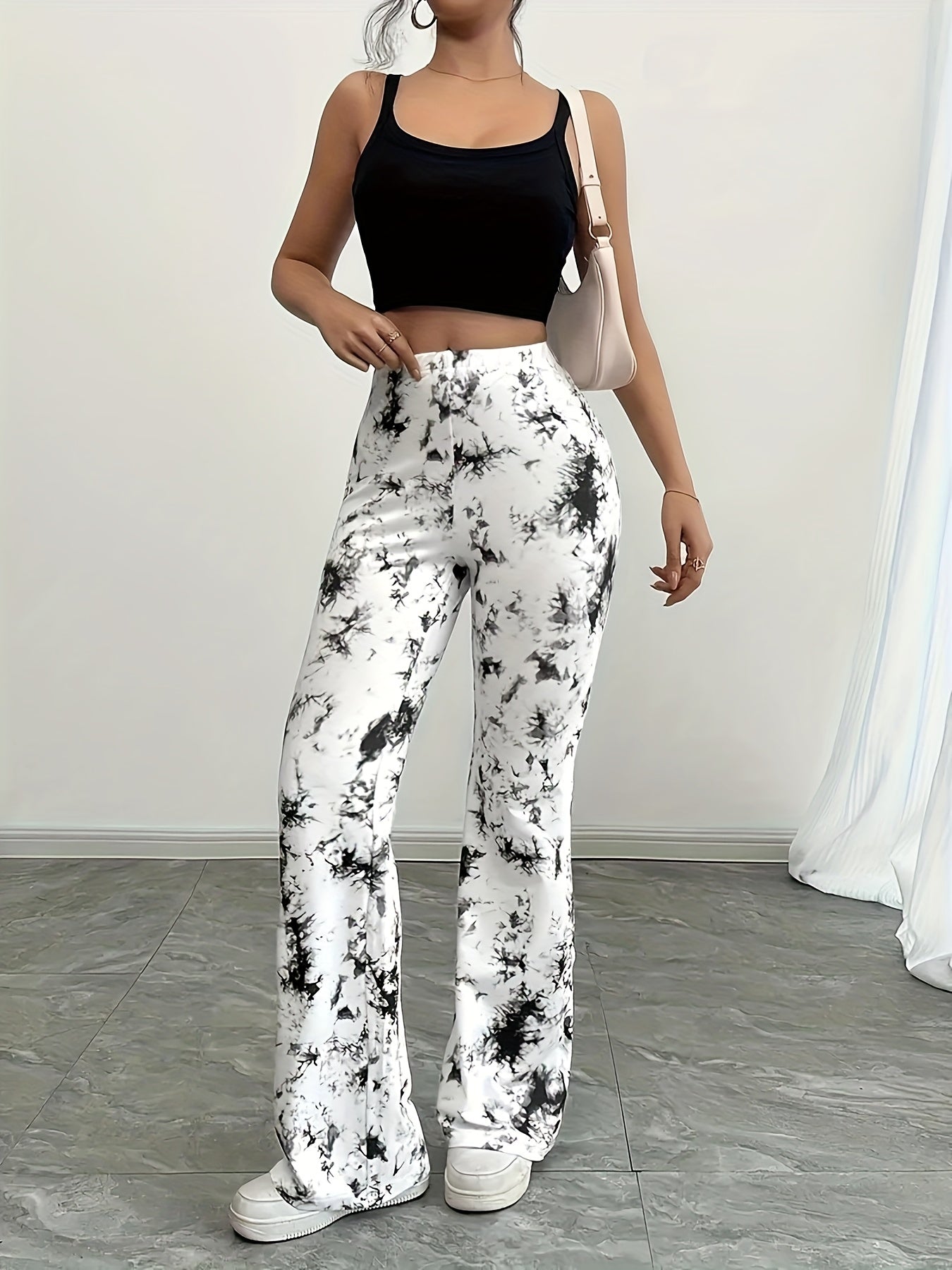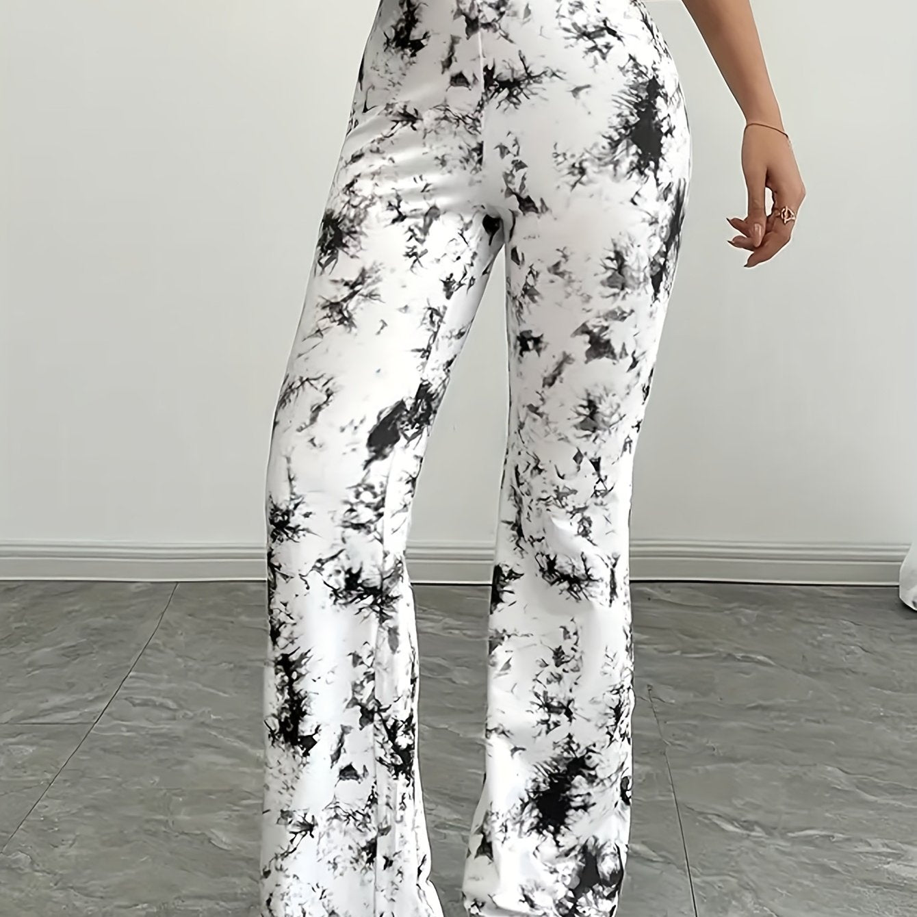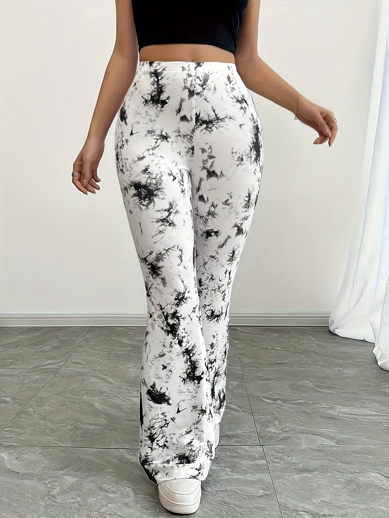 Elegant Polyester Knit Flare Leg Pants - Stylish Print Bell Bottoms