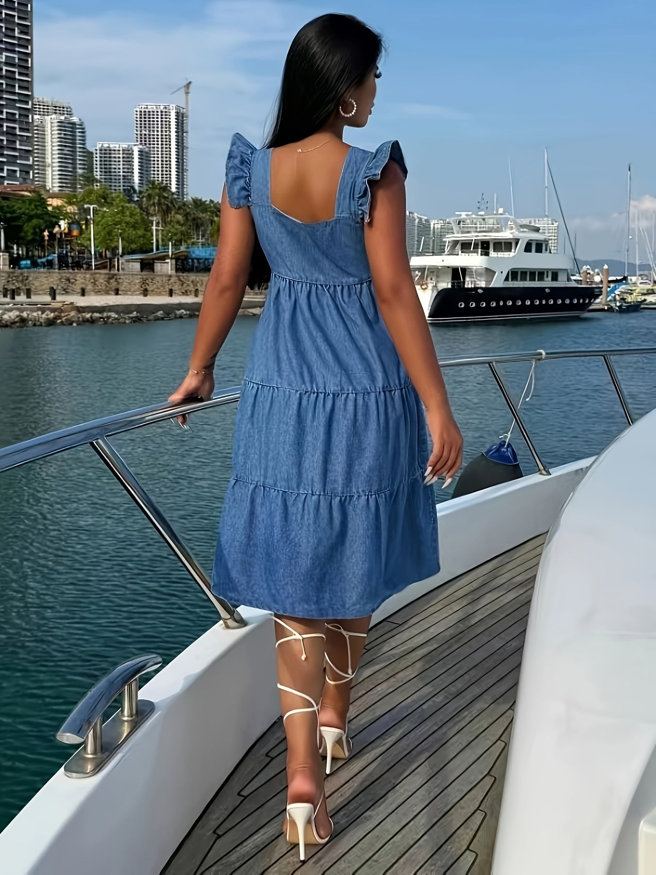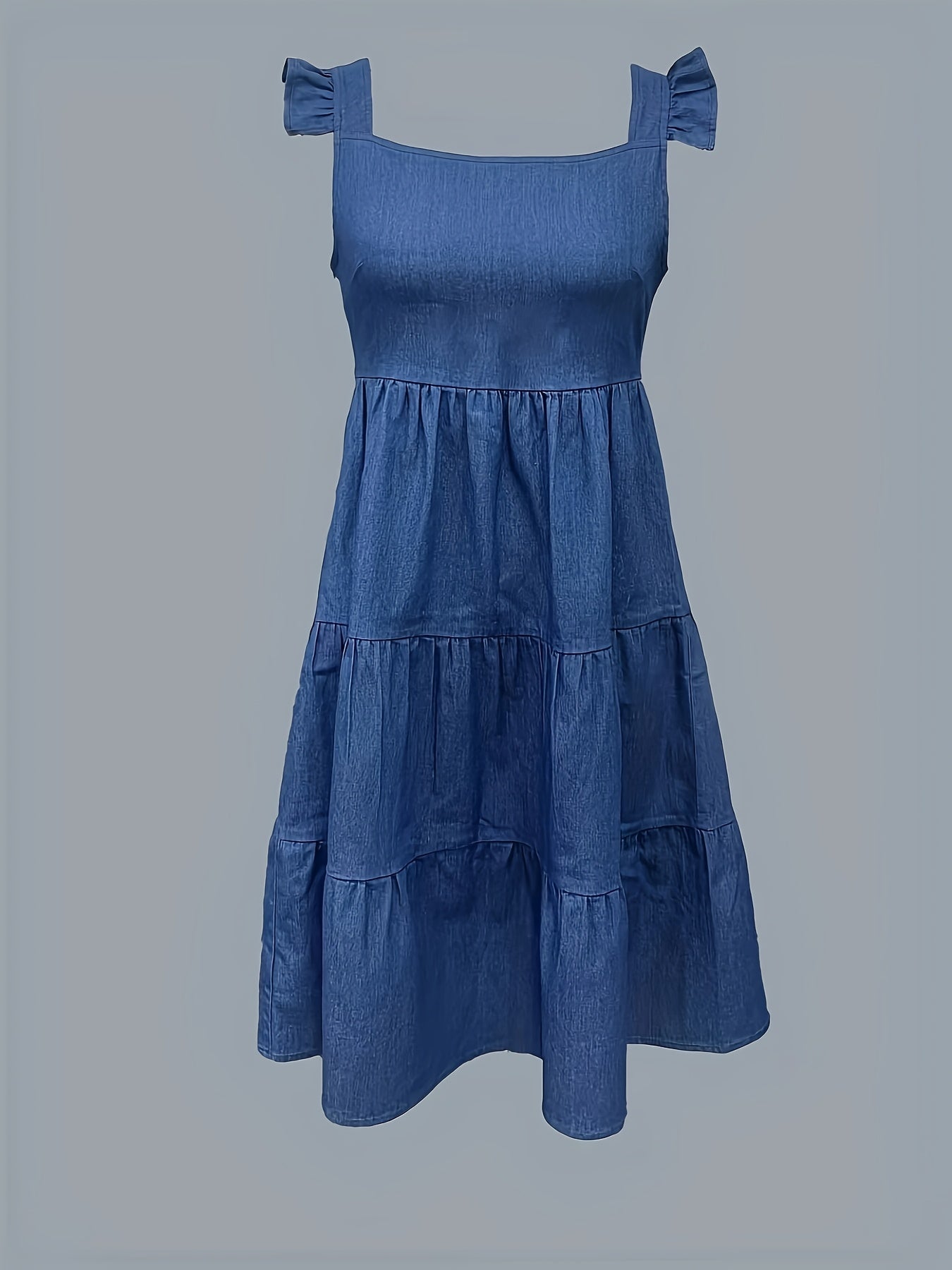 YIWEIDI Women's Elegant Layered Dress - All-Season Denim Style
