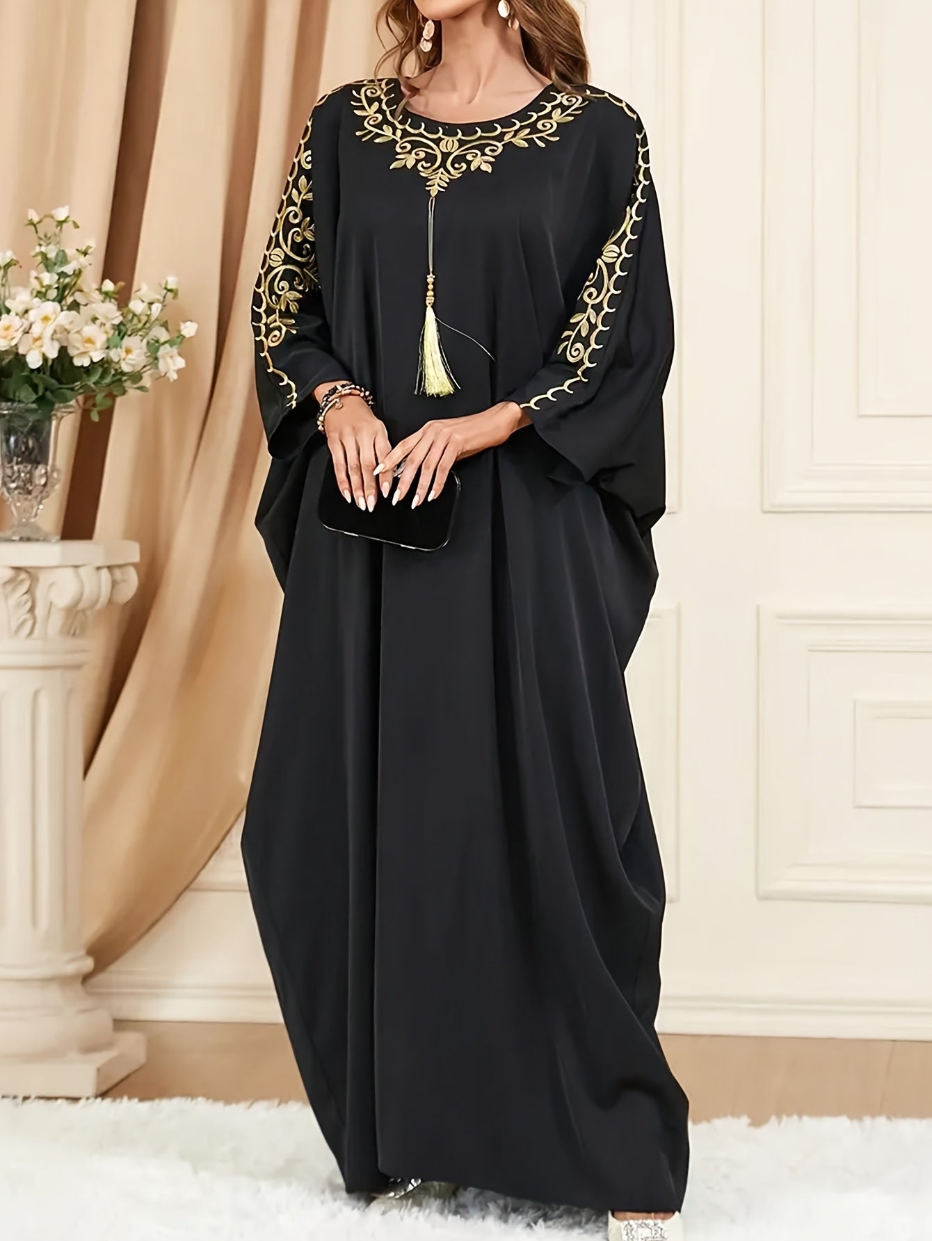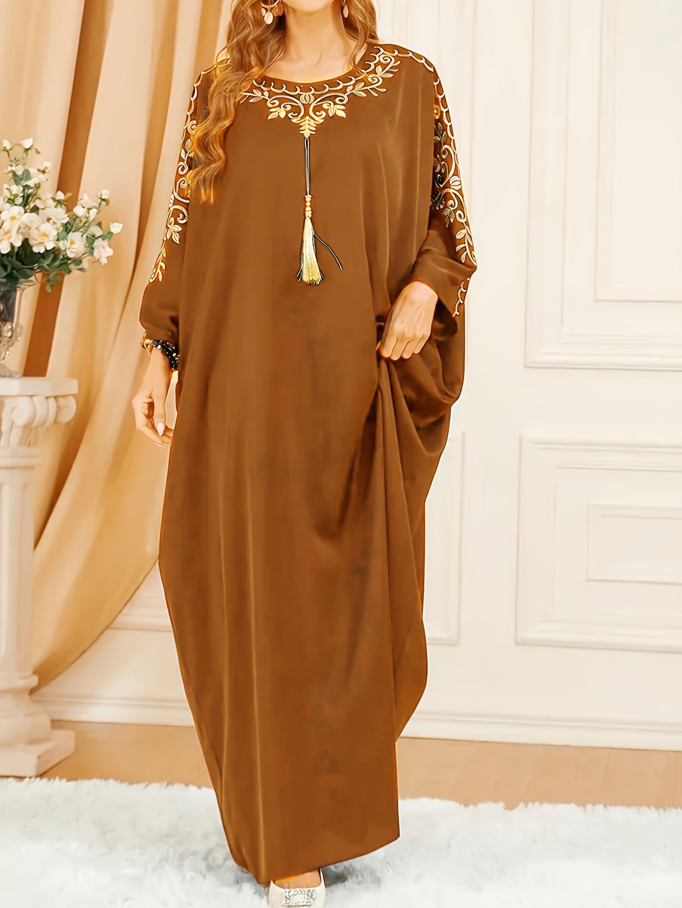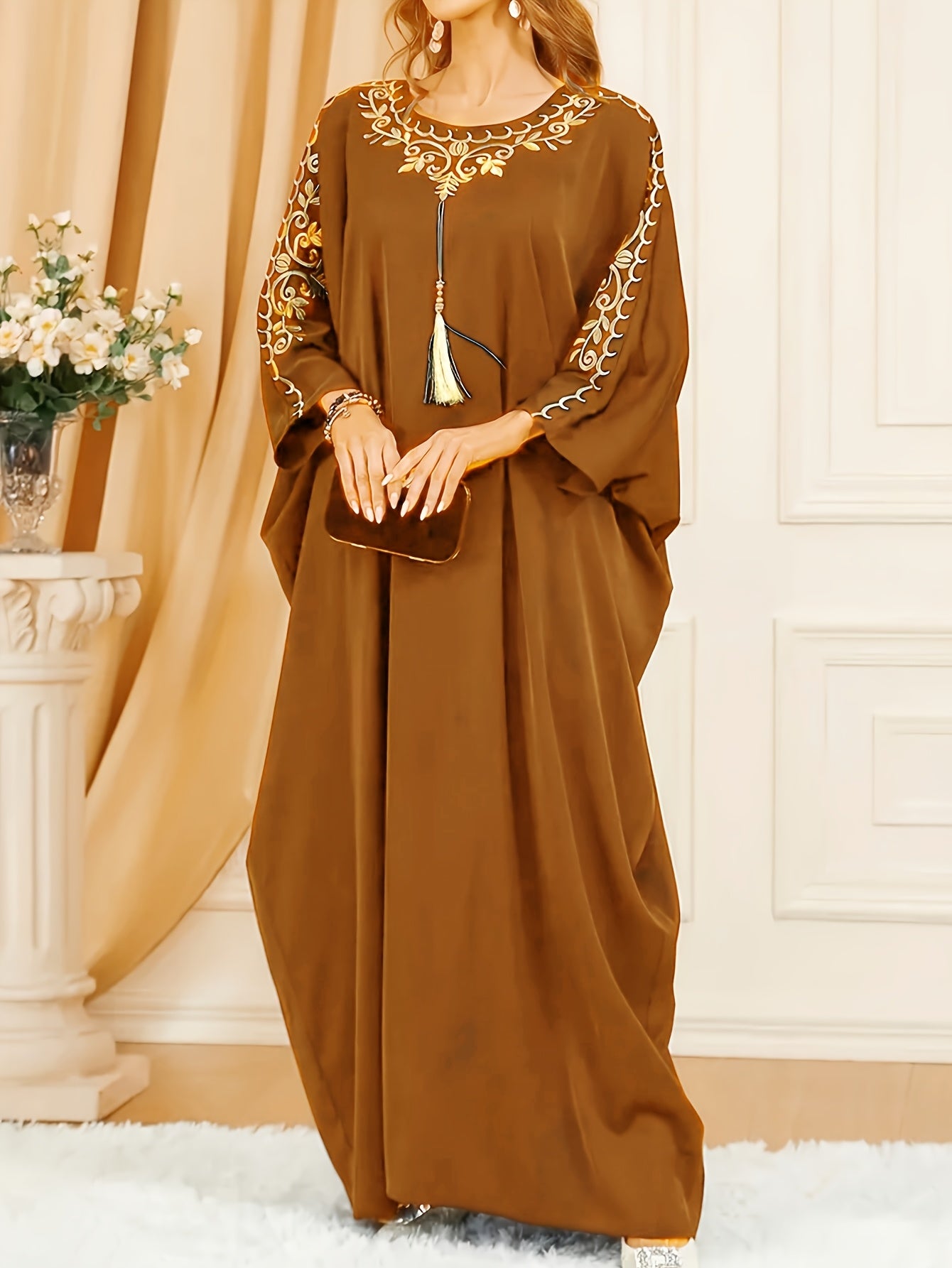 Elegant Floral Pattern Kaftan Dress - Women's All-Season Style