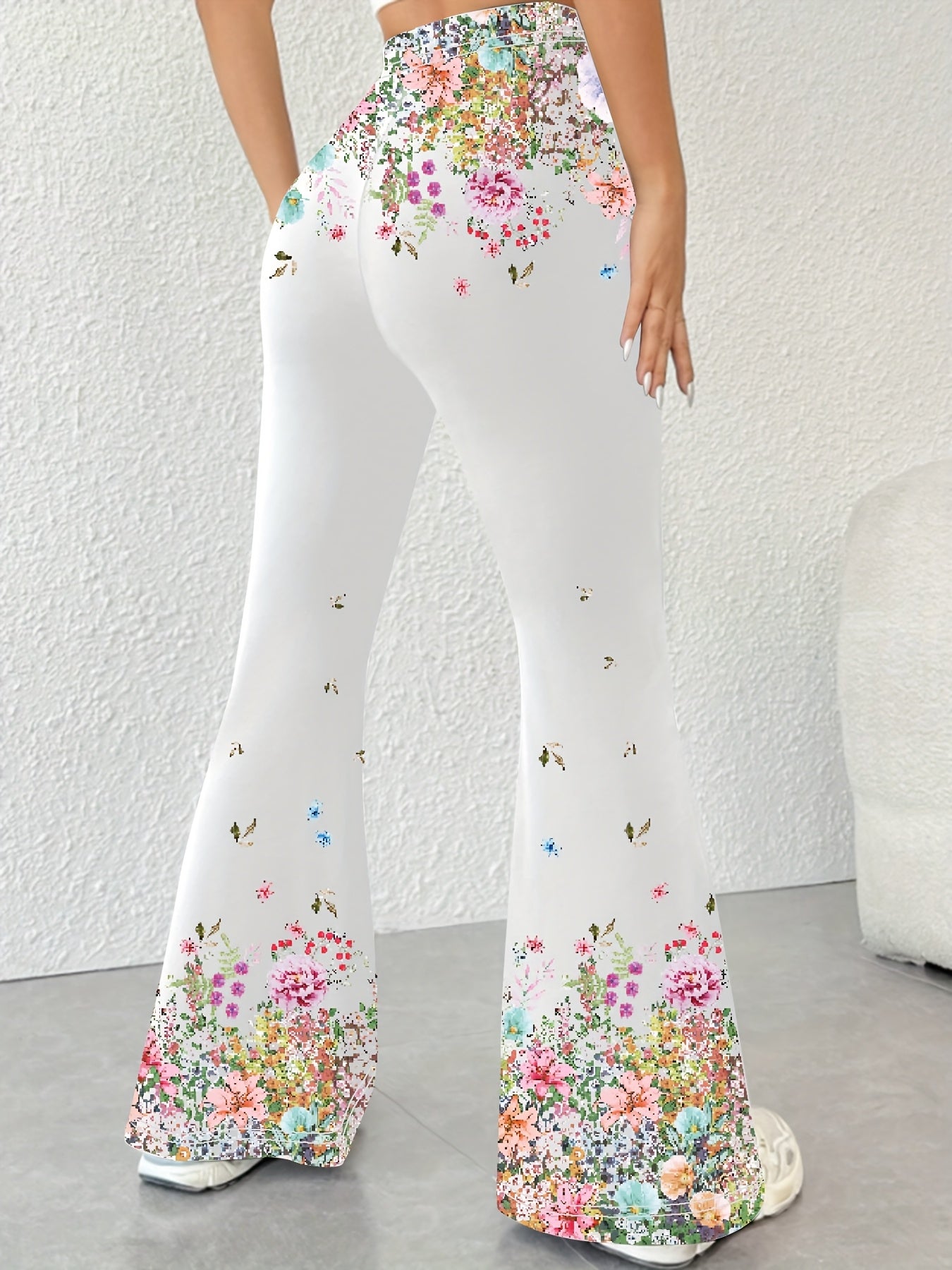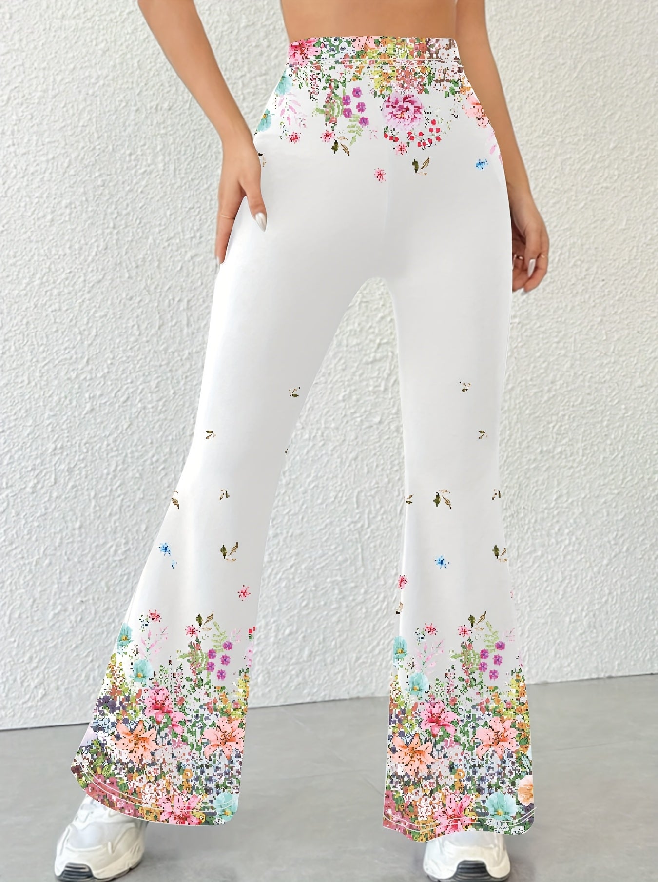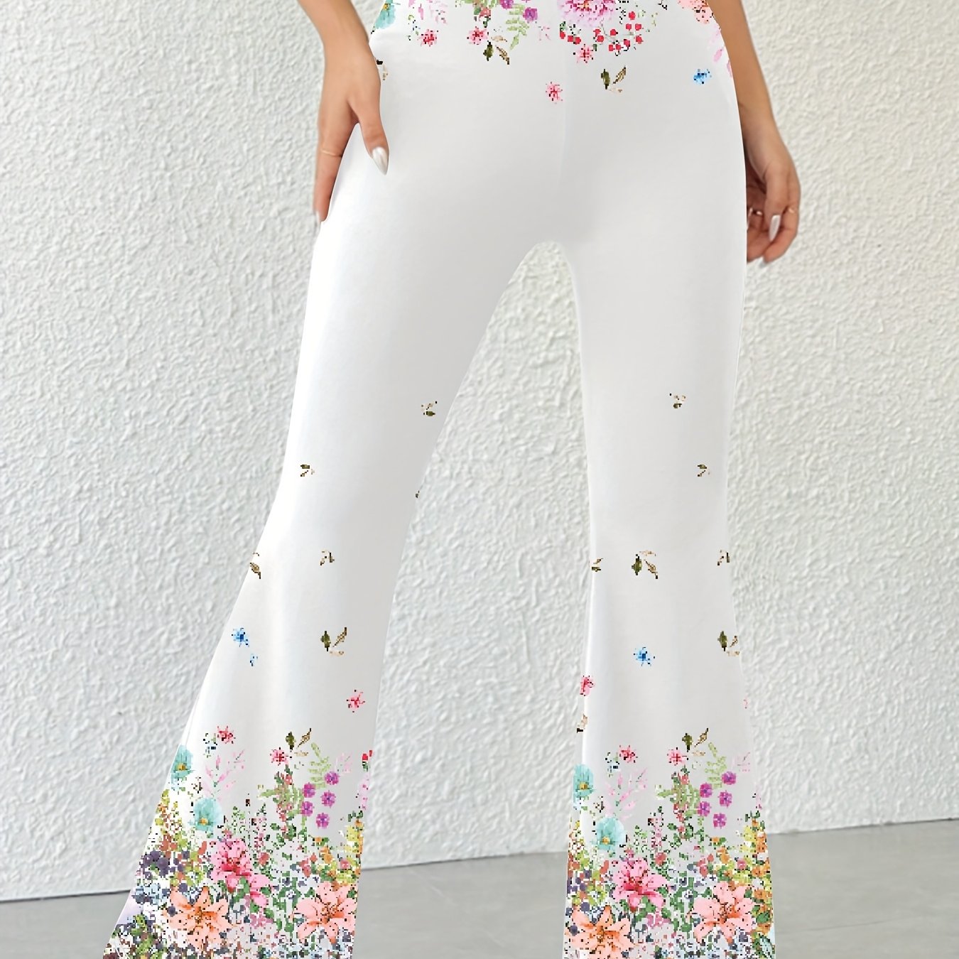 Women's Floral Print Flare Pants - Stretchy & Comfortable Casual Style
