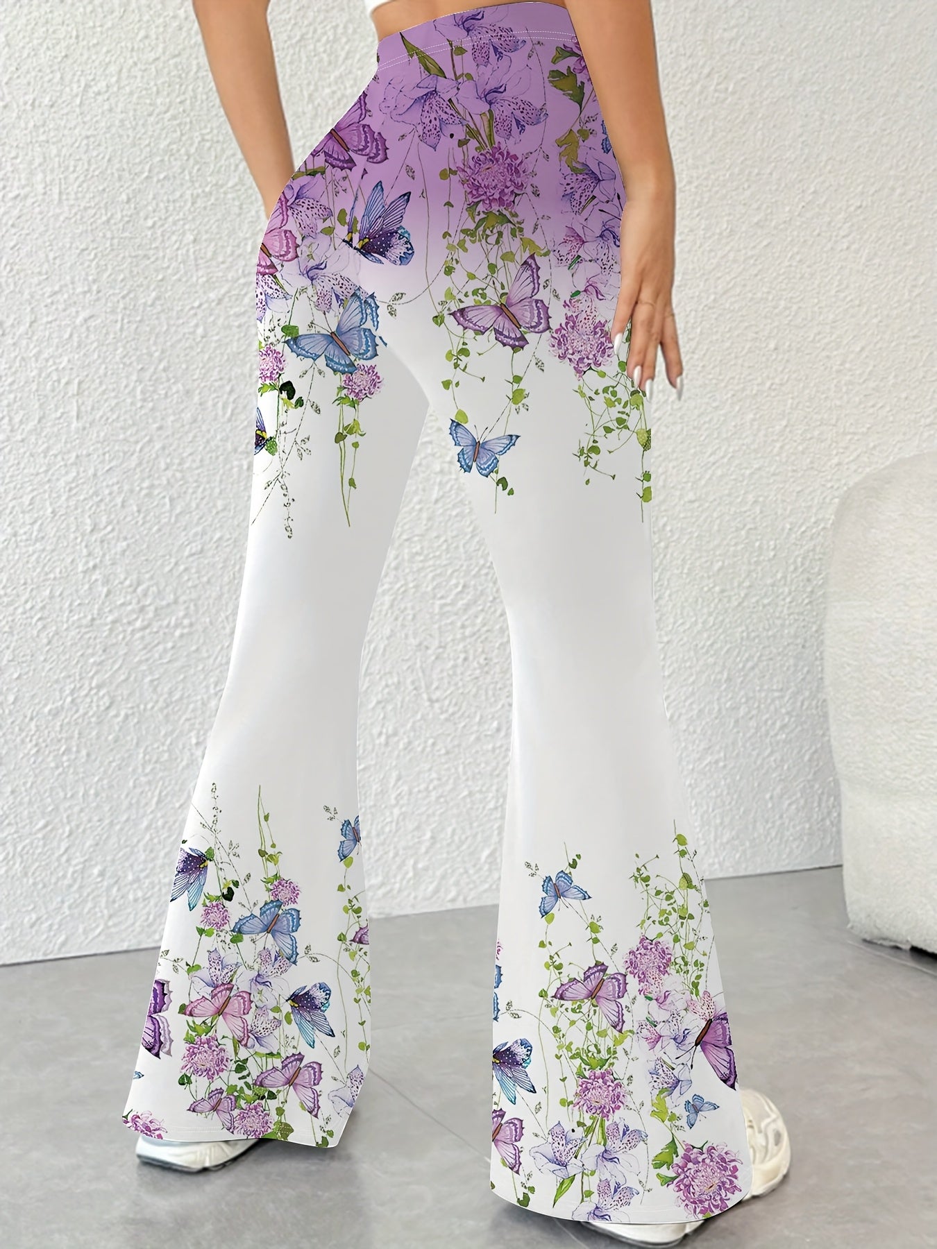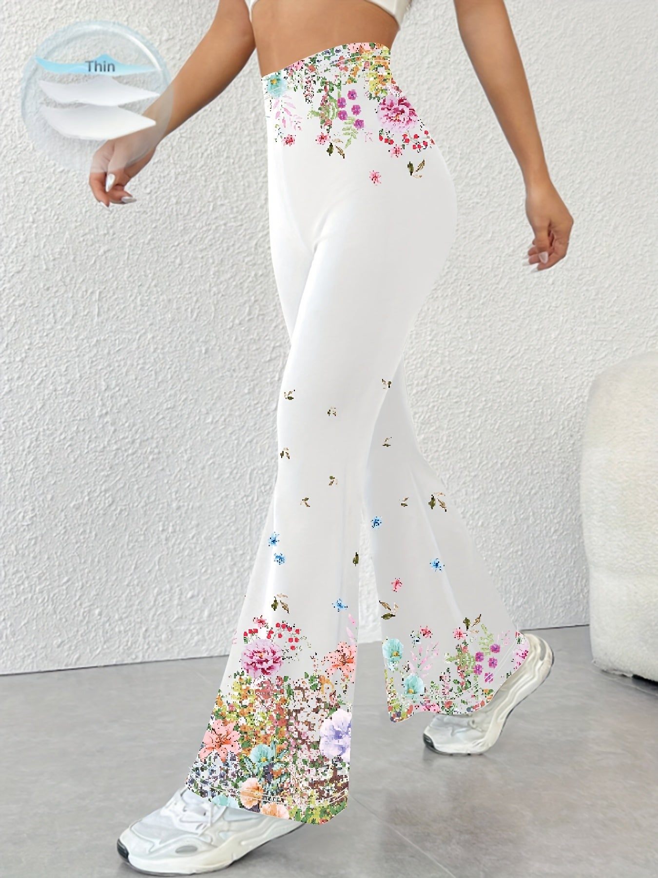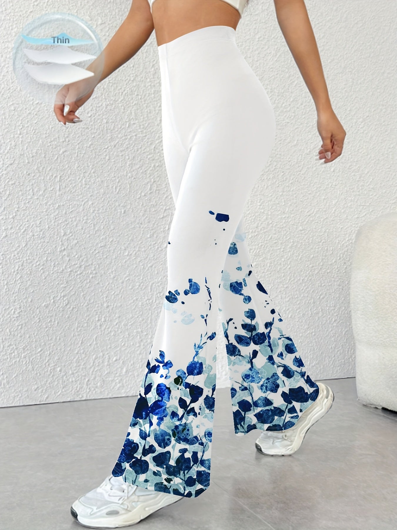 Women's Floral Print Flare Pants - Stretchy & Comfortable Casual Style