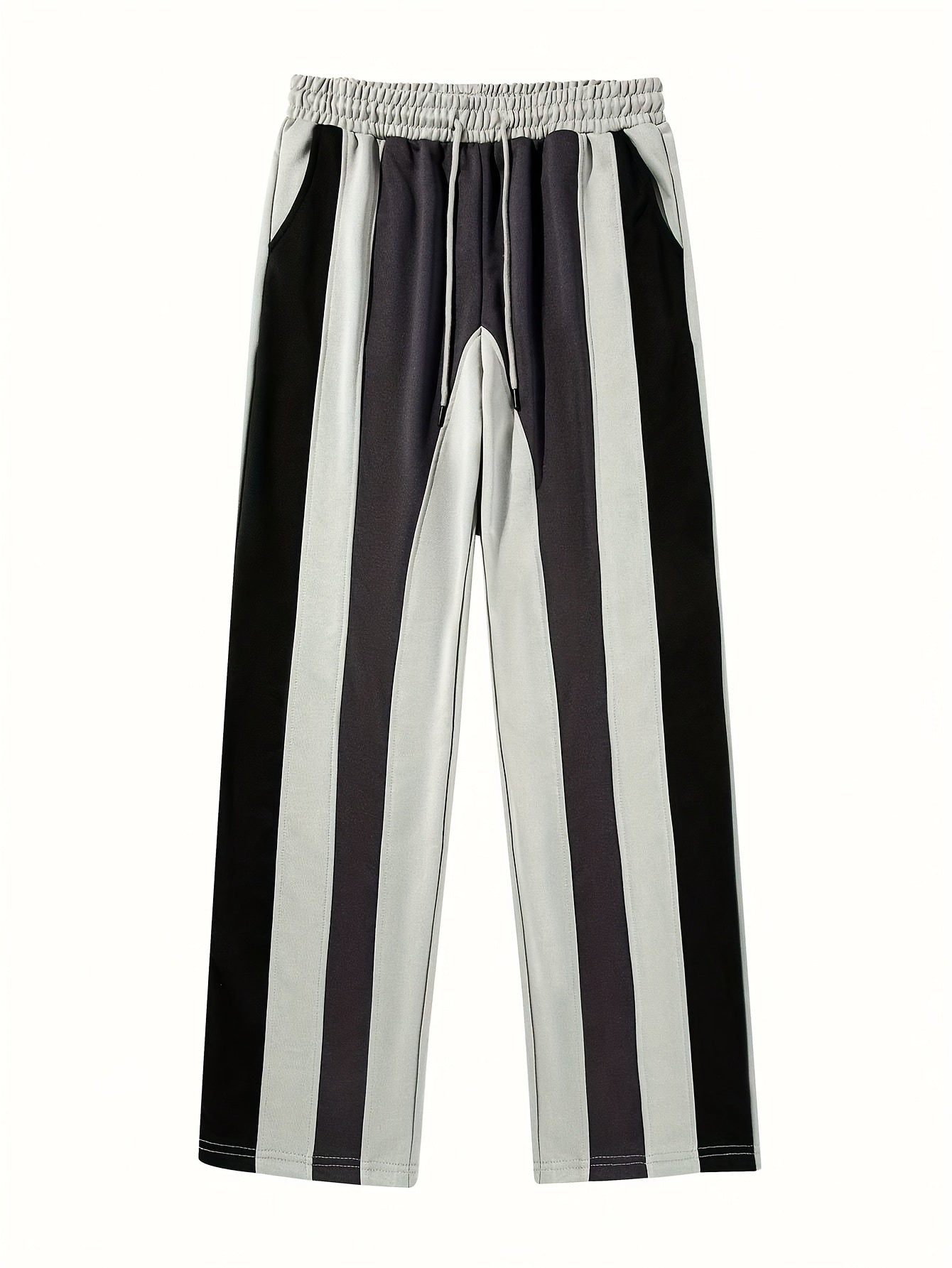 Men's Casual Loose-Fit Striped Color Block Sports Pants - All-Season