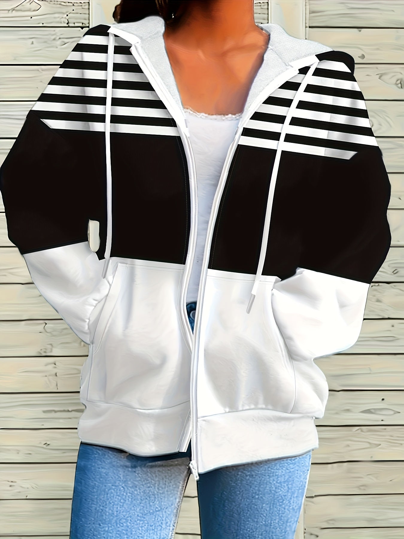 Women's Casual Printed Zip-Up Hoodie Set - Oversized, Comfortable Style