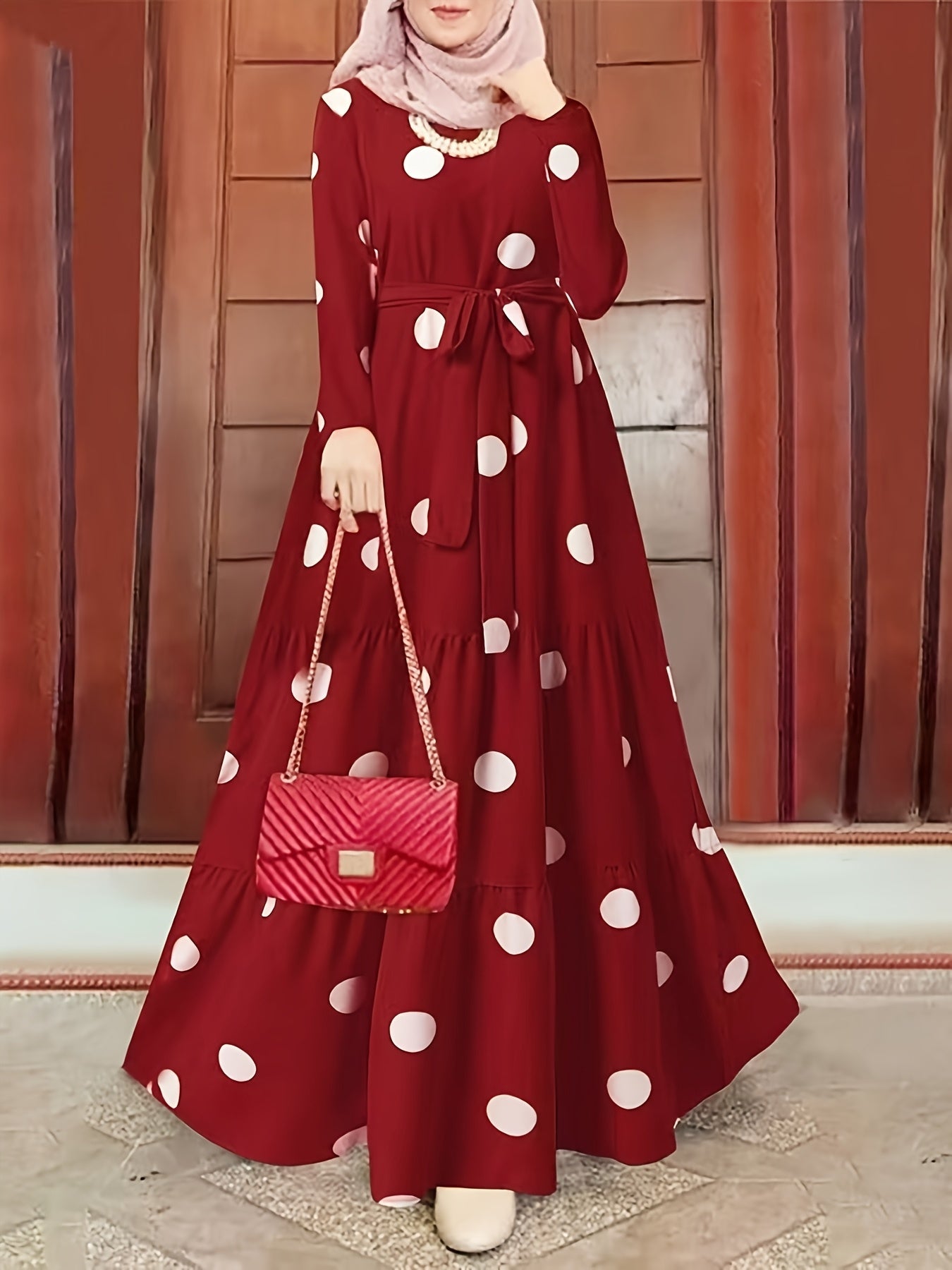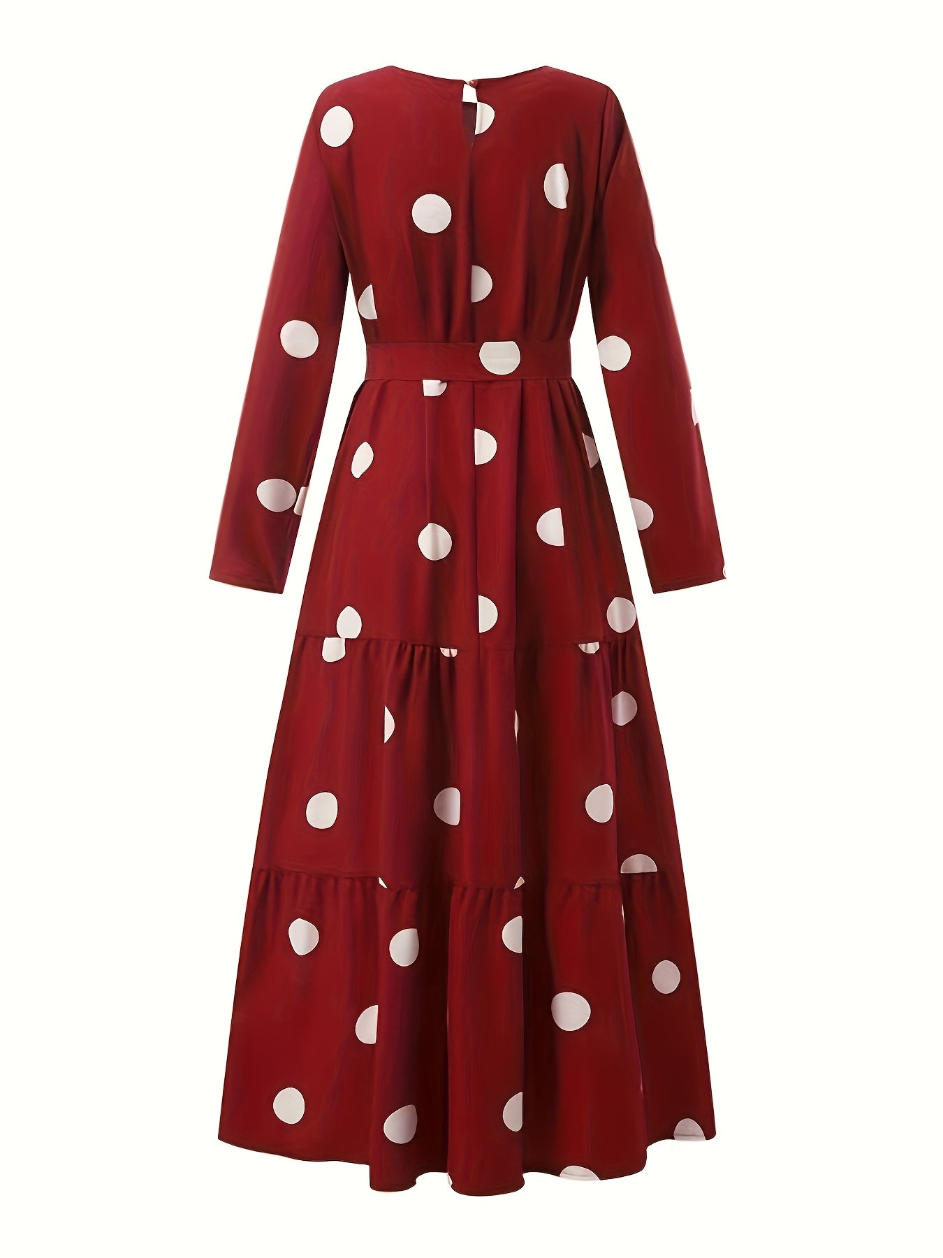 Step out in style with our Vintage Red & White Polka Dot Maxi Dress. This stunning gown combines a classic polka dot pattern with a modern silhouette, making it a must-have for your wardrobe. Whether you're attending a daytime event or enjoying a night out, this dress offers both comfort and sophistication. Its micro-elastic fabric ensures a flattering fit, while the long sleeves and elegant length make it suitable for year-round wear. Embrace timeless fashion and make a lasting impression with this beautiful maxi dress.