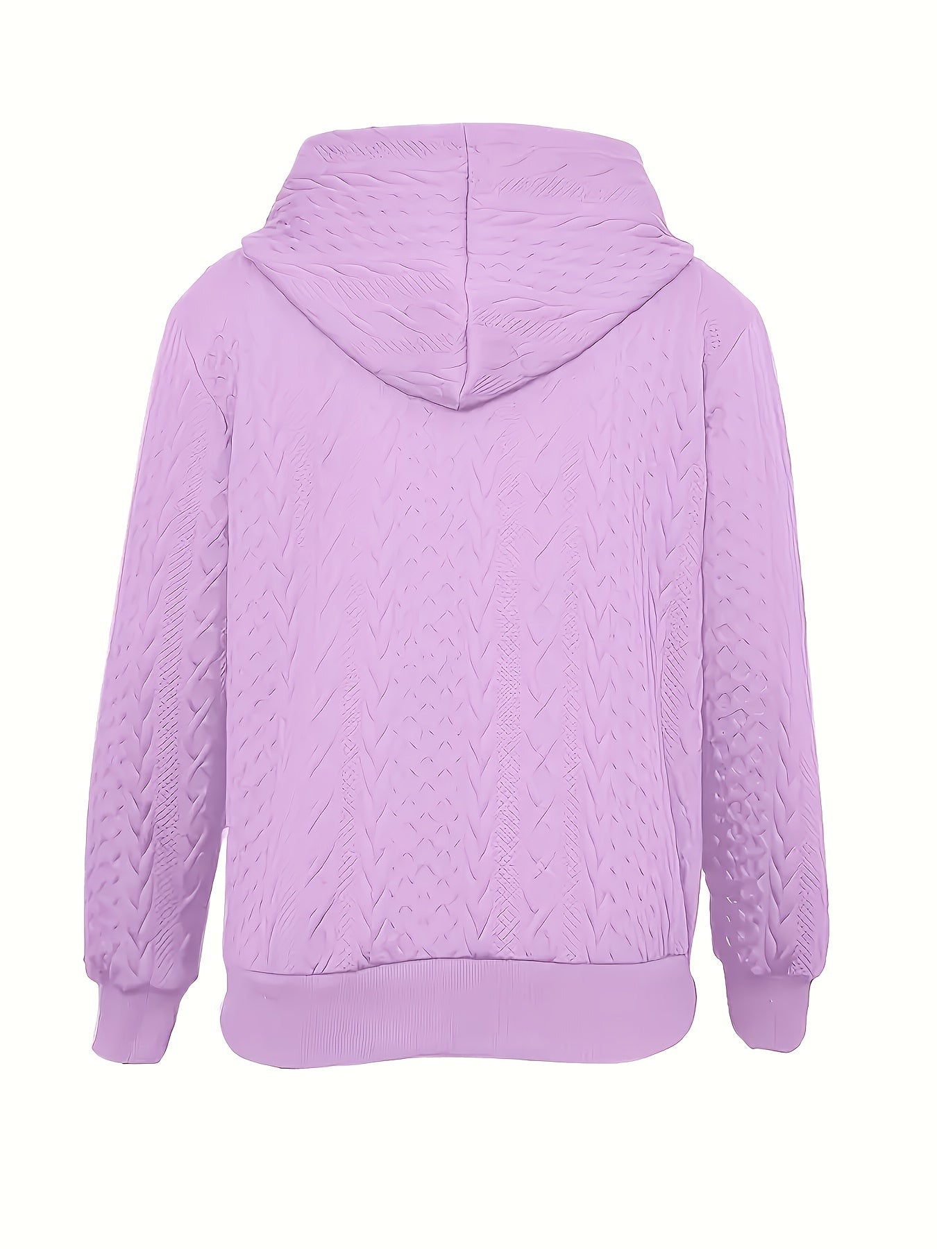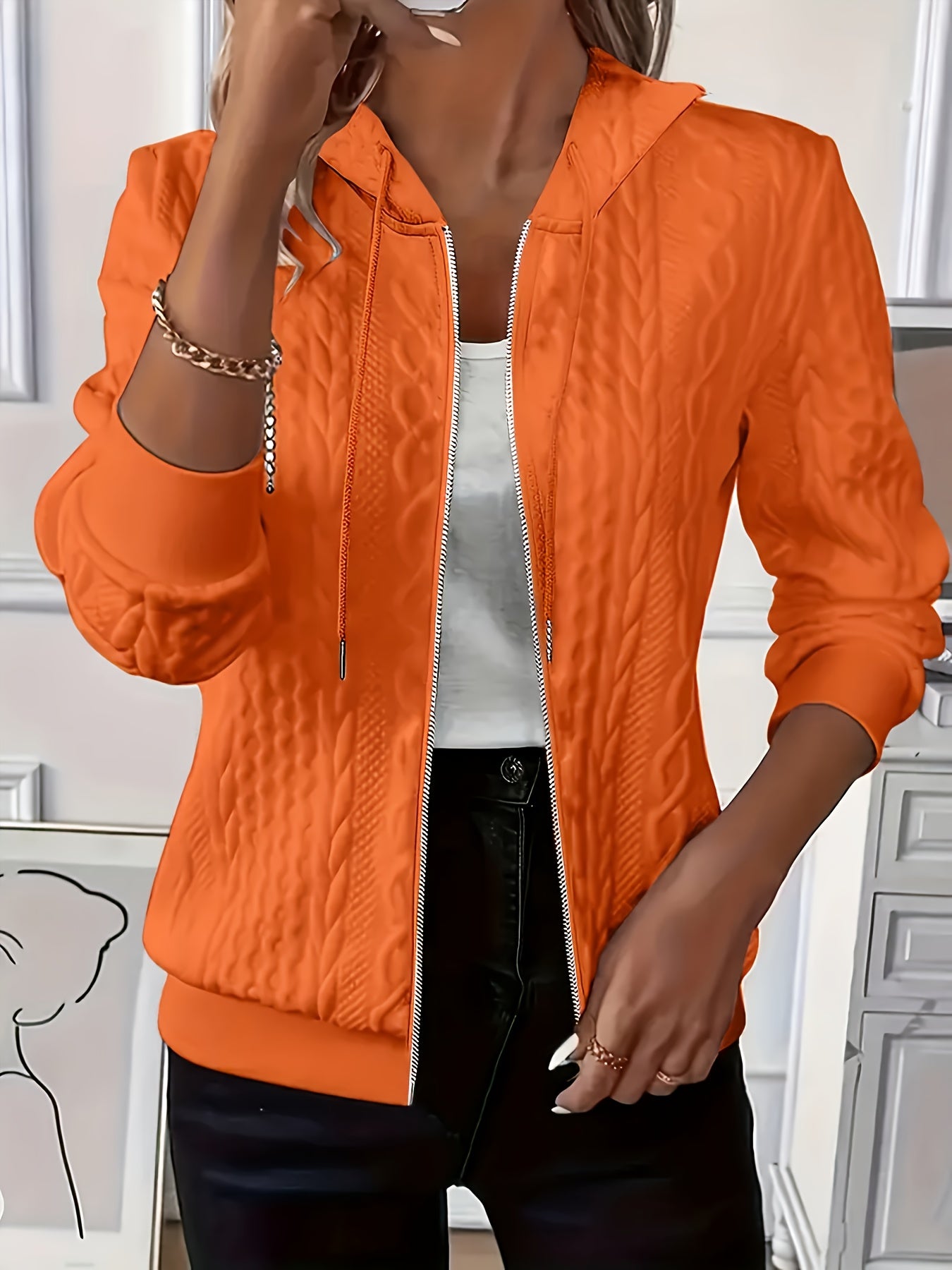 Women's Light Beige Zip-Up Jacket - Elegant V-Neck Hooded Coat
