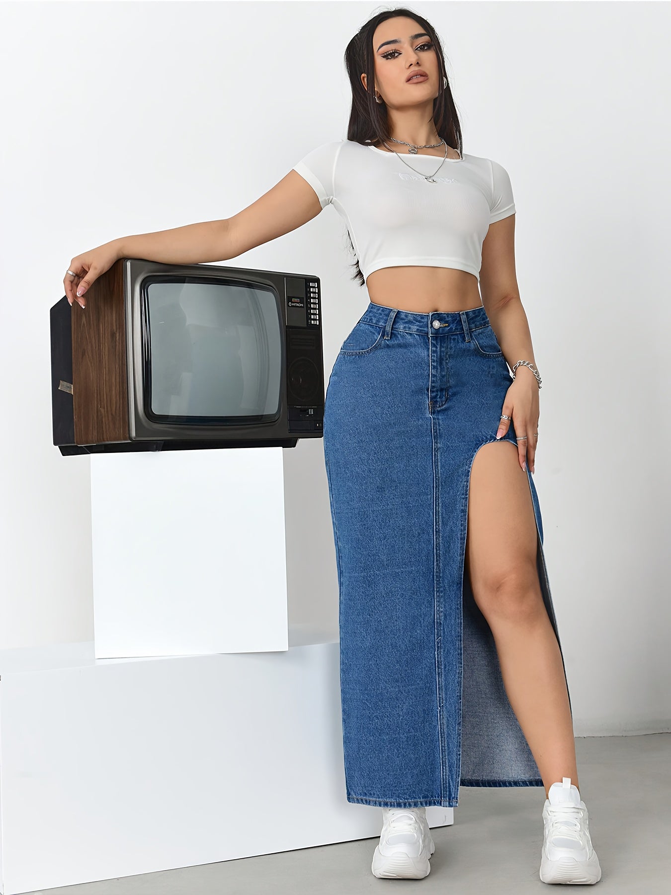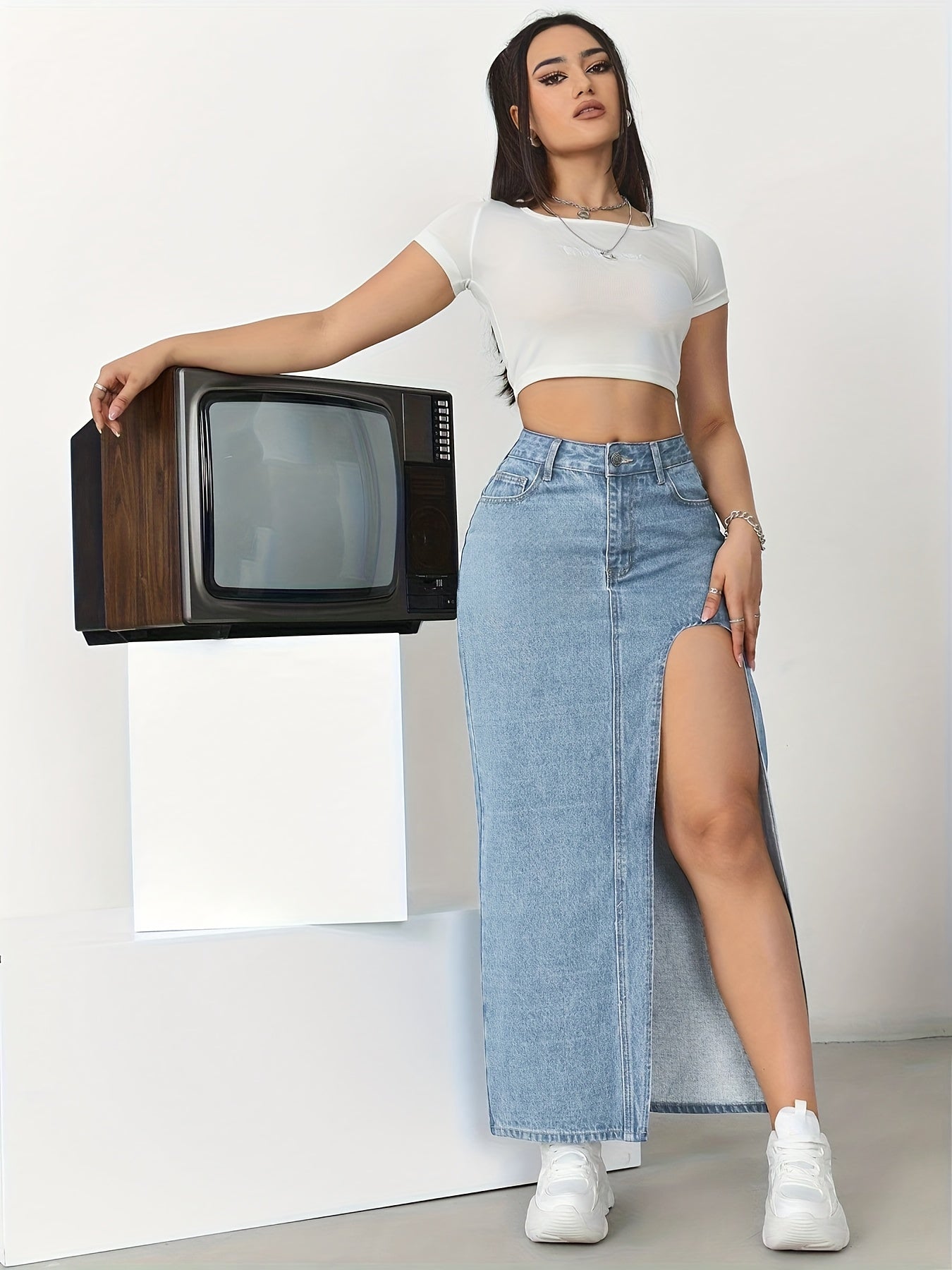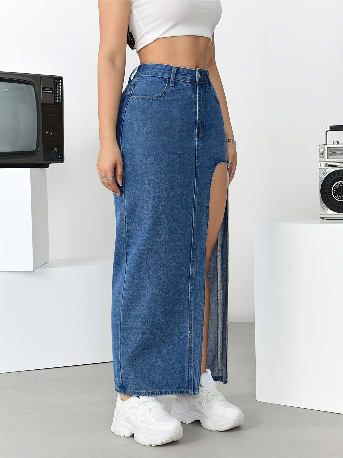 Elevate your wardrobe with this effortlessly chic skirt that combines elegance with practicality. Perfect for pairing with your favorite tops, this versatile piece complements any look, from casual outings to dressier events. Don't miss out on the opportunity to showcase your unique fashion sense with this stylish denim midi skirt.