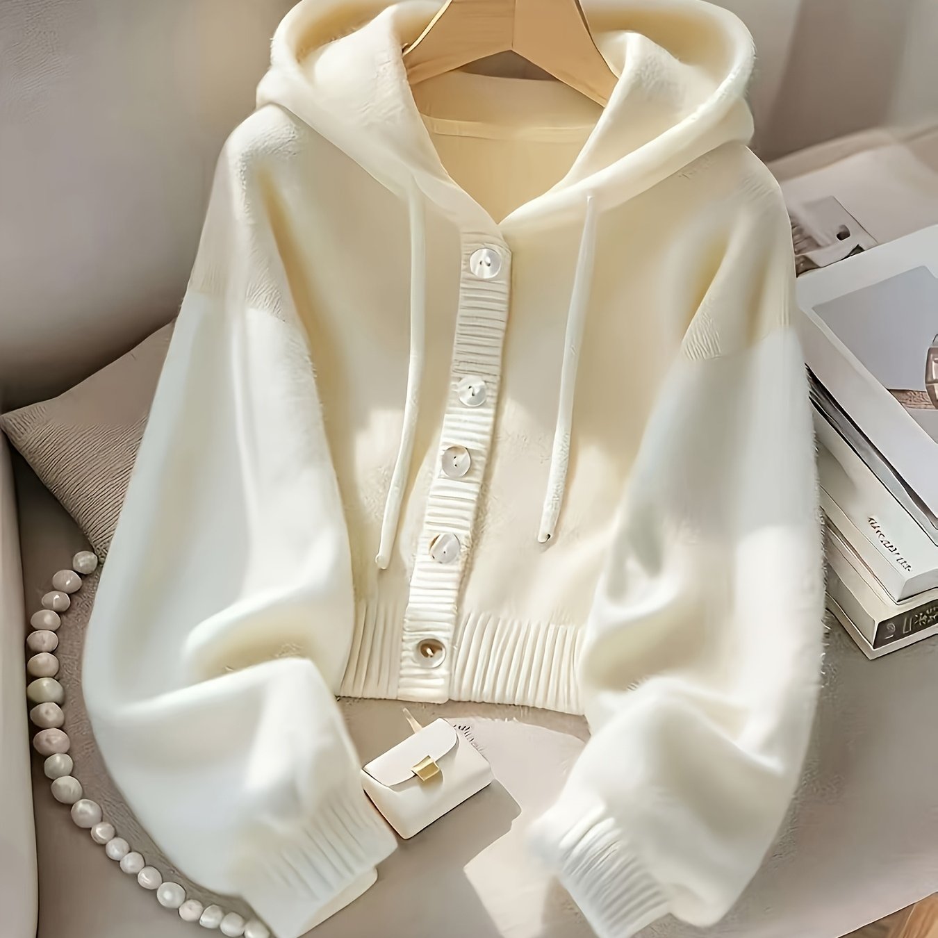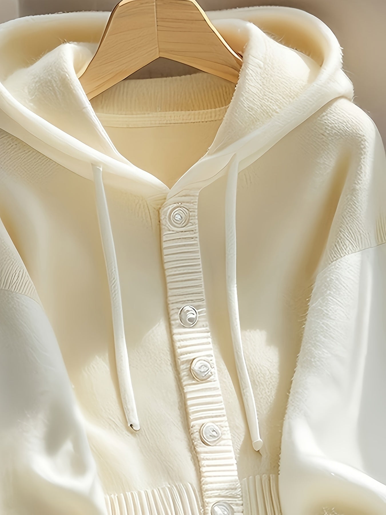 Women’s Hooded Cardigan - Loose Fit with Button Front & Pockets
