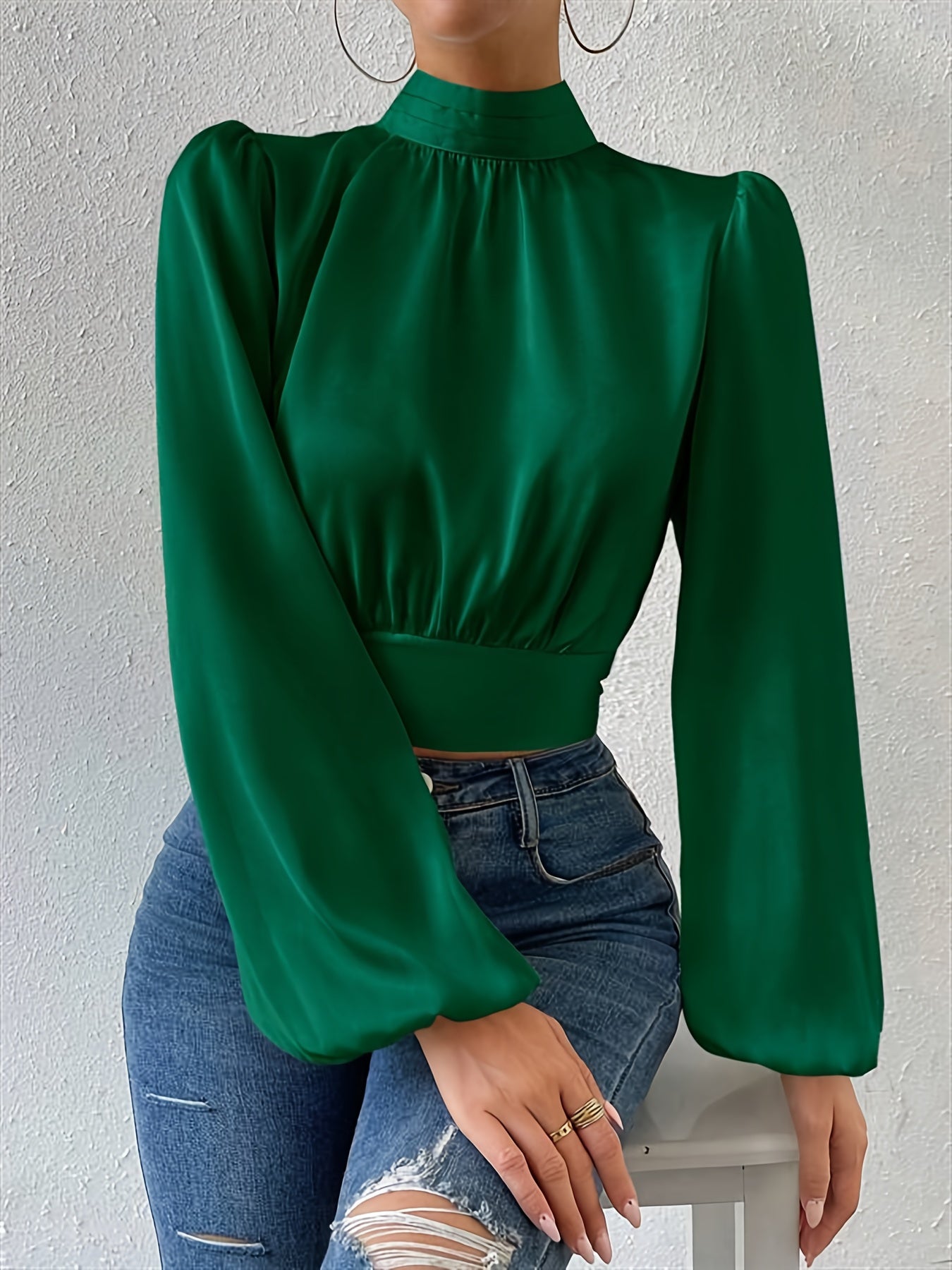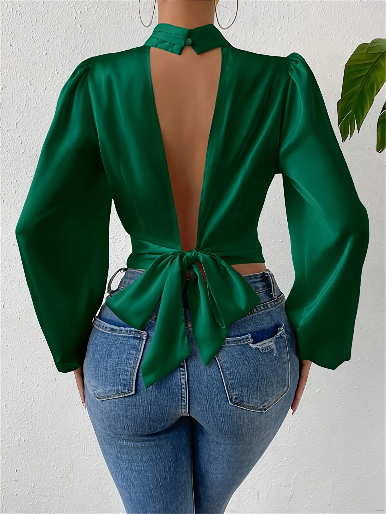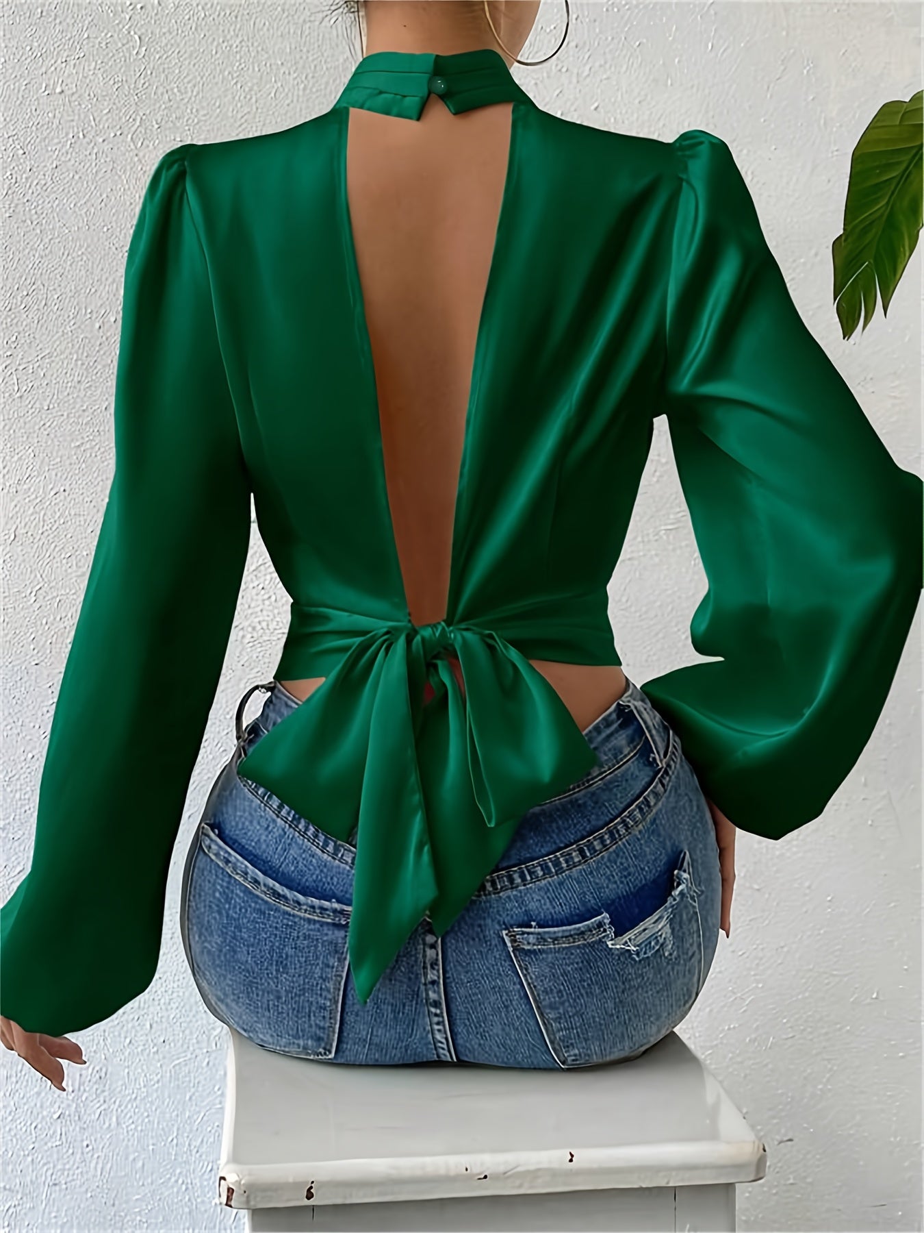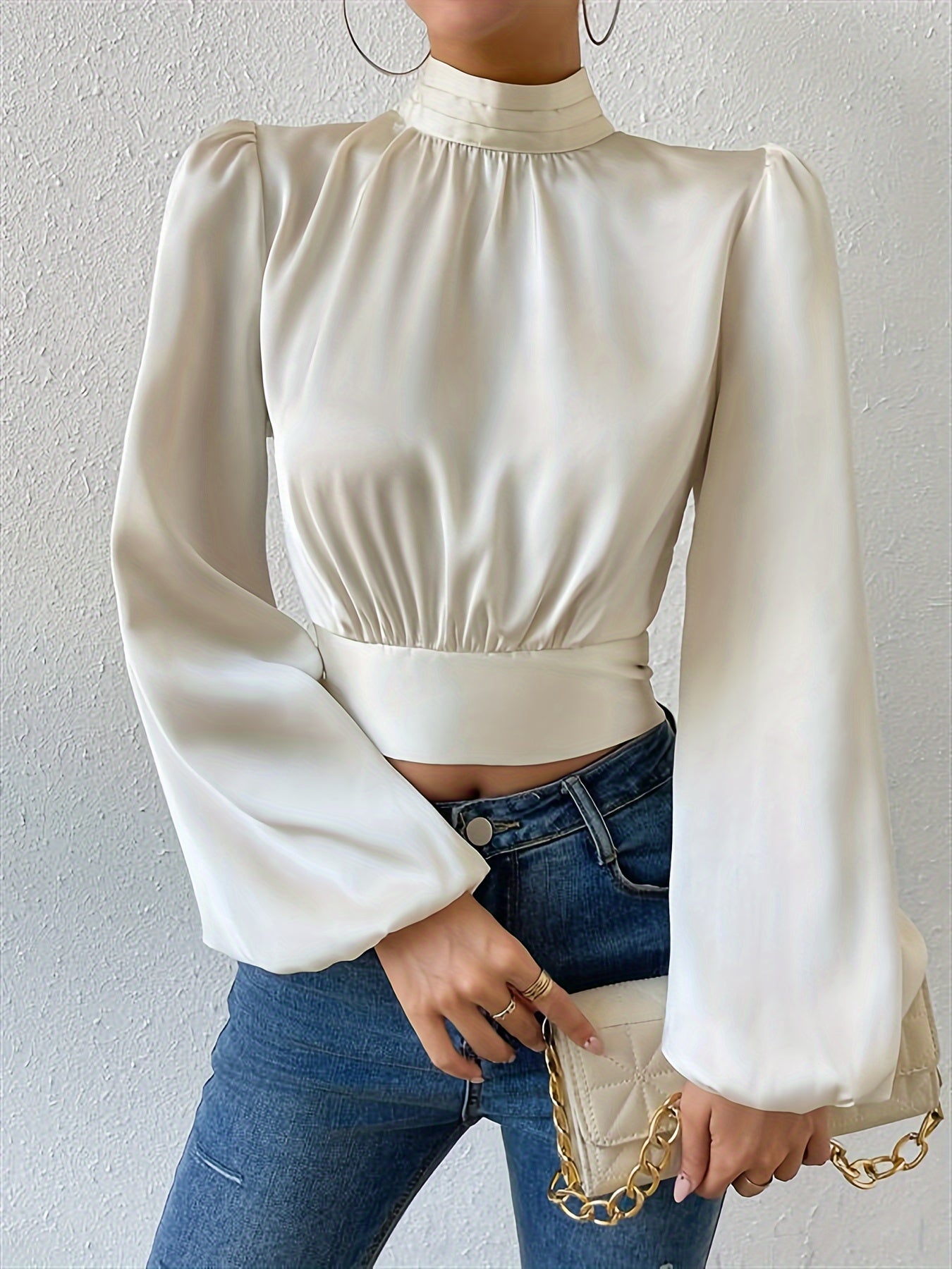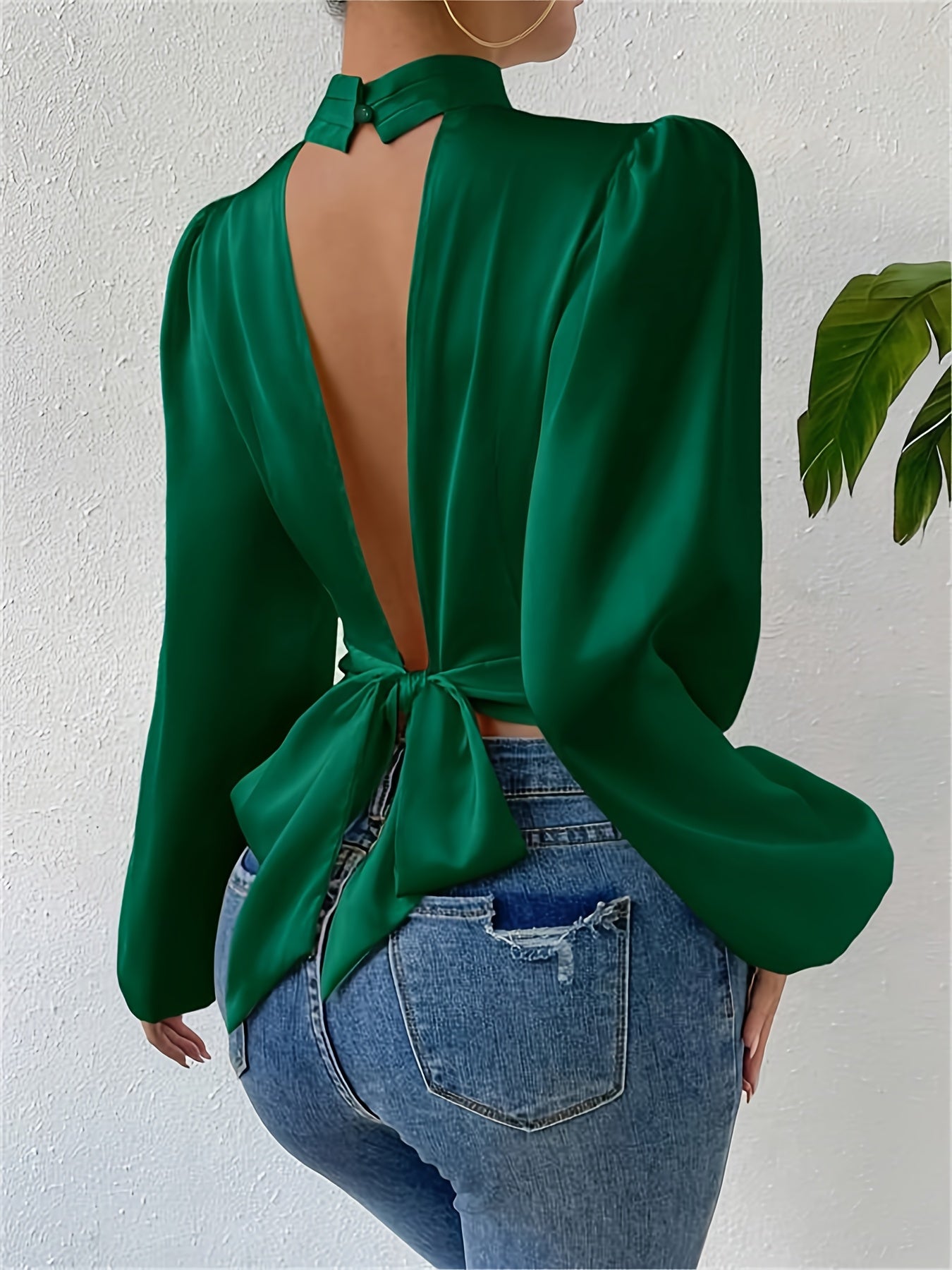 Elegant Backless Mock Neck Blouse - Long Sleeve Women's Top