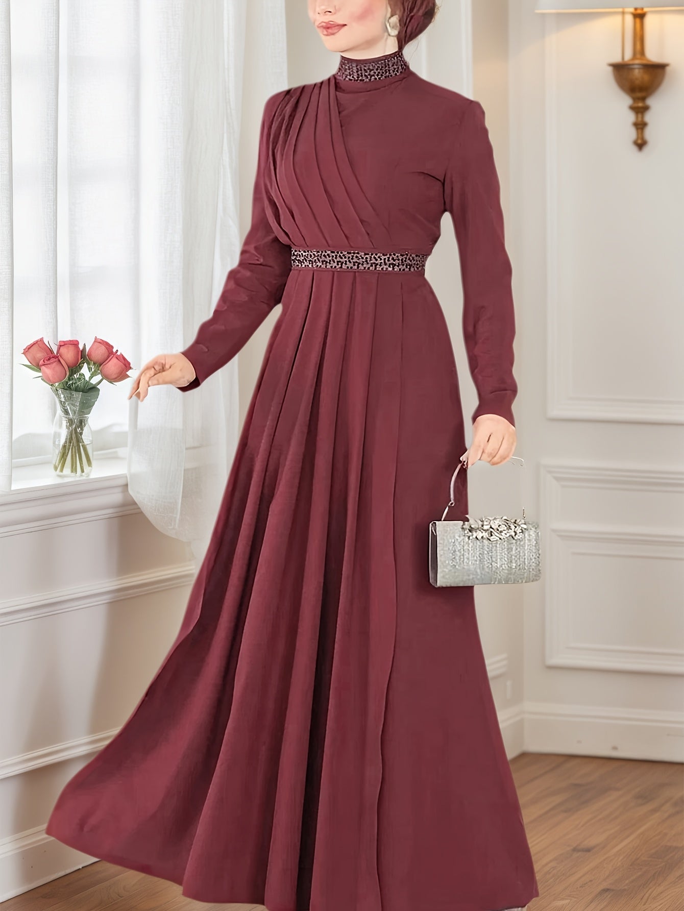 Elegant Women's Long Sleeve Maxi Dress - Formal Party & Wedding Attire