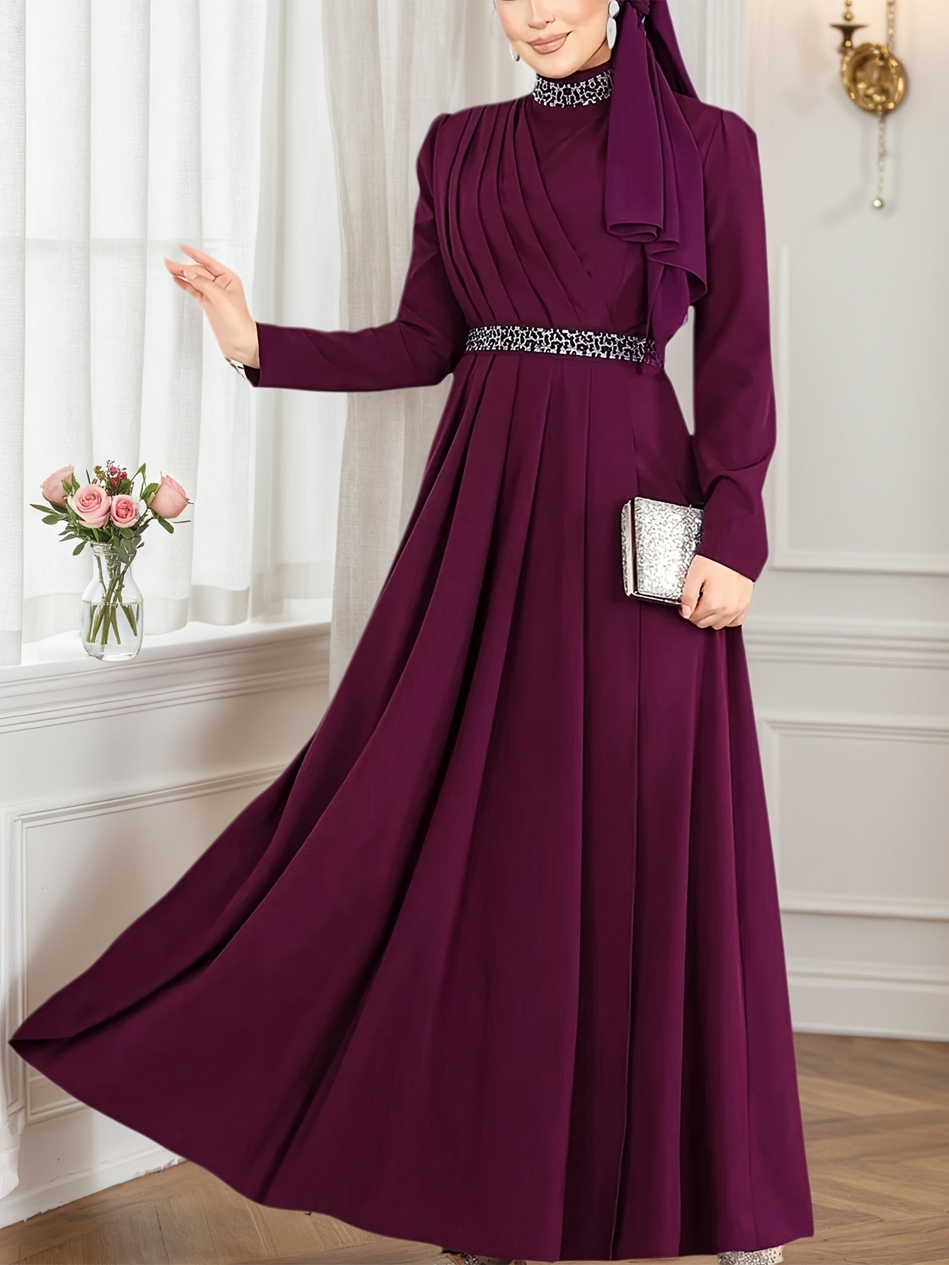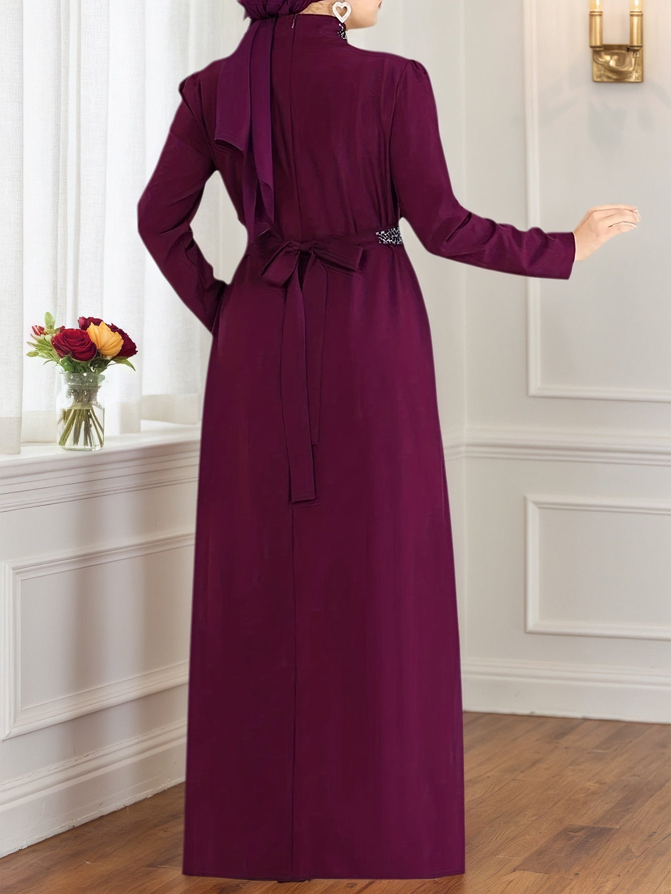 - Long sleeve design provides a graceful and timeless look