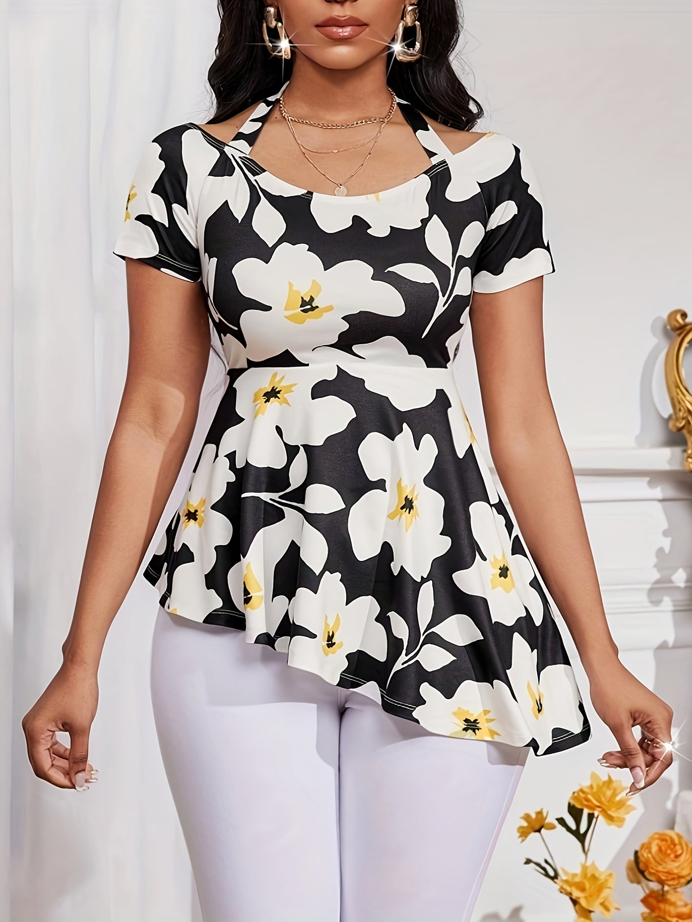 Women's Floral Off-Shoulder Top - Elegant Black & White Design