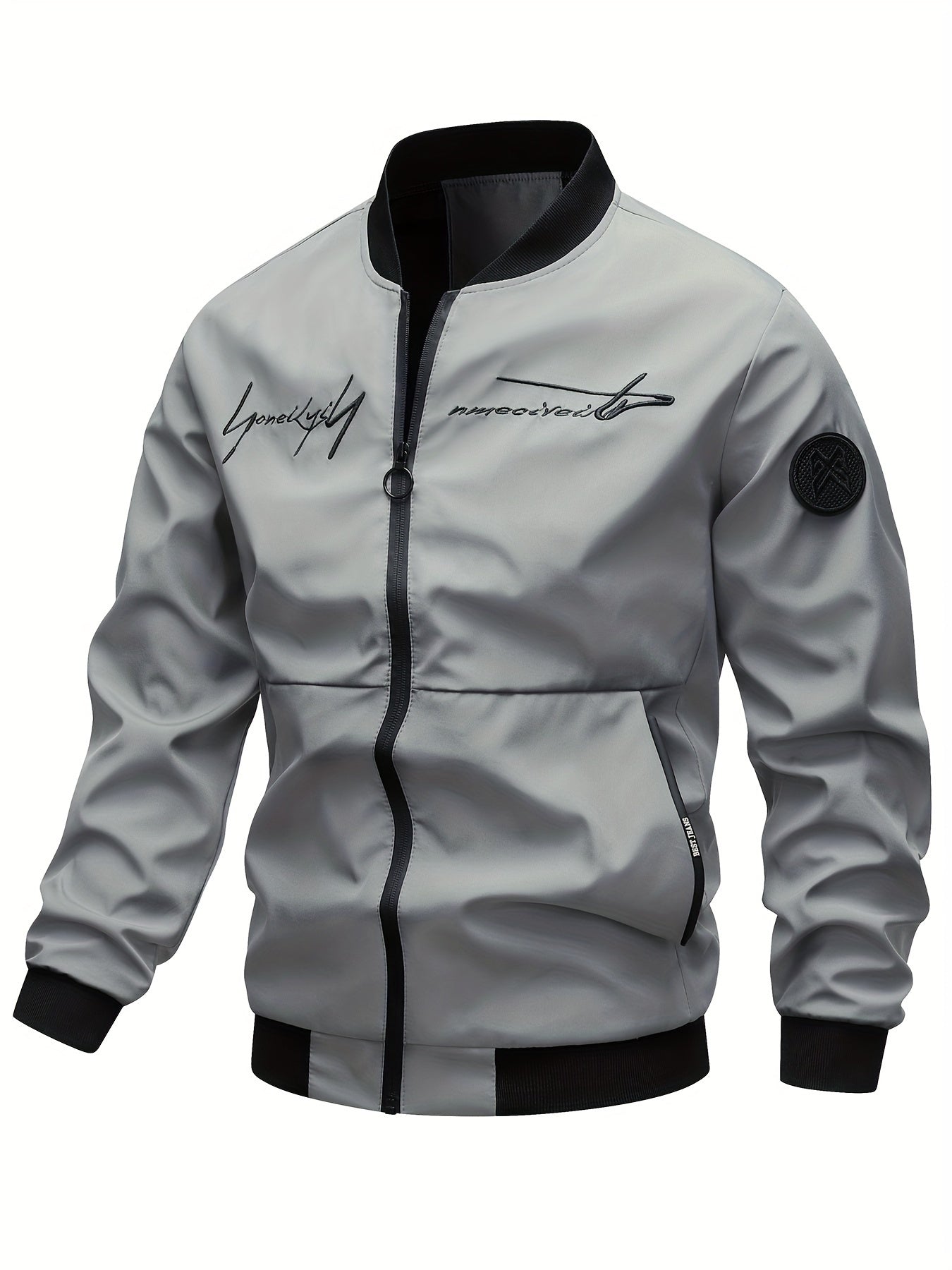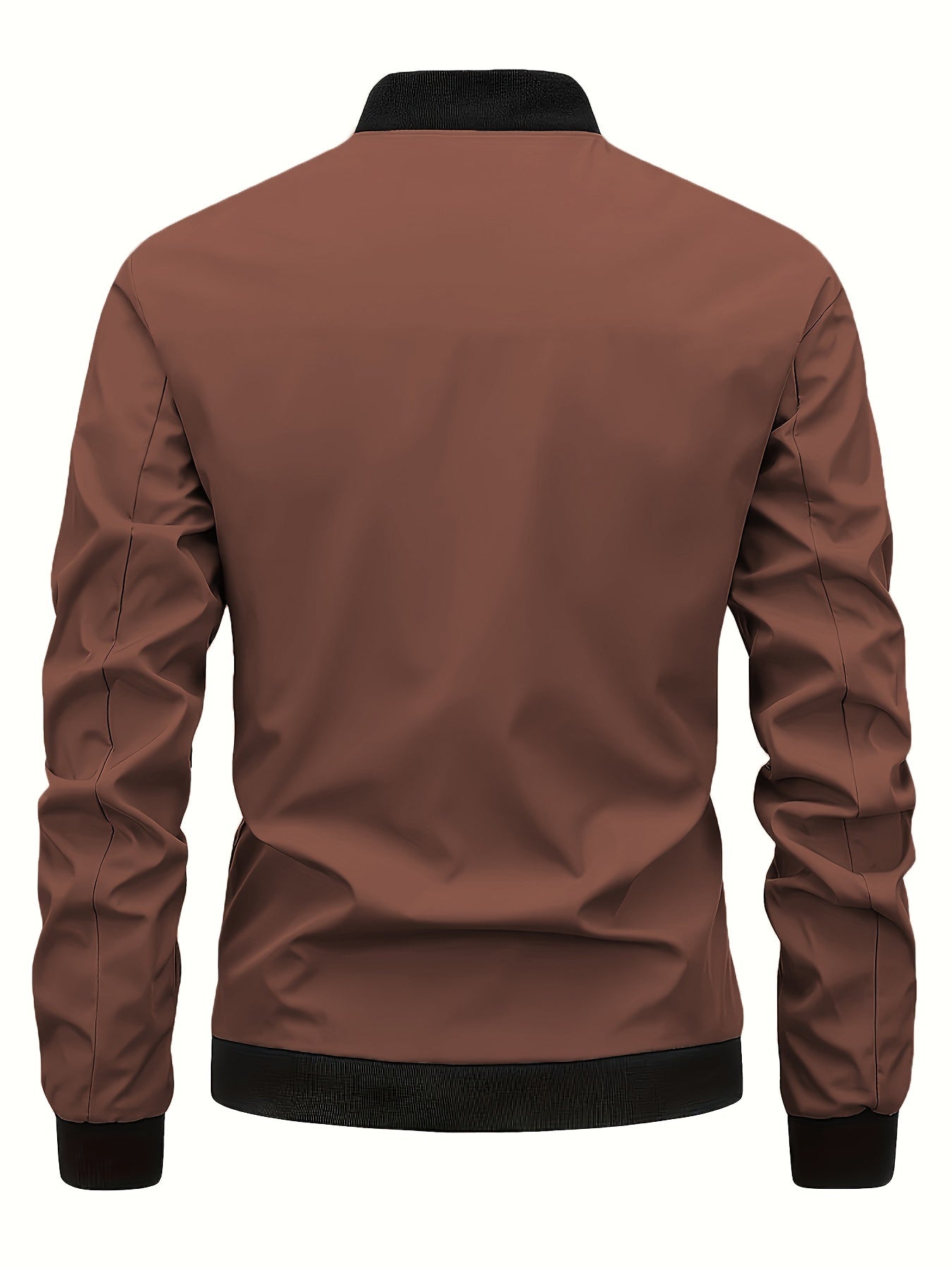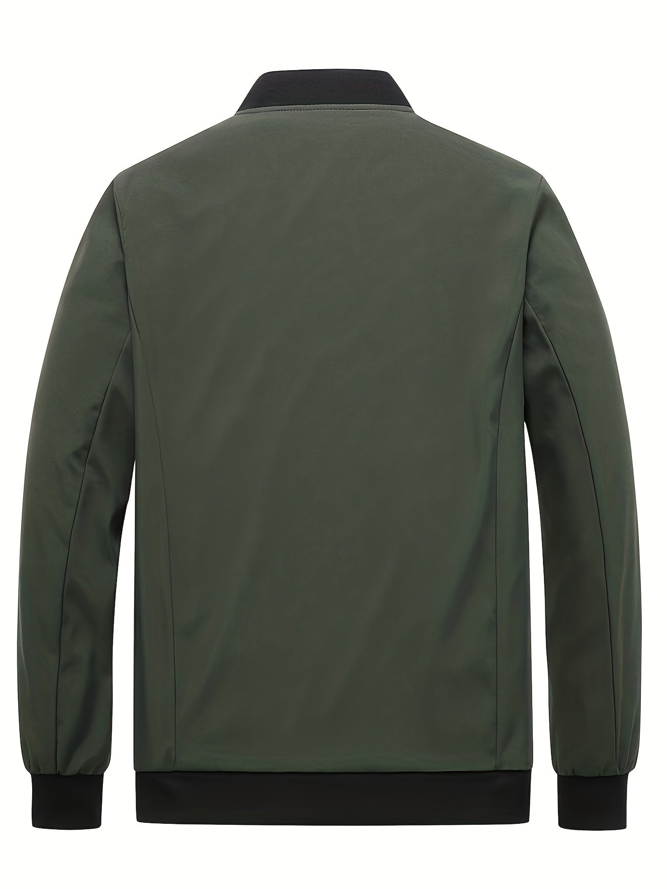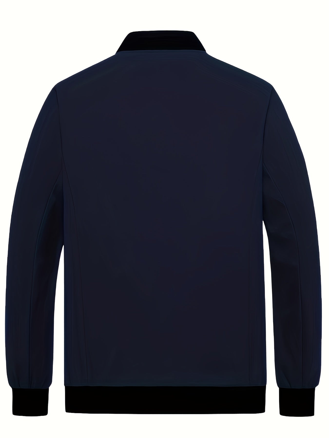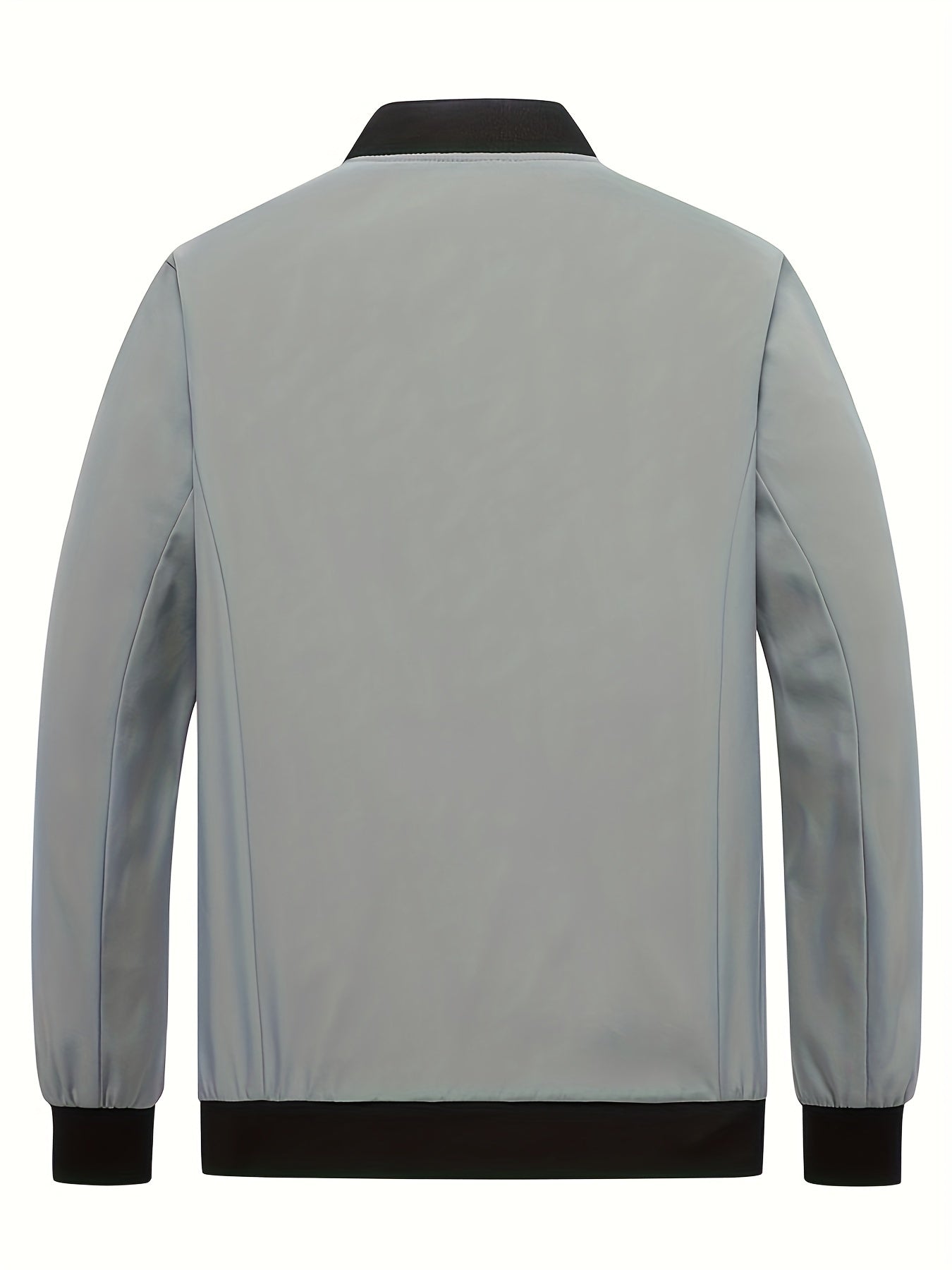 Introducing our Casual Contrast Collar Design Men's Long Sleeve Zip Up Sports Jacket, perfect for your spring and fall outings. With its relaxed fit and practical zip pockets, this stylish bomber jacket is crafted from 100% polyester, ensuring both comfort and durability.