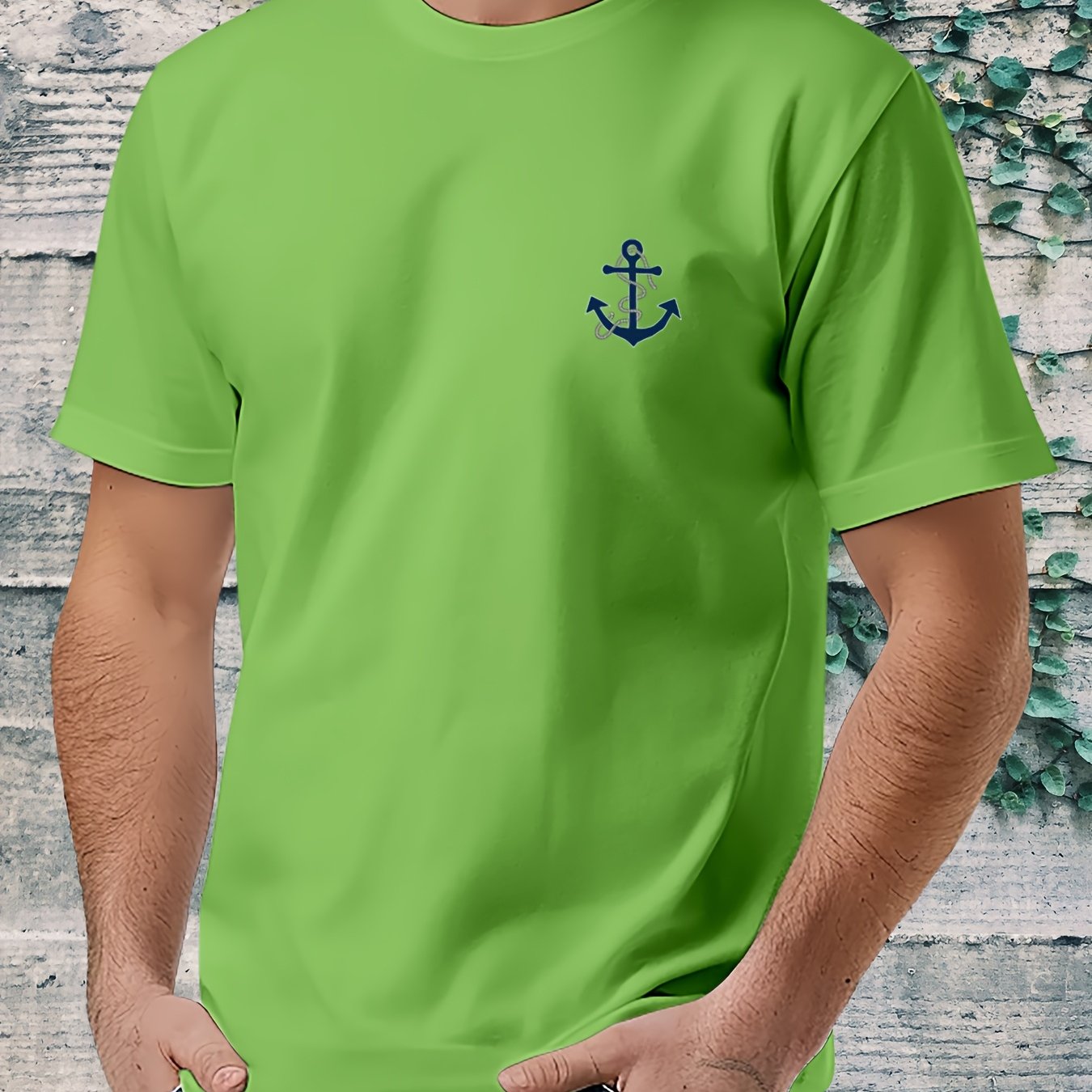 Men's Light Green Nautical Anchor T-Shirt - Breathable Summer Casual Wear