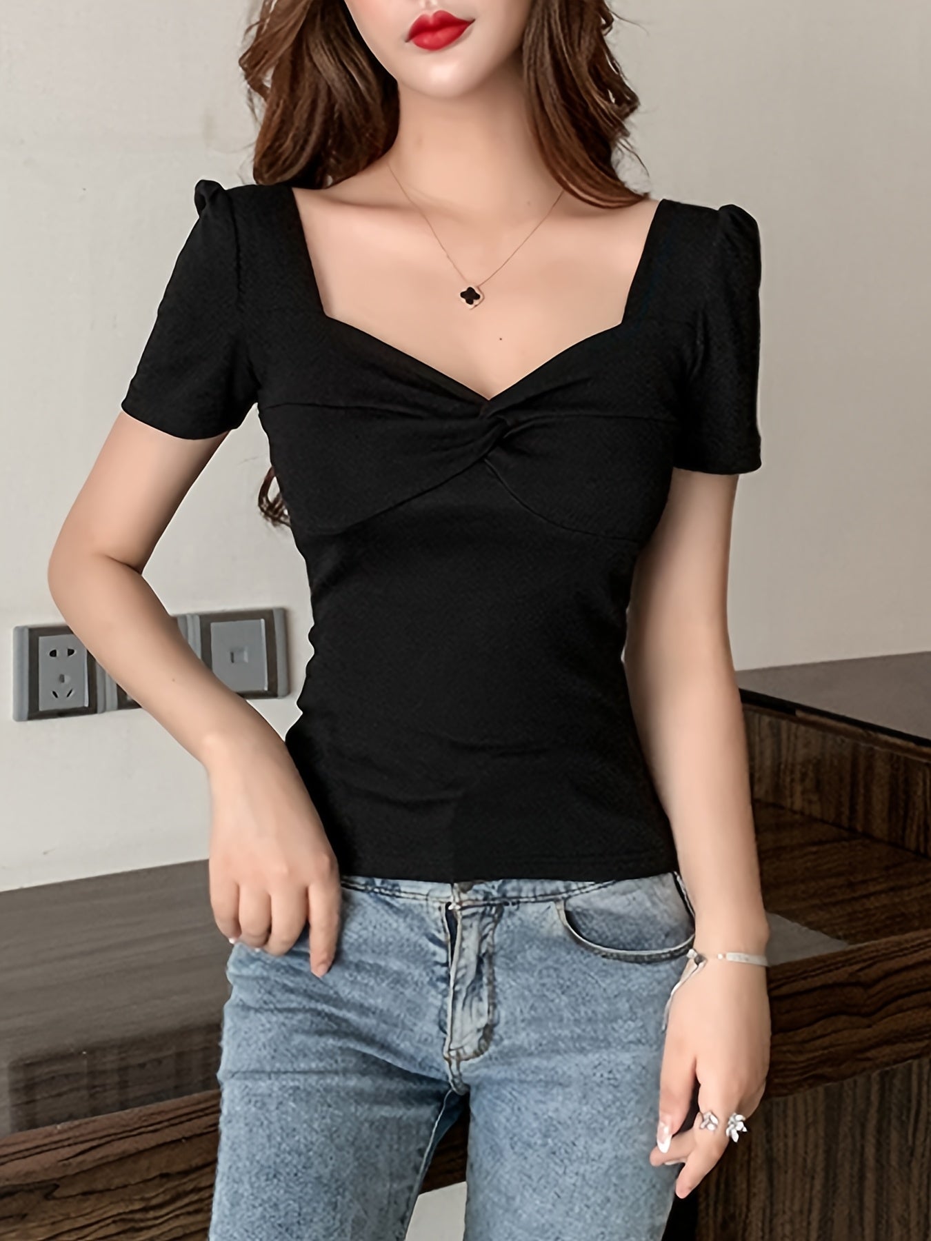 Elevate your summer wardrobe with this versatile Women's Off-Shoulder Twist Knot T-Shirt. Its sexy silhouette and chic twist detail add a touch of elegance, perfect for pairing with shorts or skirts. Don't miss out on this essential piece that combines style and comfort effortlessly.