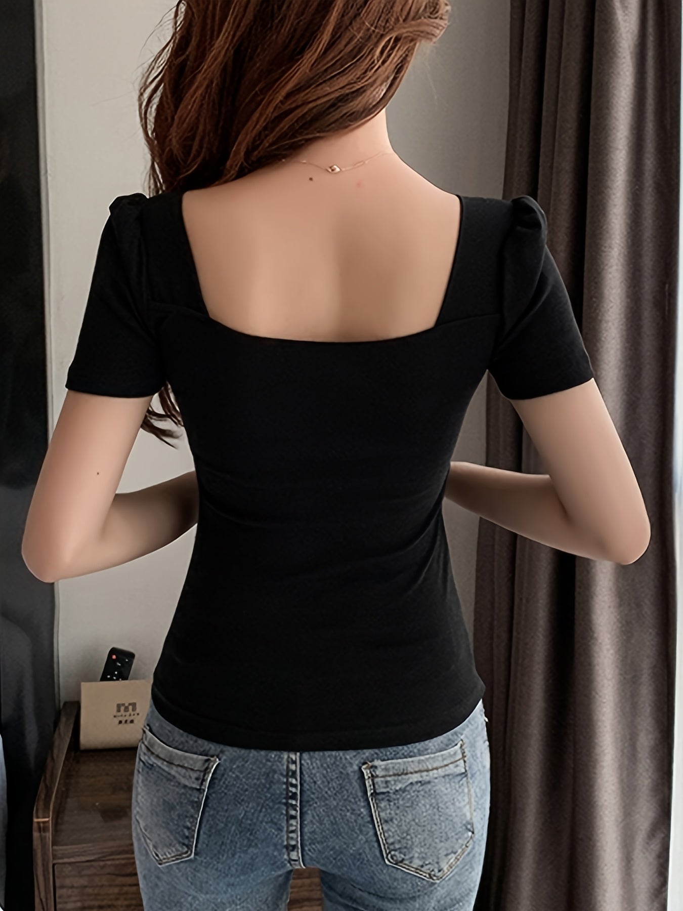 Women's Off-Shoulder Twist Knot T-Shirt - Sexy Black Summer Top