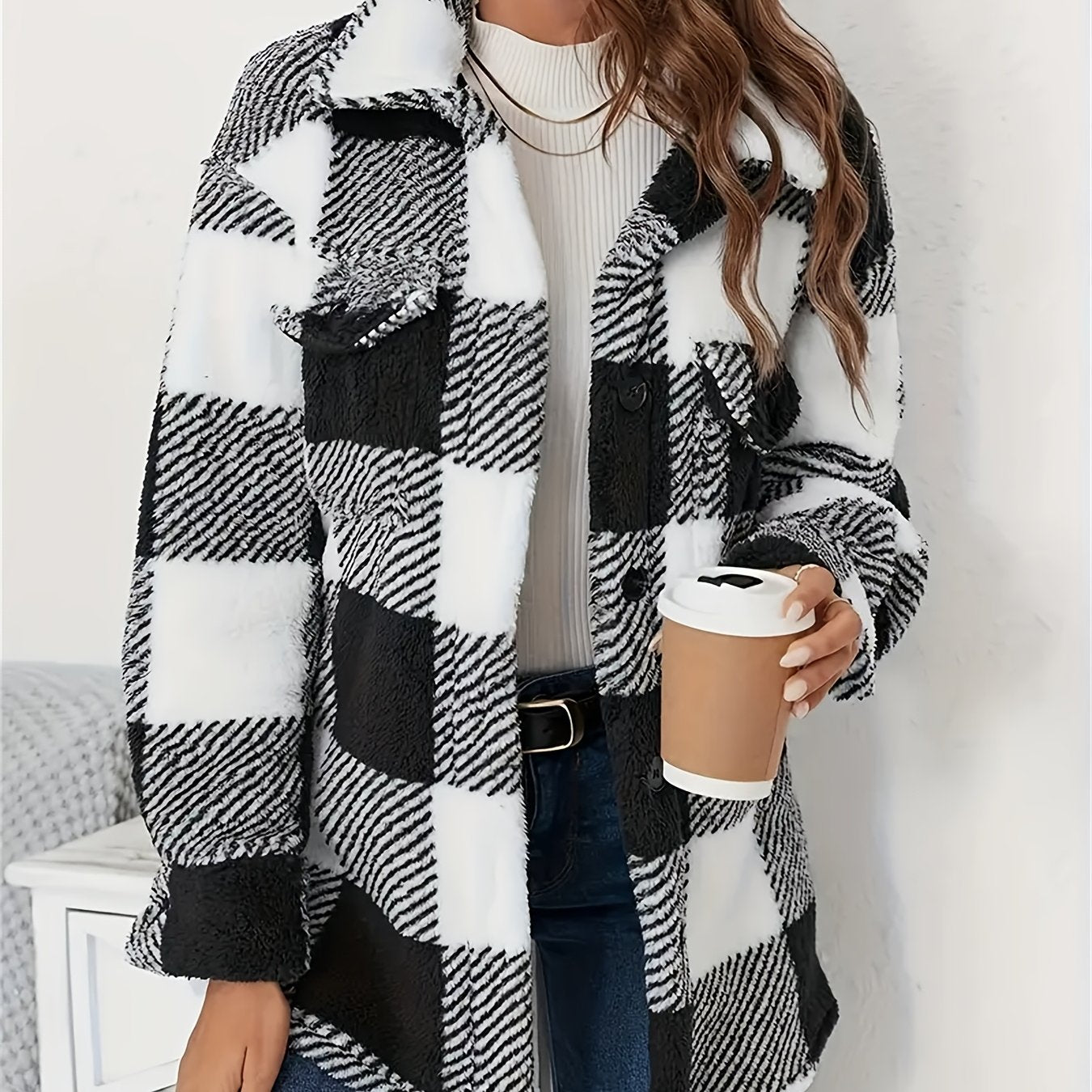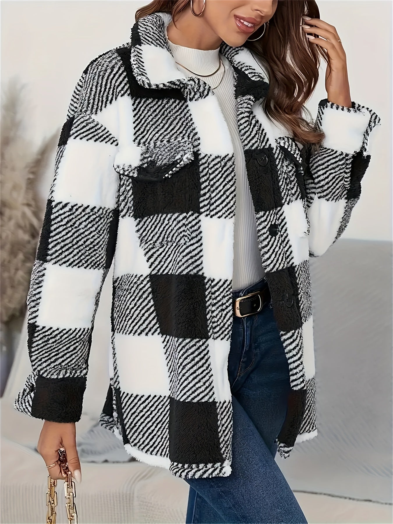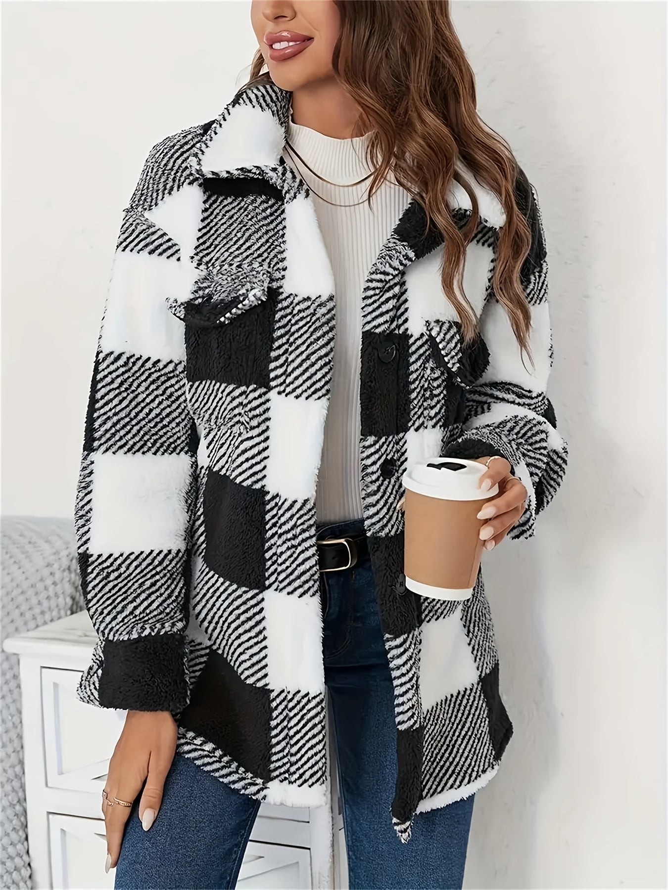 SCACTO Cozy Plaid Fuzzy Jacket - Soft Thermal Insulation for Winter