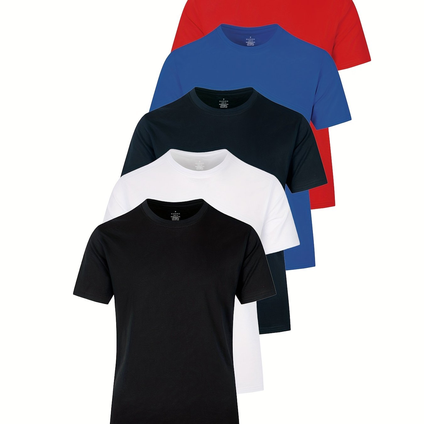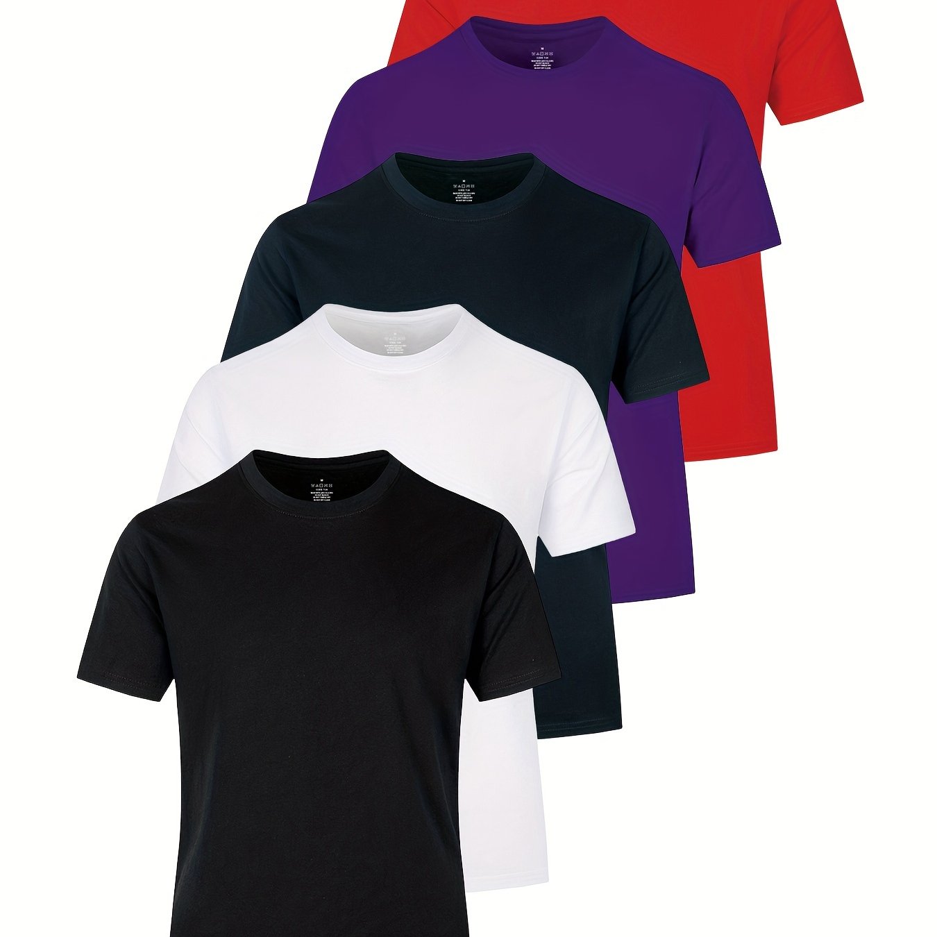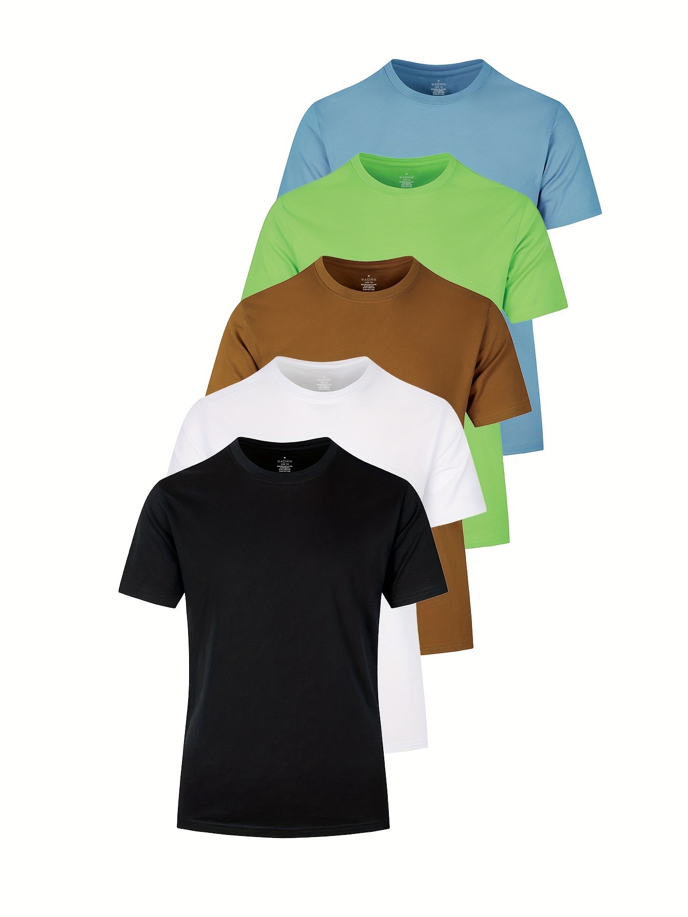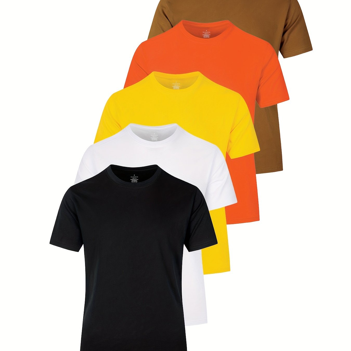 Comfy Multi Color Men’s T-Shirts - 5pcs Solid Summer Casual Wear