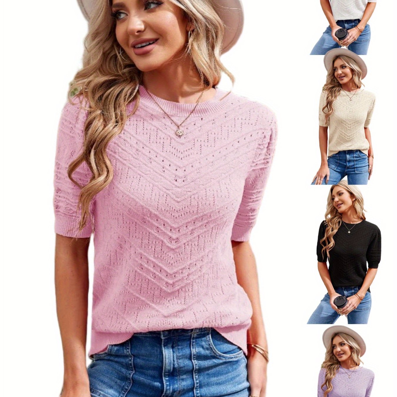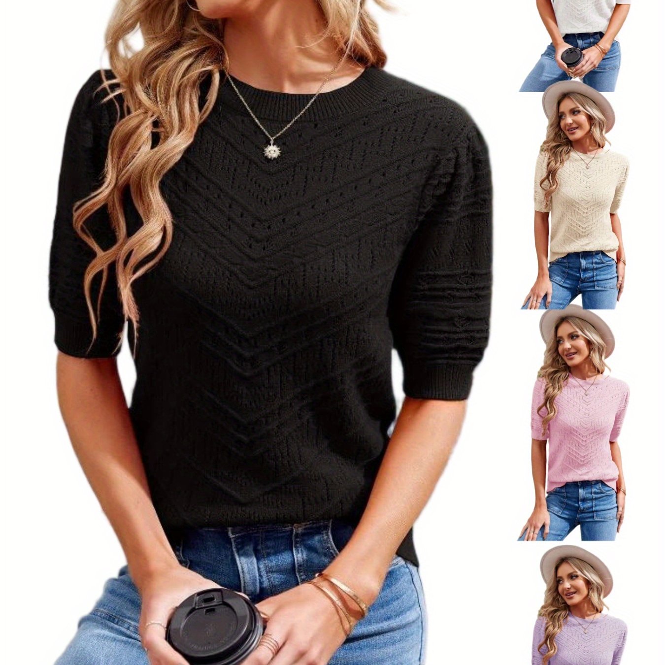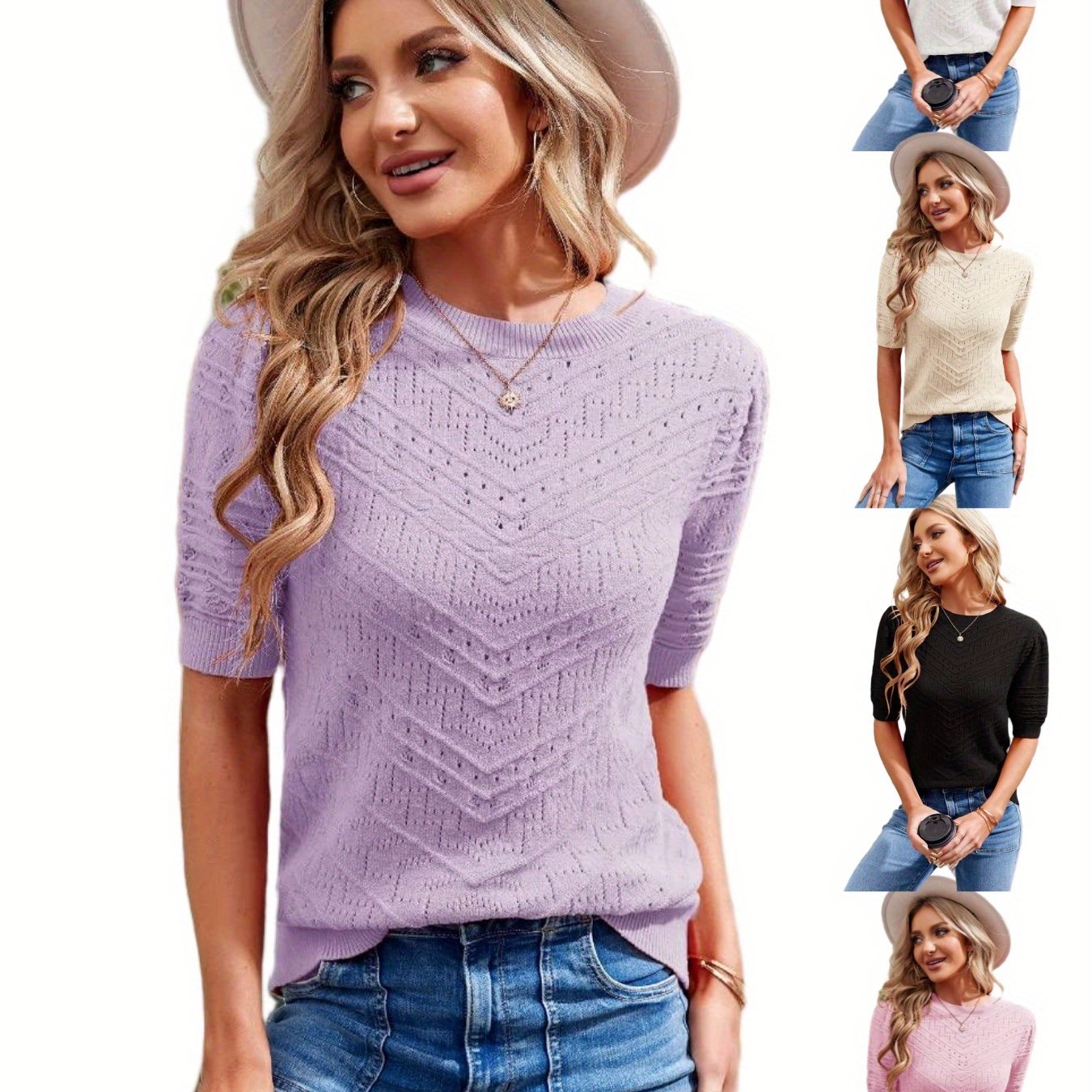Women’s Summer Fall Pullover Sweater - Casual Crew Neck Top