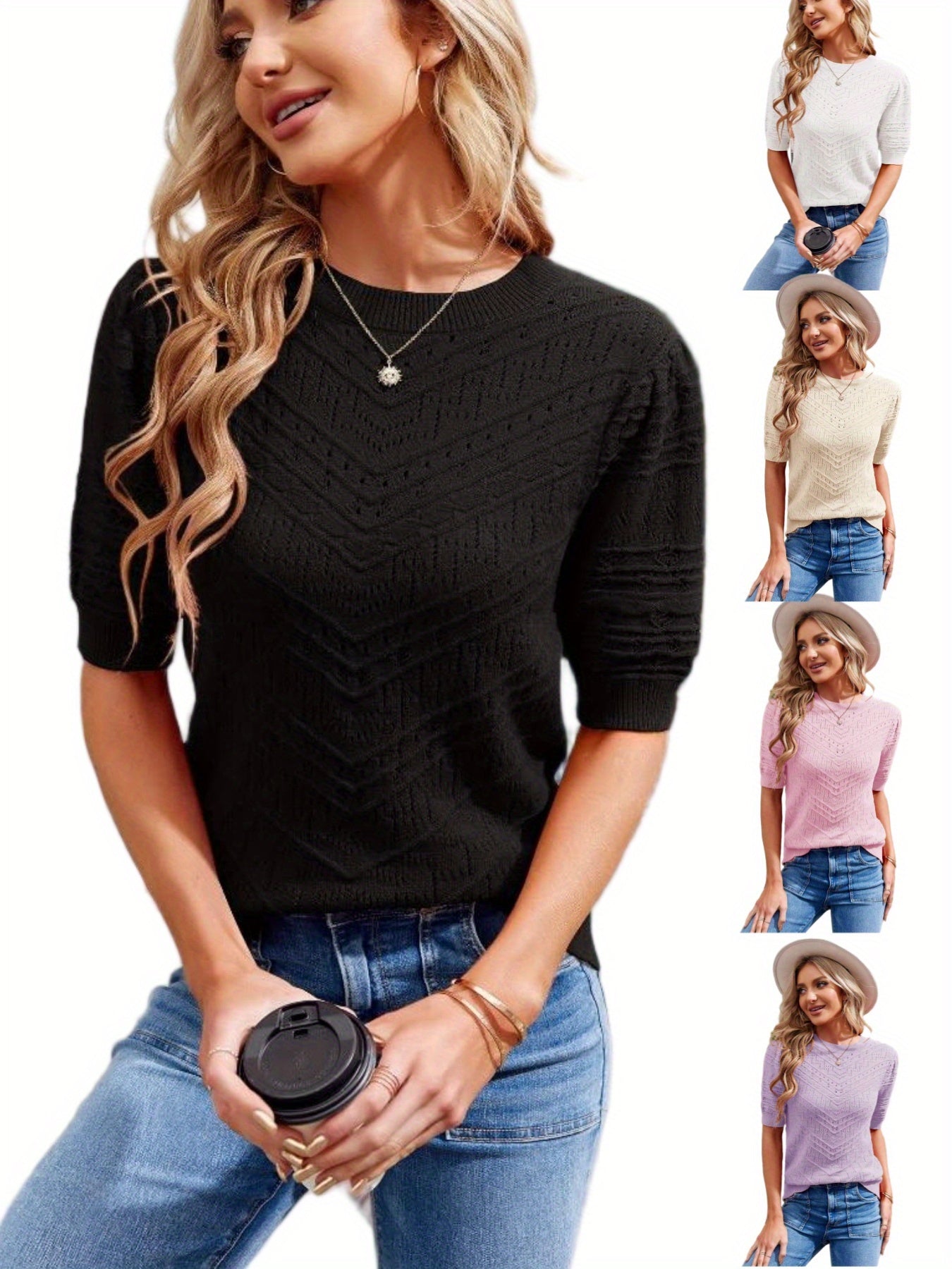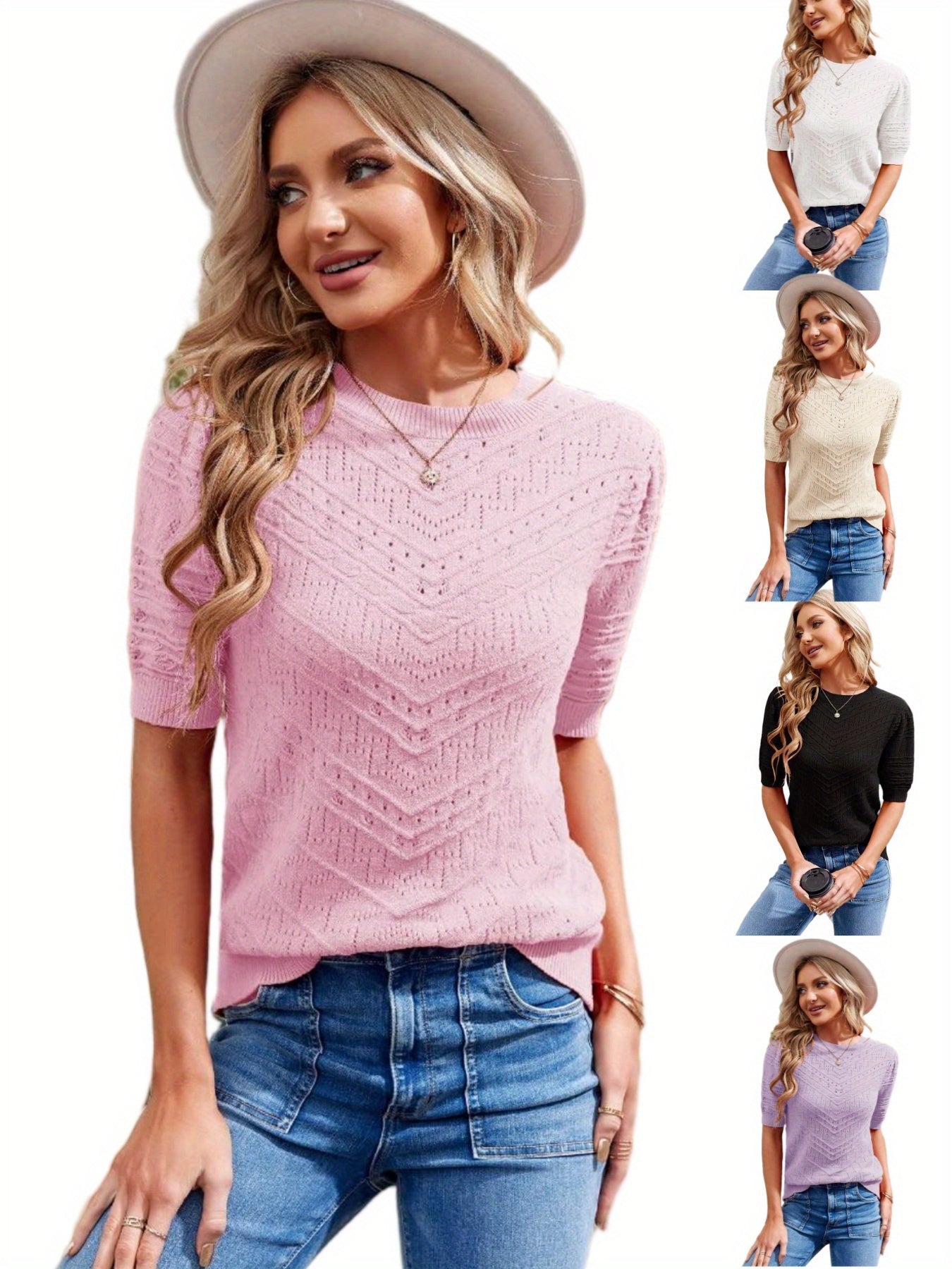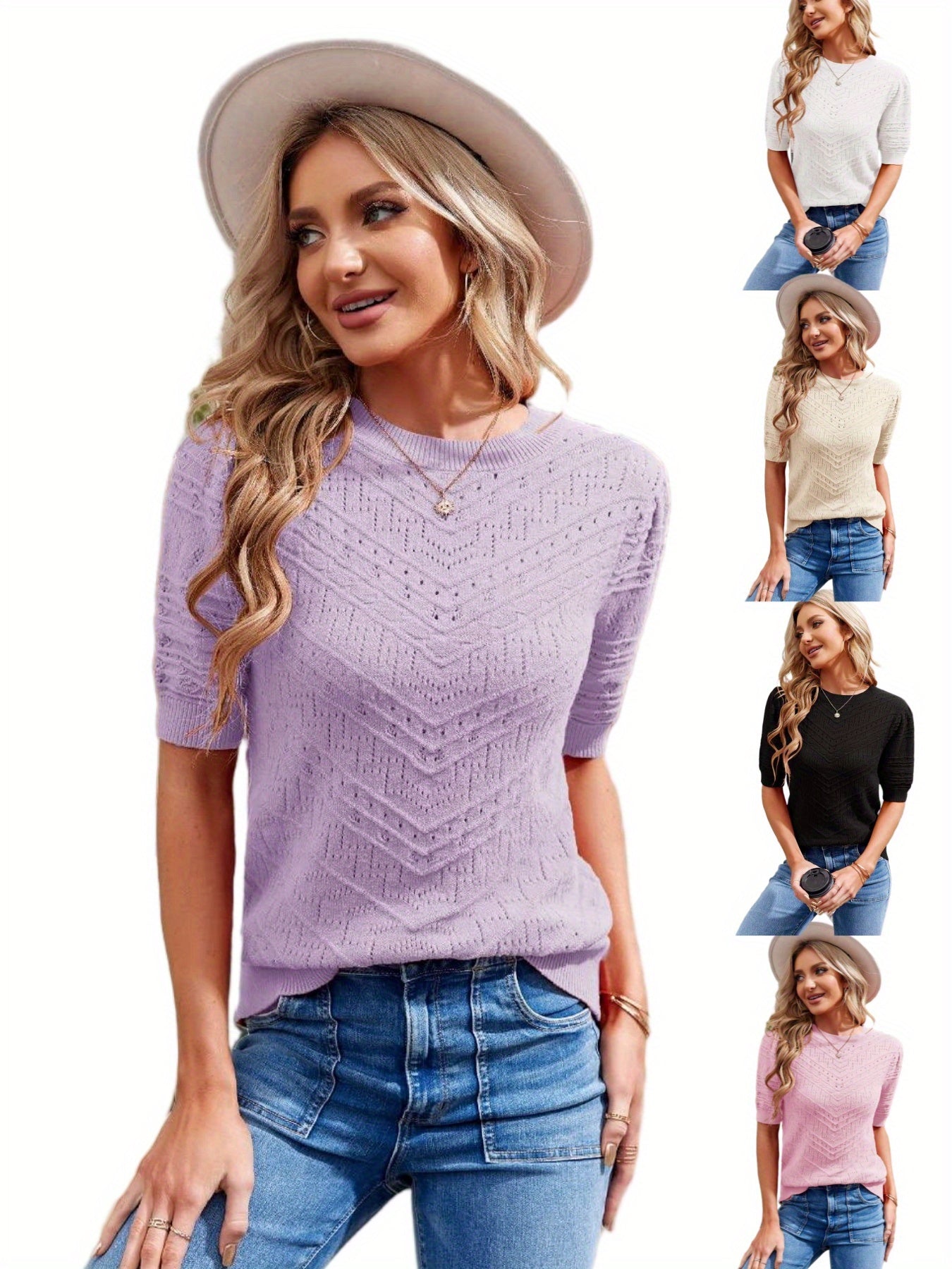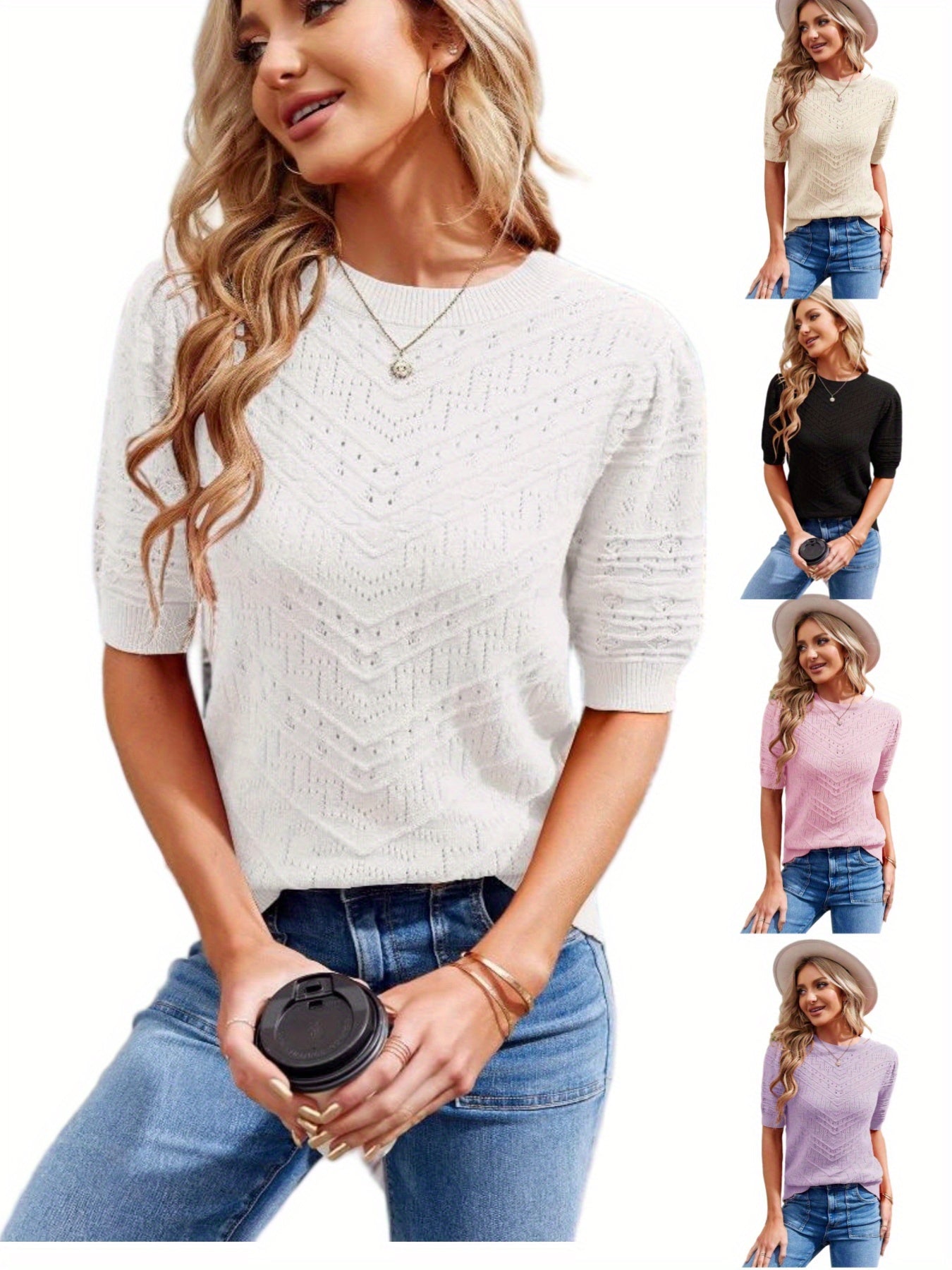 Women’s Summer Fall Pullover Sweater - Casual Crew Neck Top
