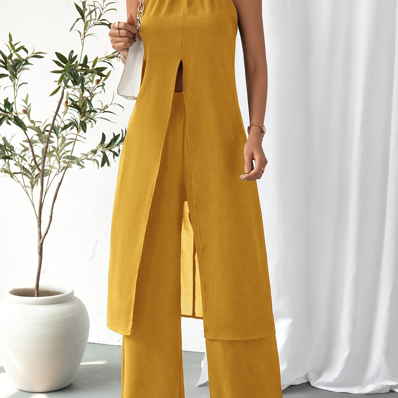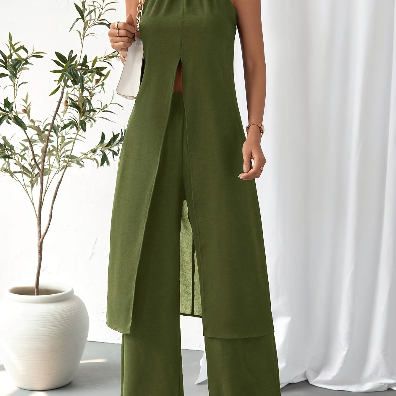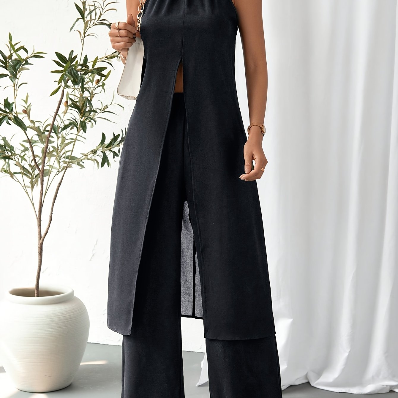 Elegant Women's Two-Piece Suspender Set - Casual Solid Color Style