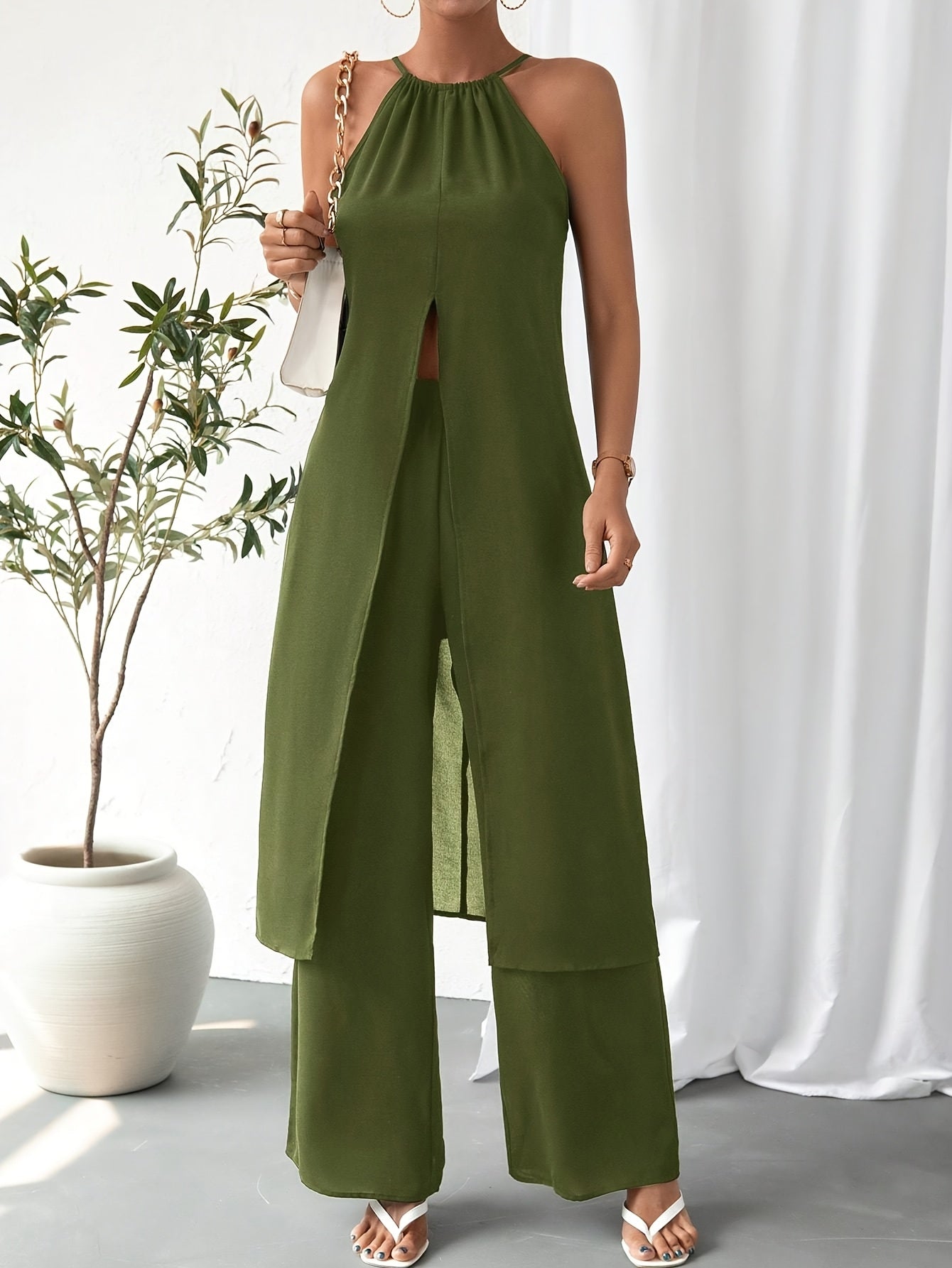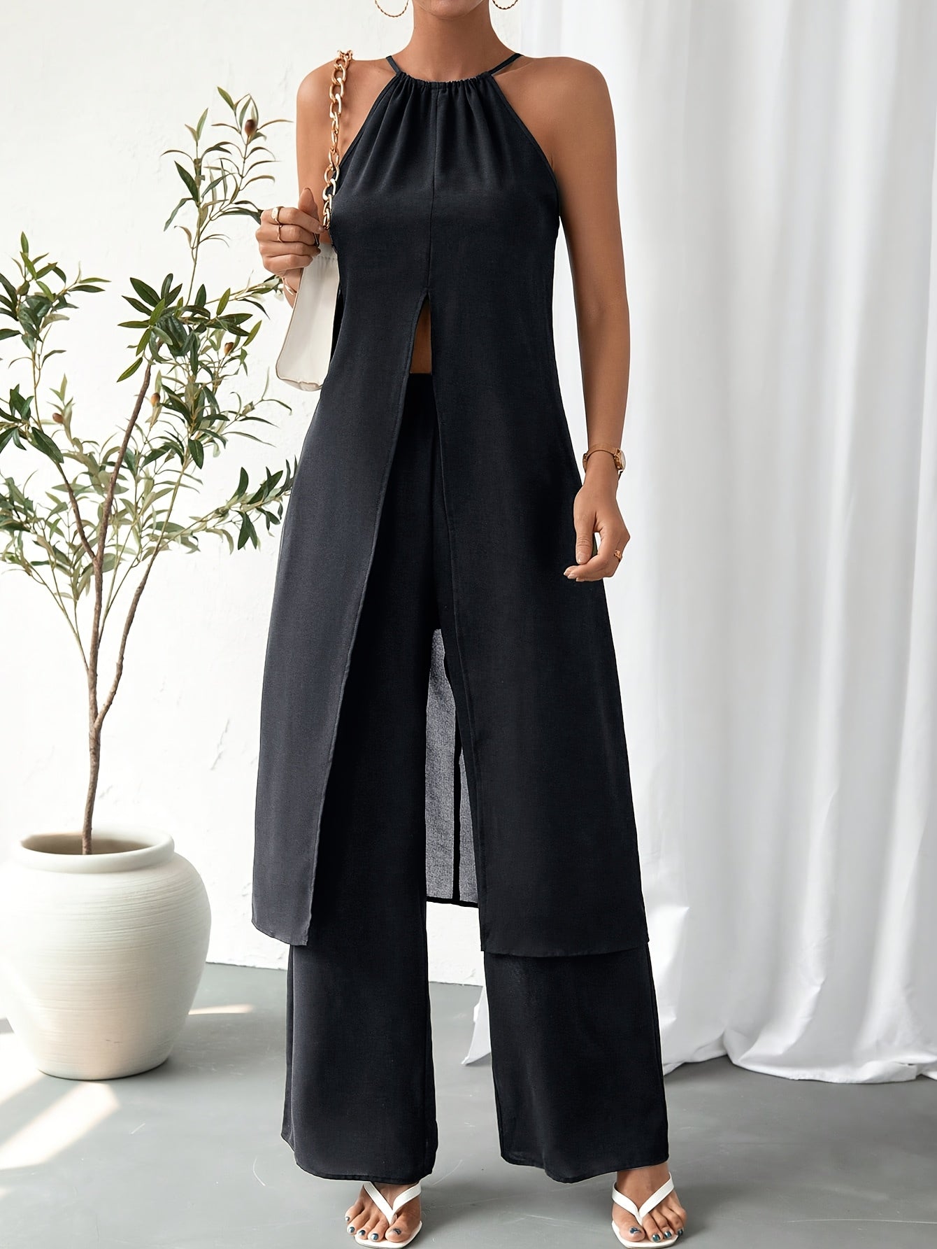 Elevate your wardrobe with this sophisticated yet casual two-piece suspender set. Its elegant design and solid color make it a versatile choice for any event, whether you're out with friends or enjoying a cozy evening at home. Experience the perfect blend of style and comfort with this must-have addition to your clothing collection.
