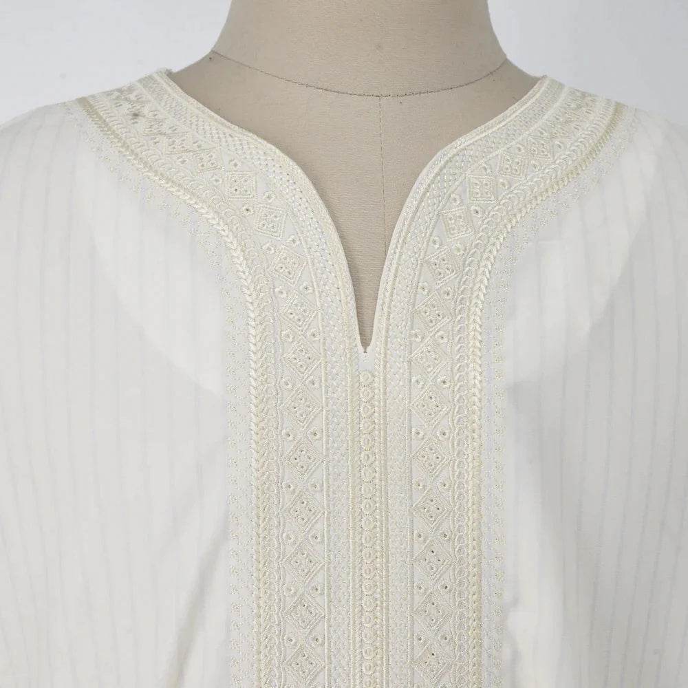 Discover the Buycenter Ethnic Style Loose Casual Muslim Robe, an exquisite blend of comfort and elegance crafted from high-quality linen fabric. This milky white robe features intricate embroidery, making it the perfect addition to your wardrobe for any occasion throughout the four seasons.