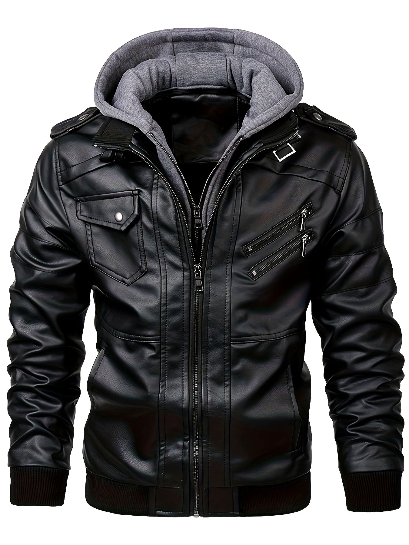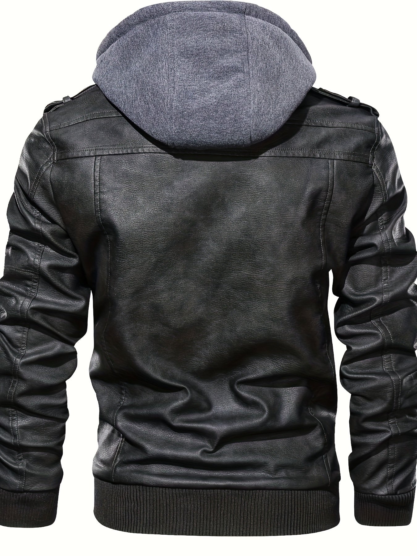 Looking for a jacket that balances style and comfort? Our Men's Hooded Motorcycle Faux Leather Jacket is the perfect choice. Its classic aesthetic and durable materials make it not just a jacket, but a statement piece. Whether you're cruising on a bike or enjoying a night out, this jacket will enhance your outfit while keeping you cozy.