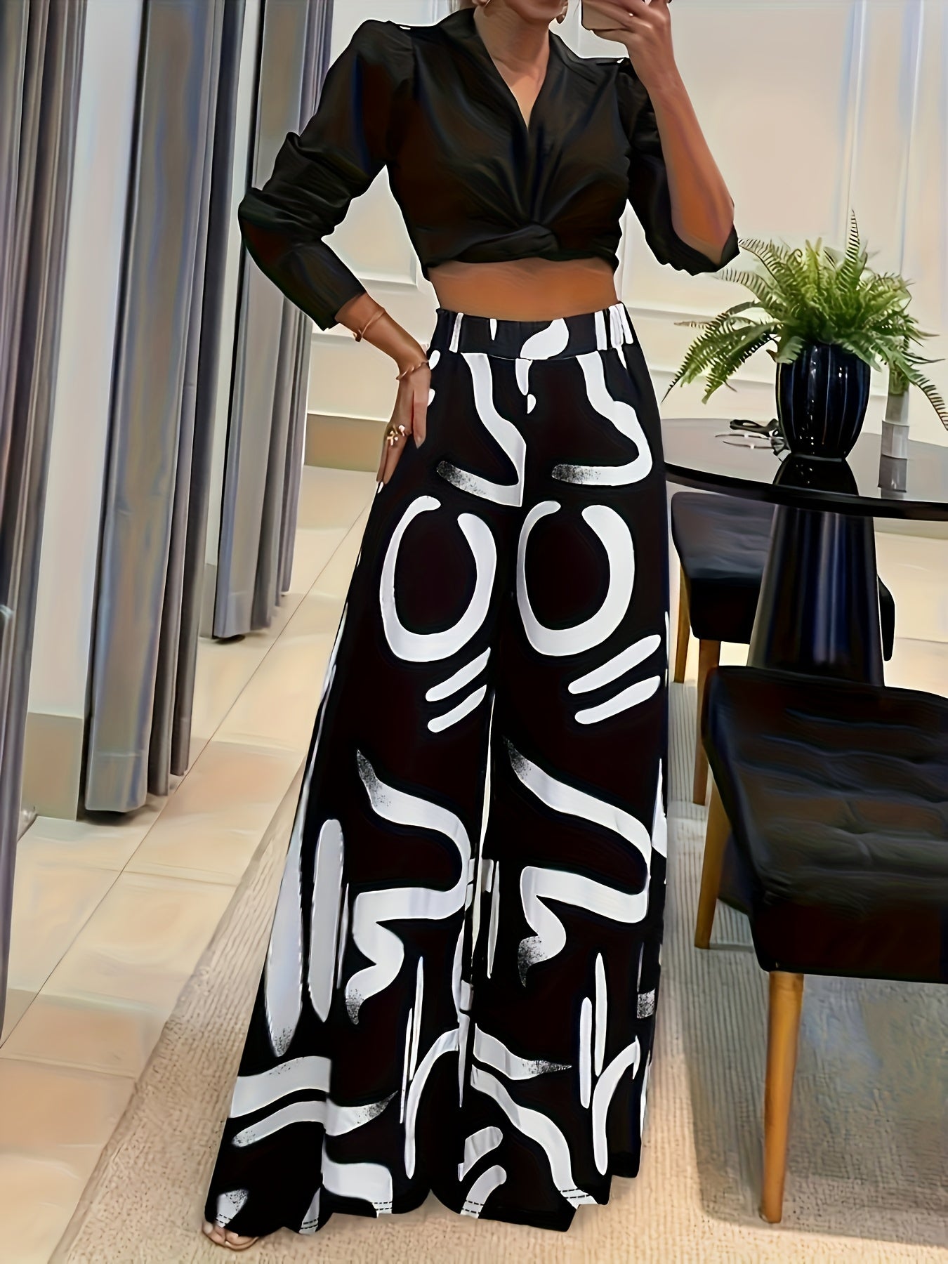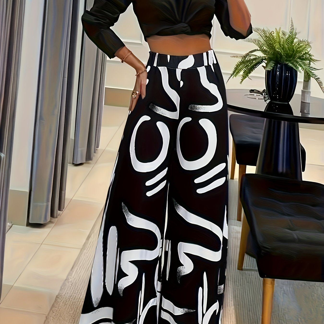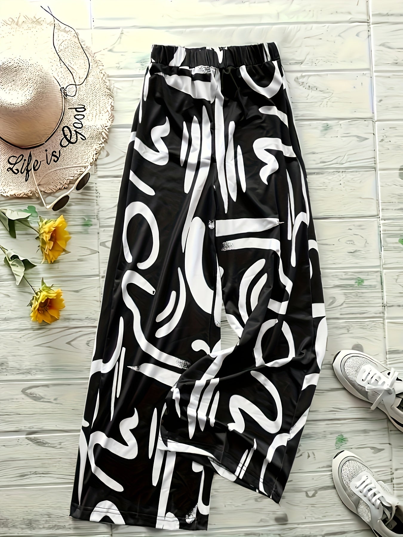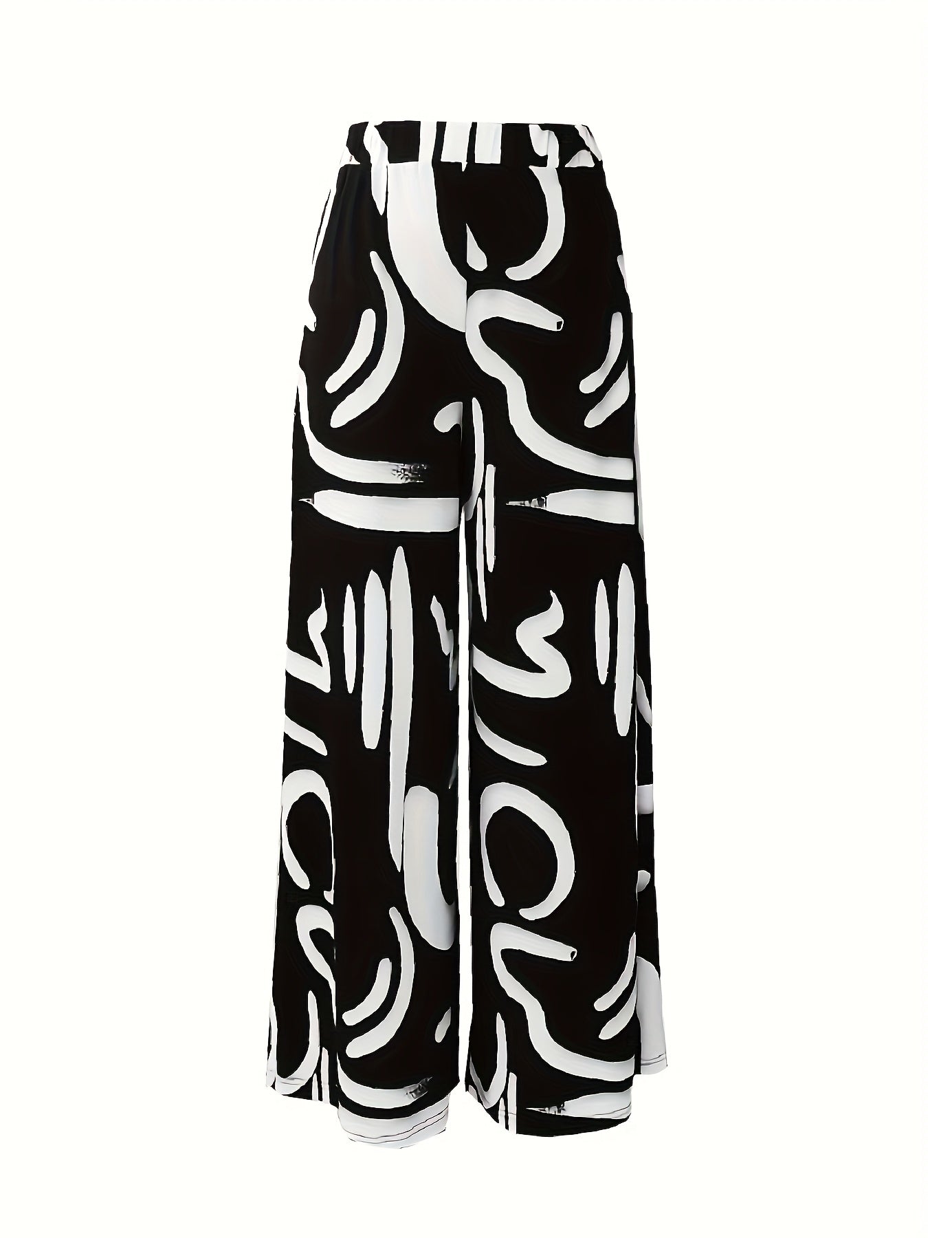 Discover the perfect blend of style and comfort with our Women's High-Waist Loose Fit Geometric Print Casual Pants. Featuring a striking black and white abstract design, these trousers are tailored for everyday wear, providing a chic yet relaxed look that effortlessly elevates your casual wardrobe.