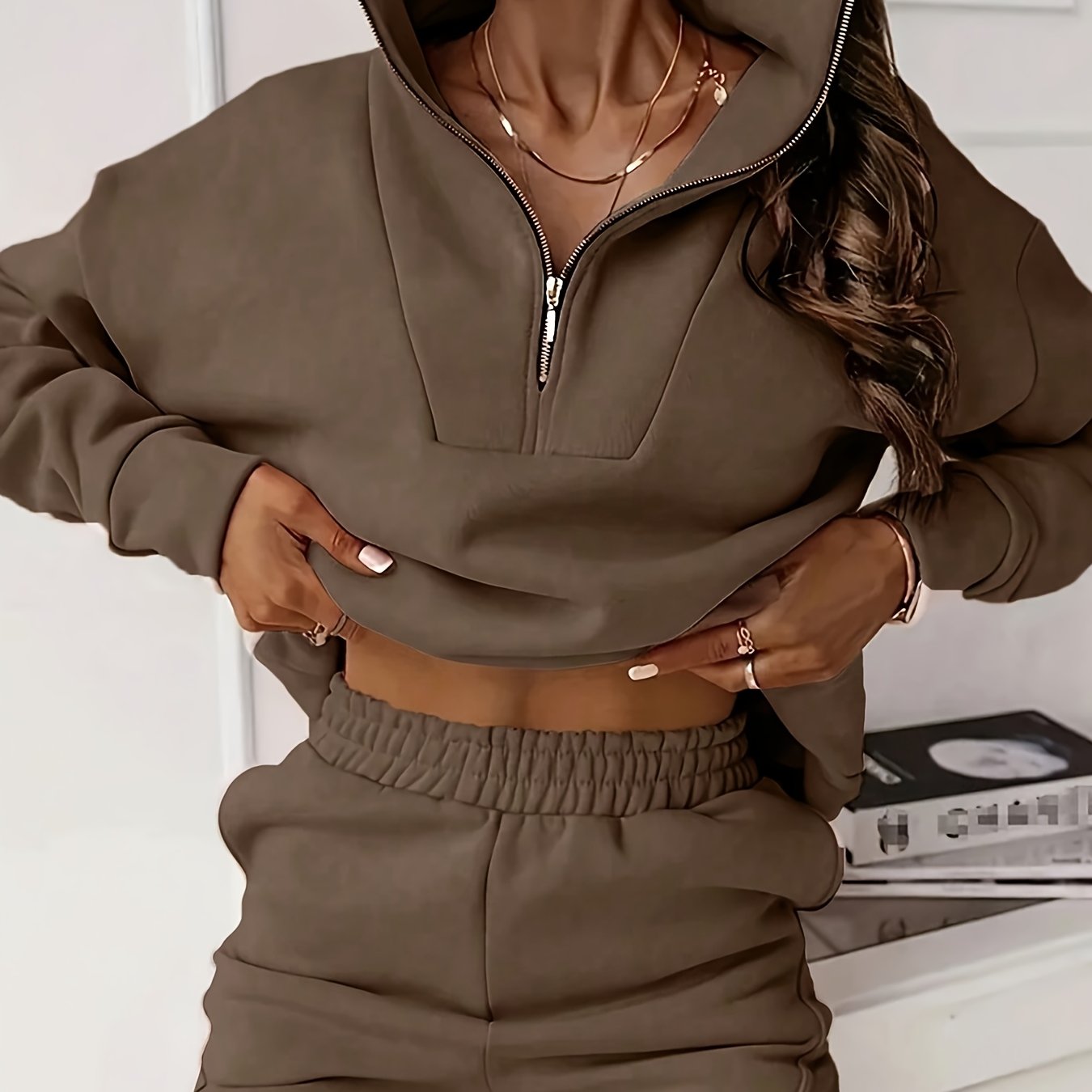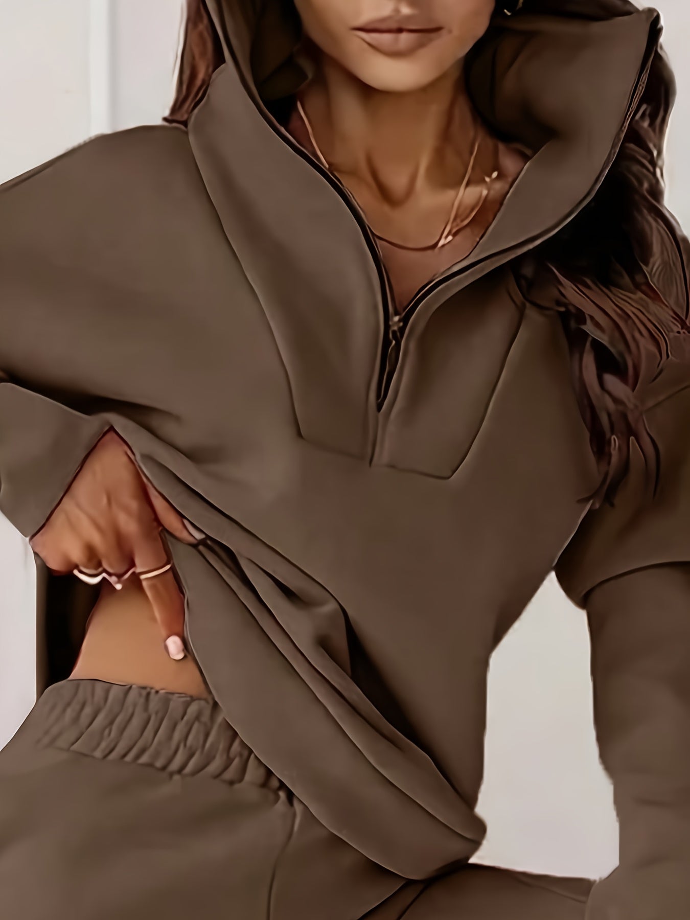 Introducing the Women's Oversized Zip-Up Sweatshirt, the perfect blend of style and comfort. This half-zip pullover features a drop shoulder design and a loose fit, making it an ideal choice for both casual and formal outfits during the fall and winter seasons. Crafted from high-quality polyester, this easy-care sweatshirt is designed to keep you looking chic while ensuring maximum comfort.