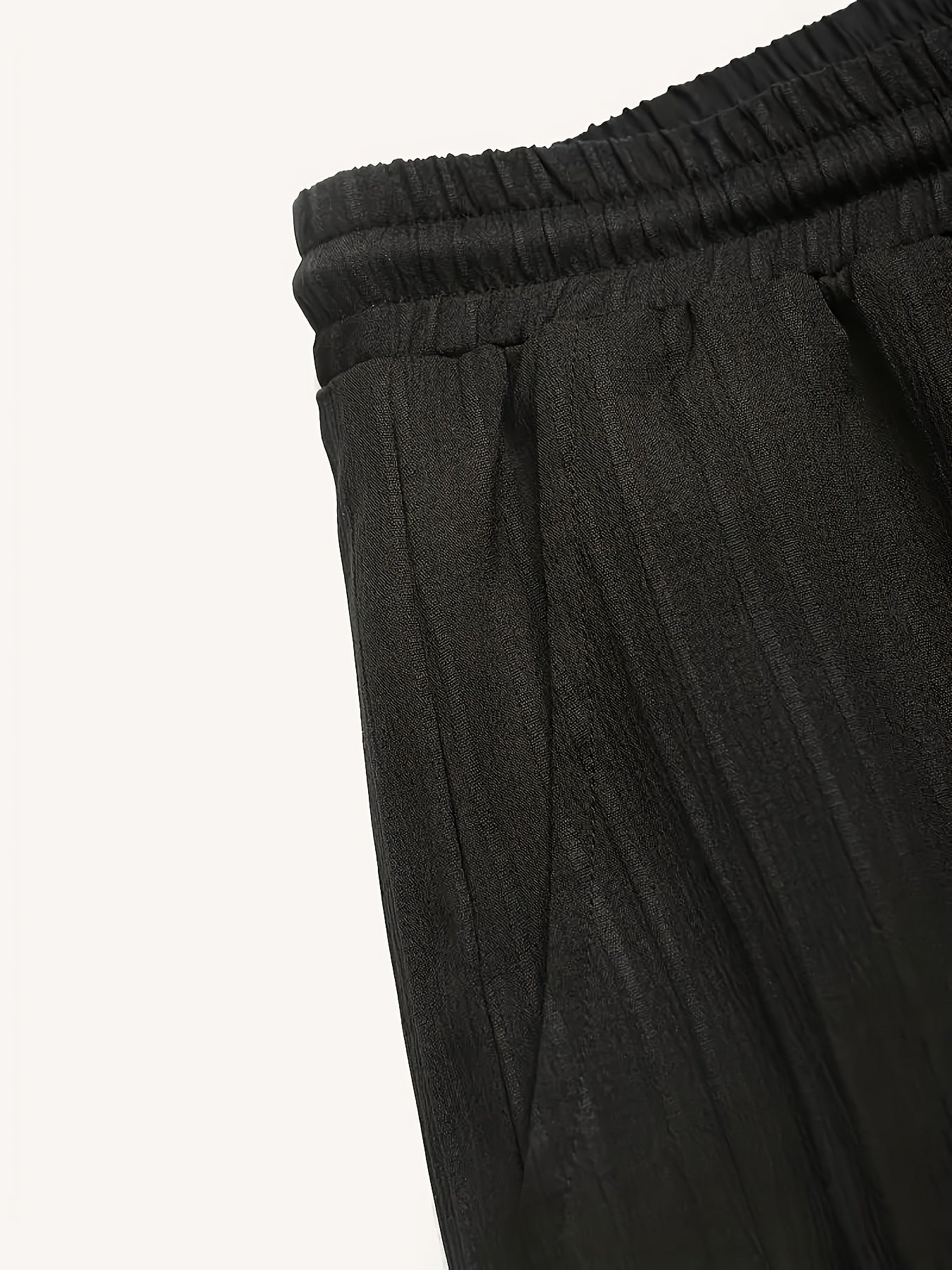 Elevate your casual wardrobe with our Fashionable Men's Two-Piece Set, featuring a stylish striped shirt and comfortable drawstring pants. This versatile outfit is crafted from high-quality polyester, offering a slight stretch for all-day comfort while maintaining a sharp look.