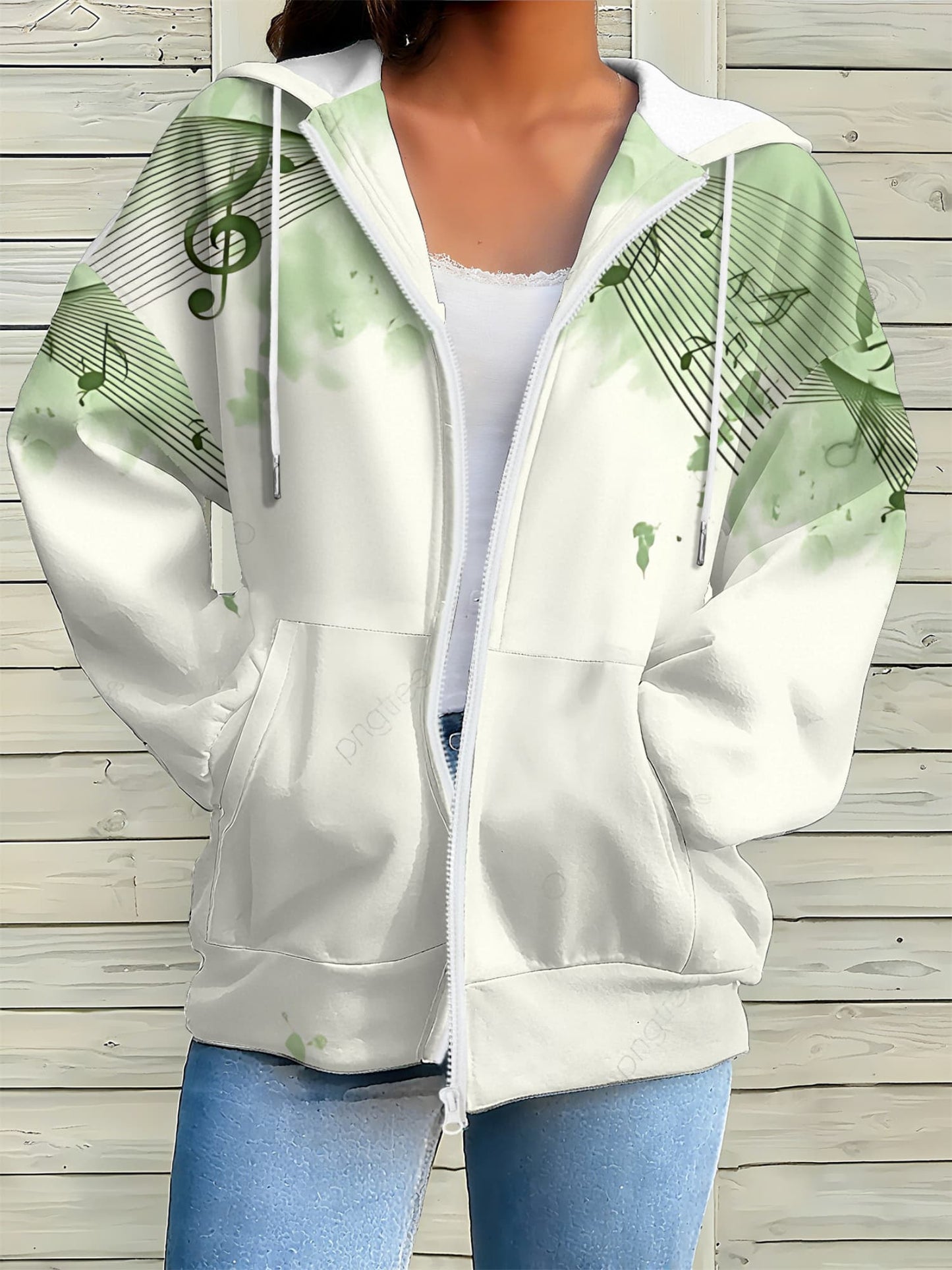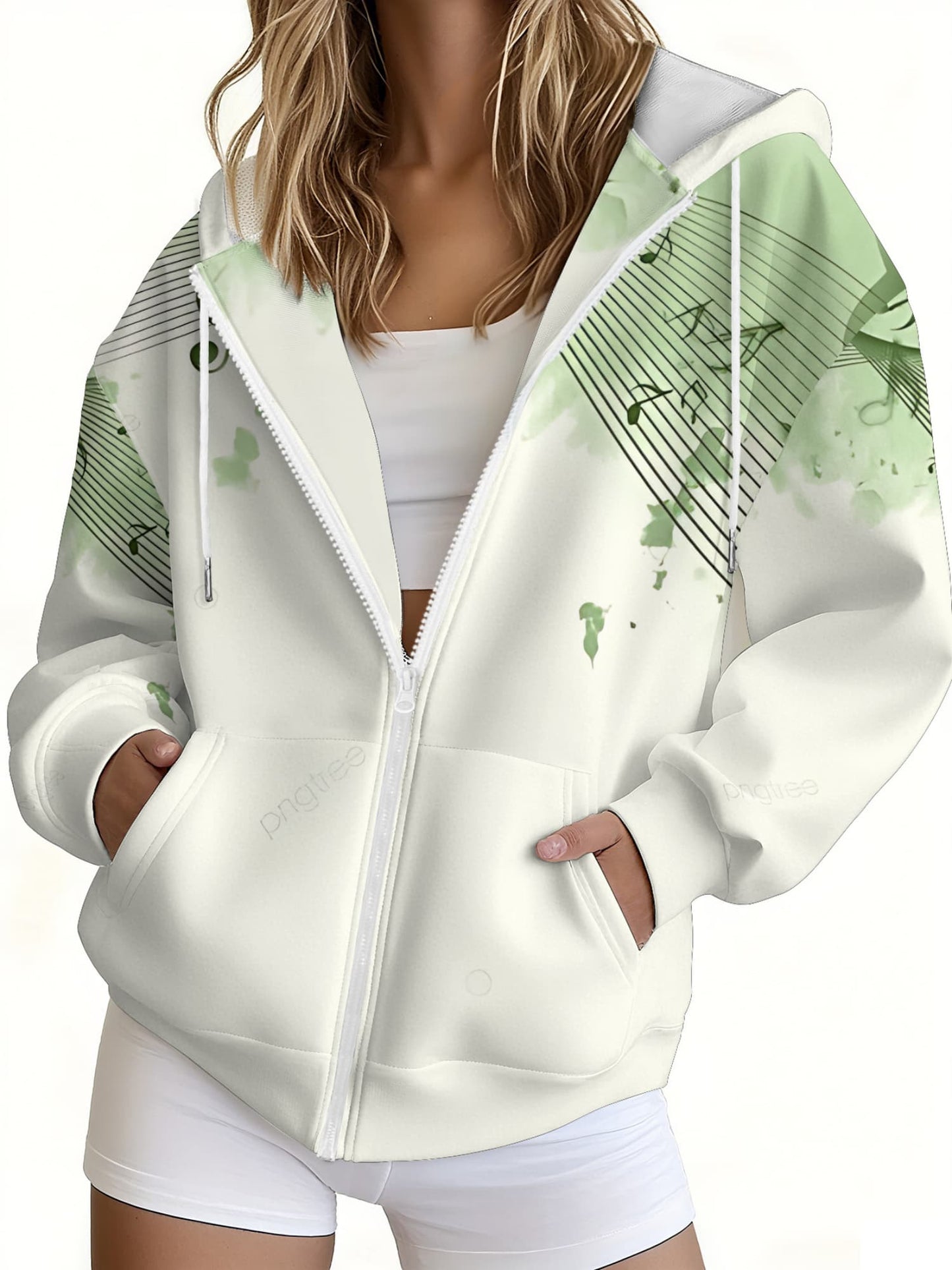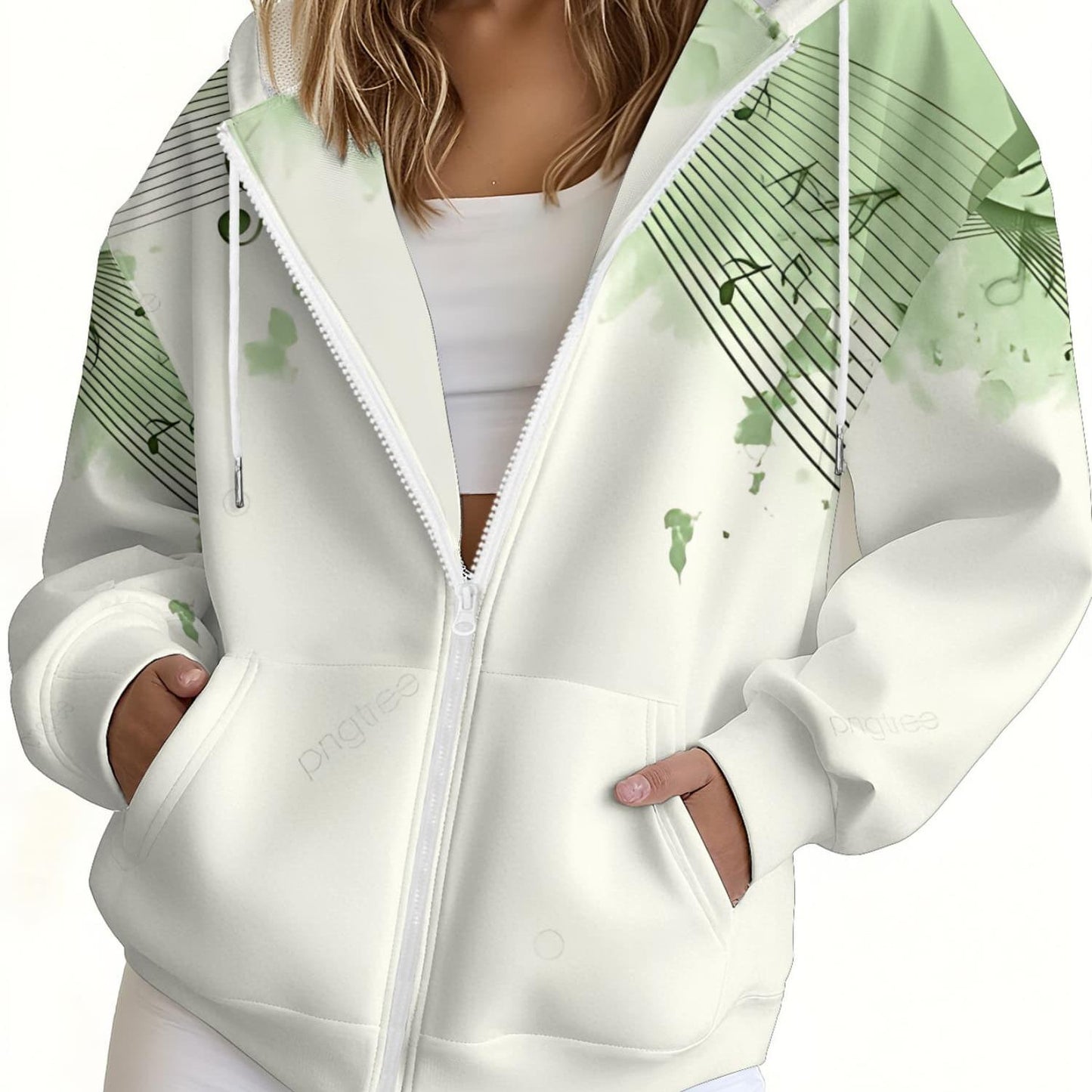 Women's 3D Music-Themed Zip-Up Hoodie - Elegant Casual Spring Wear