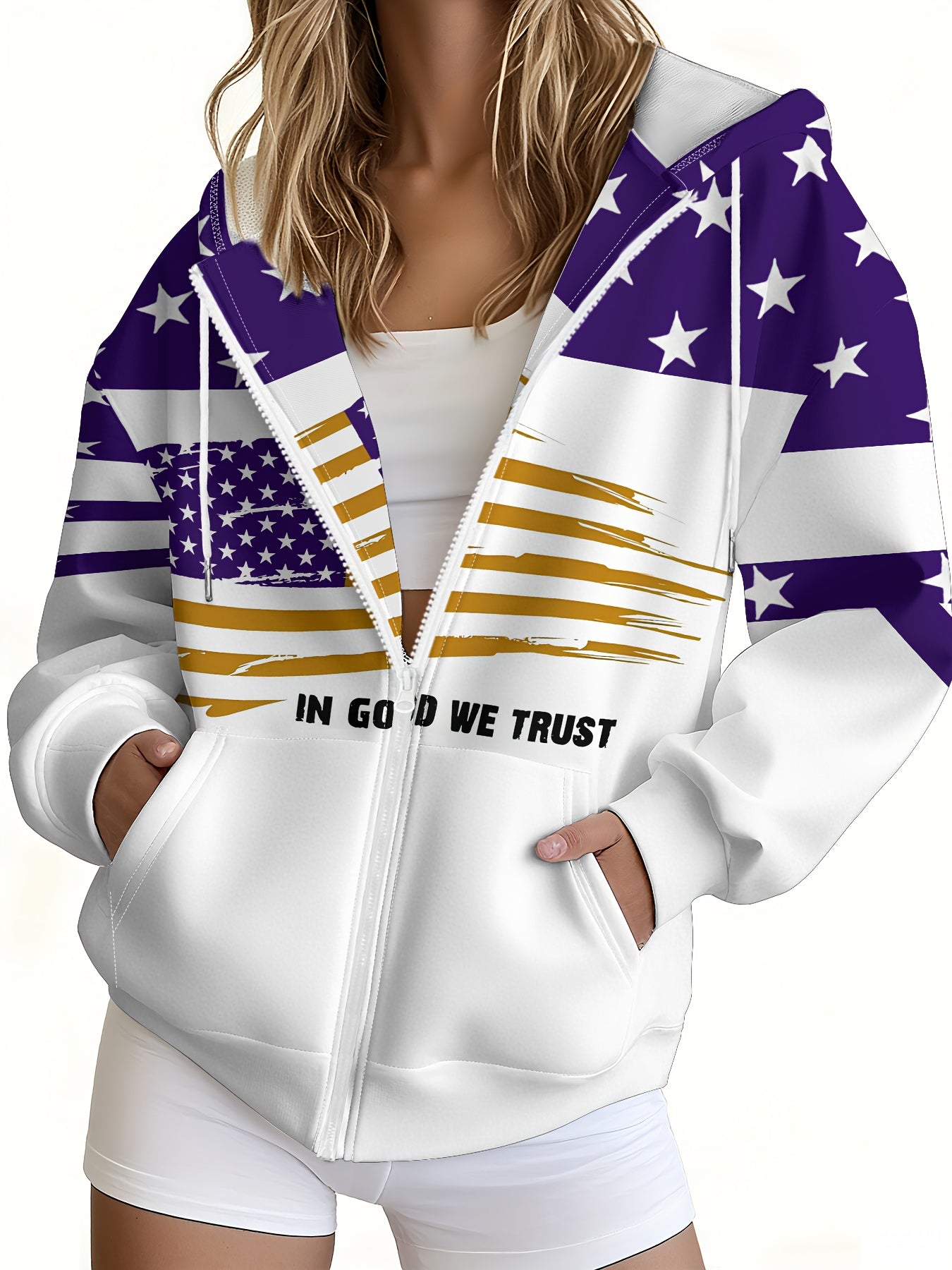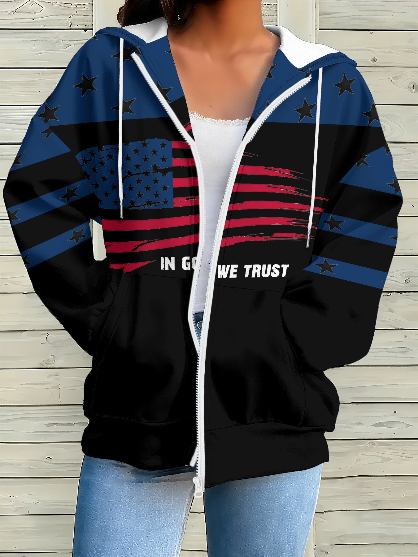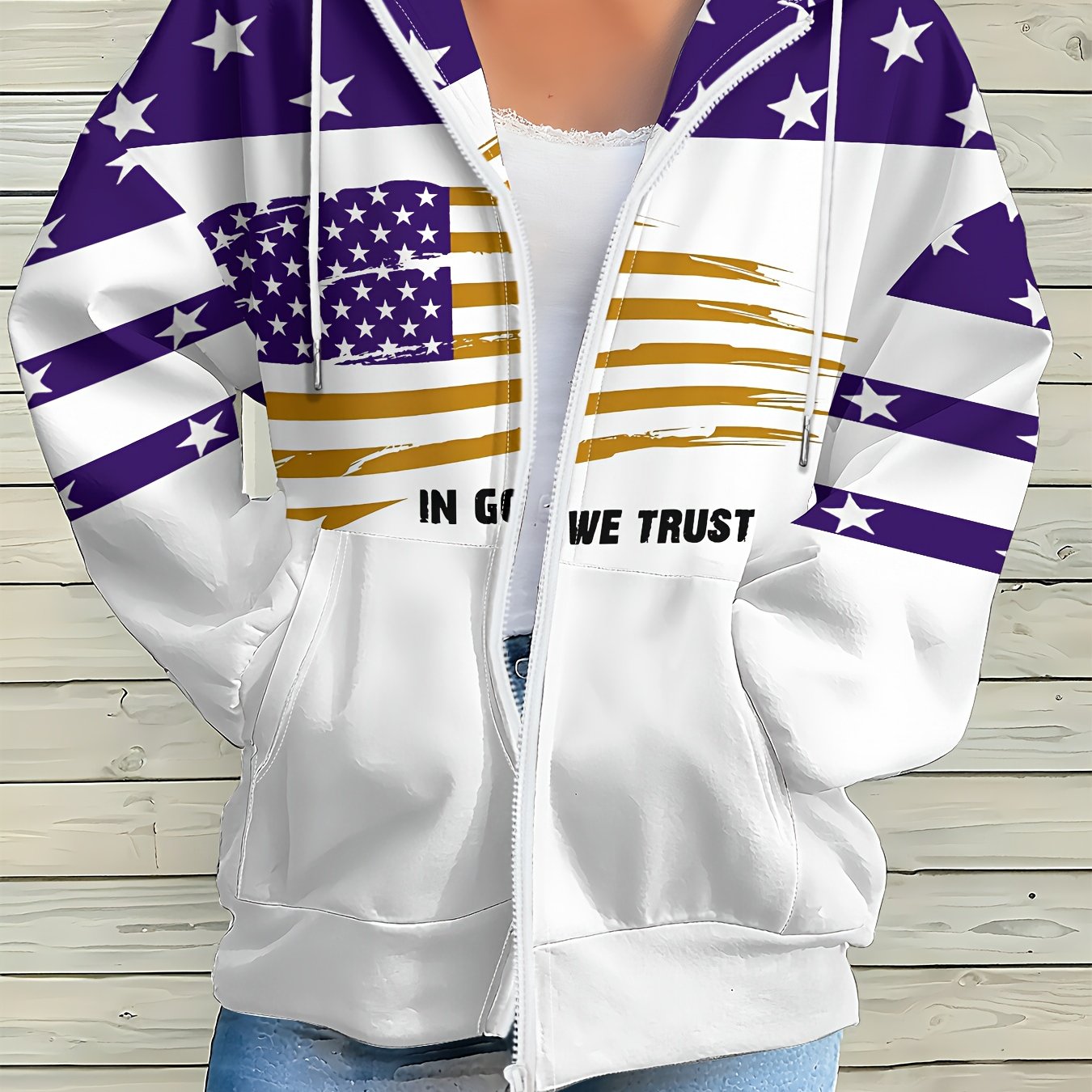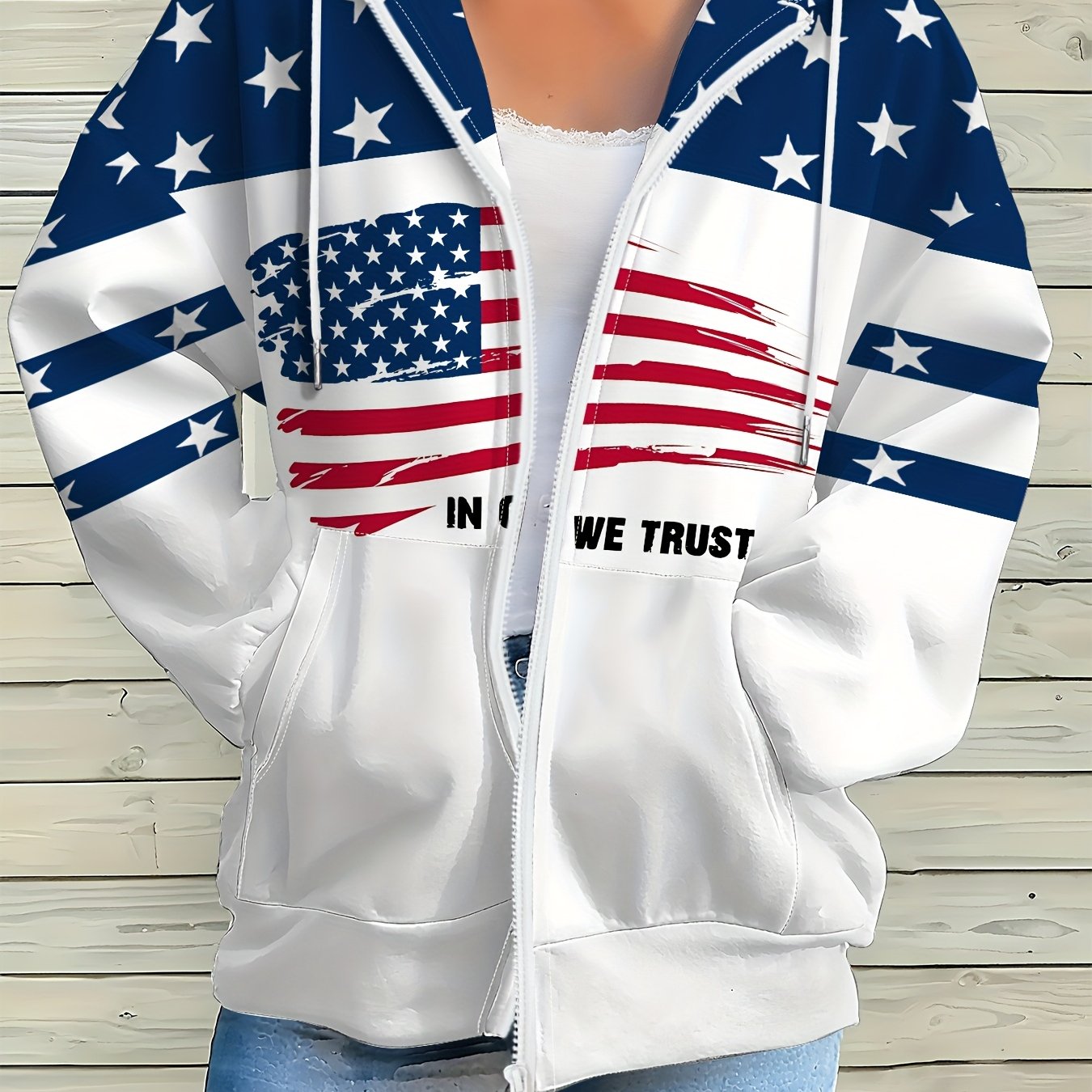 Women's Patriotic Full-Zip Hoodie - American Flag Design, Casual Fit