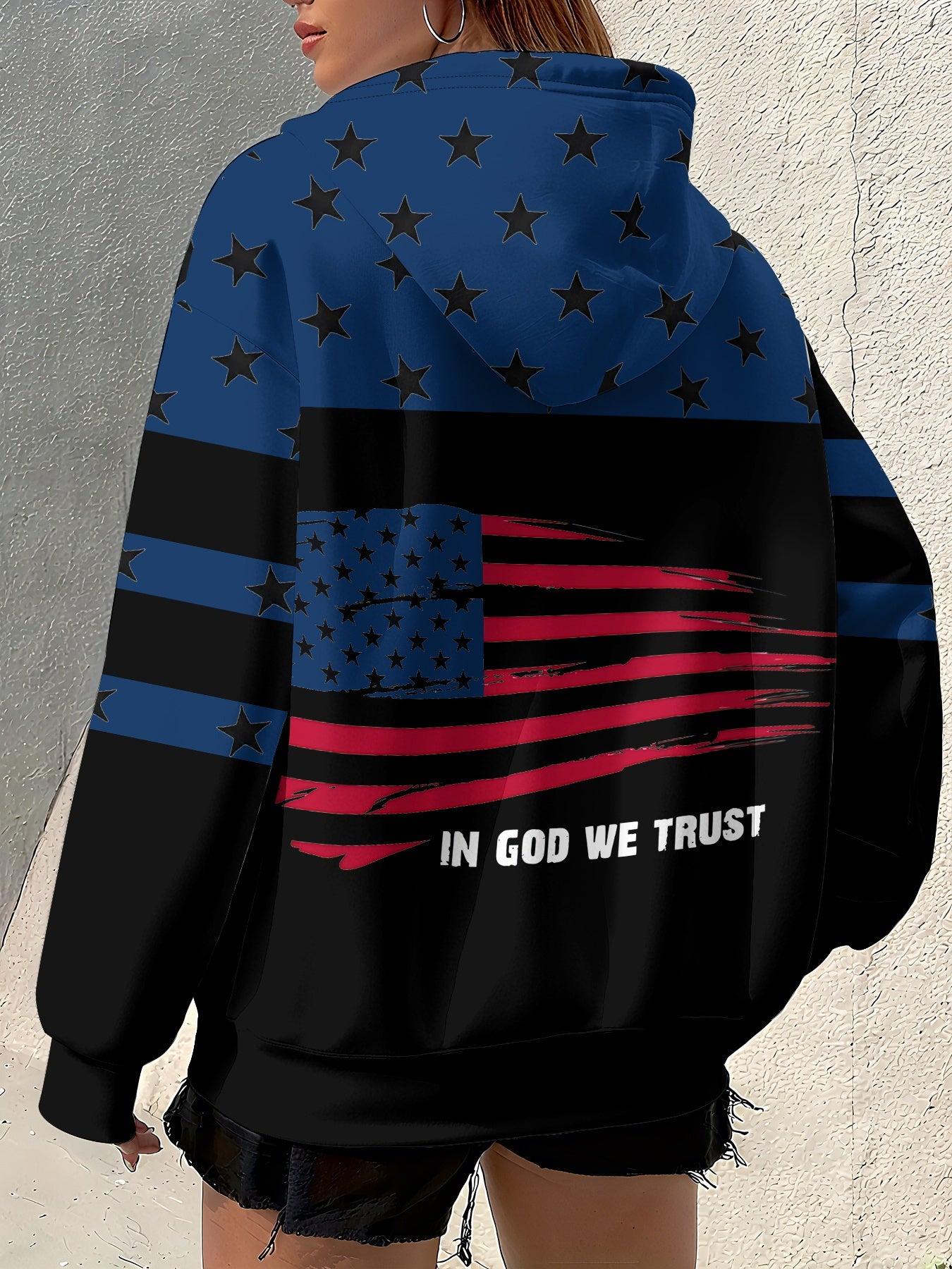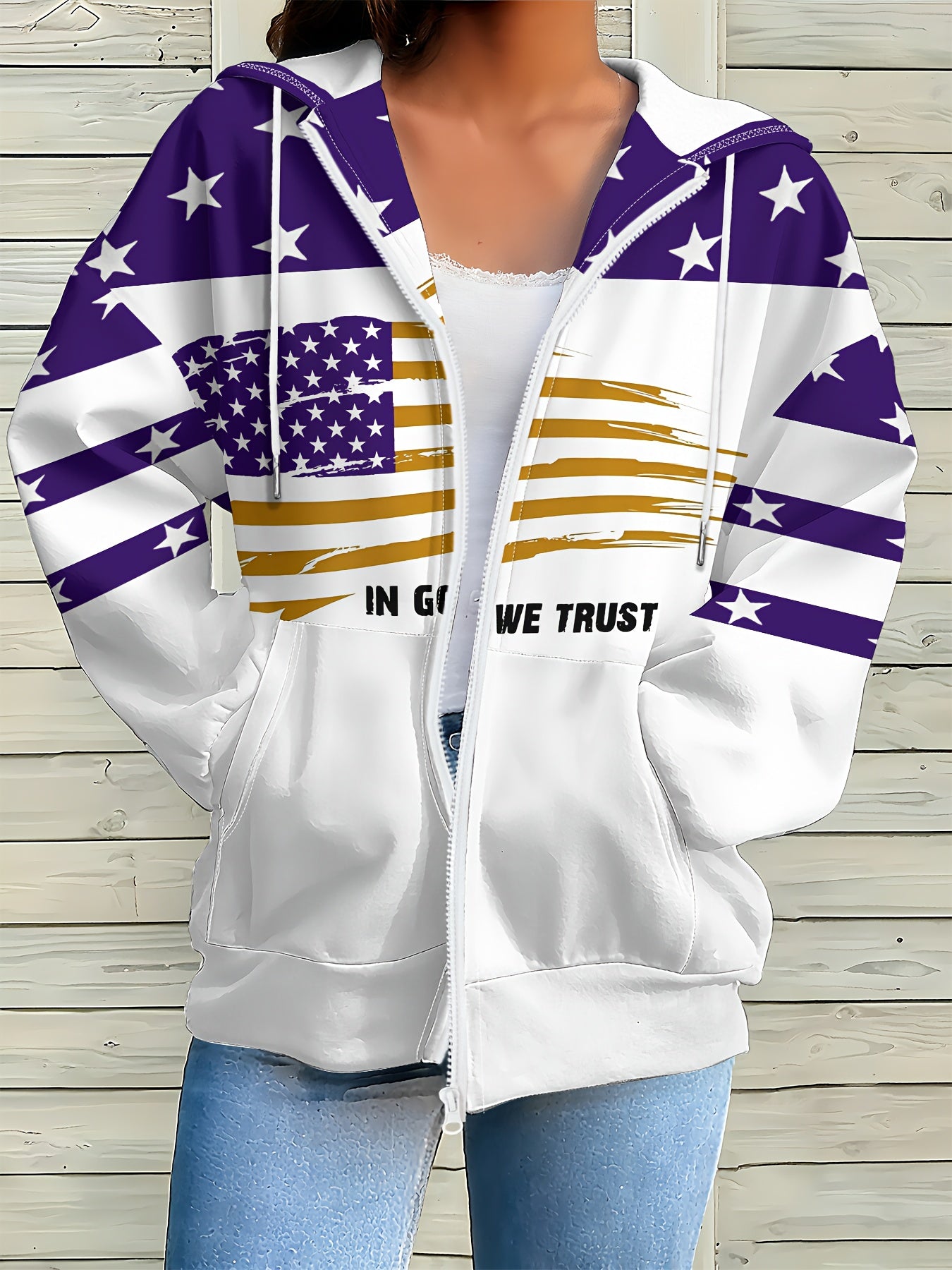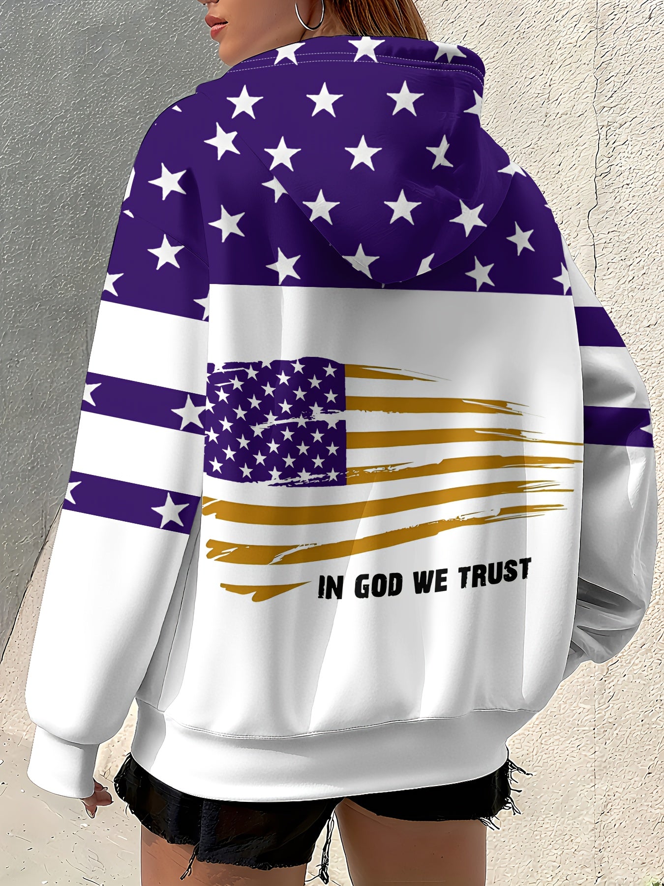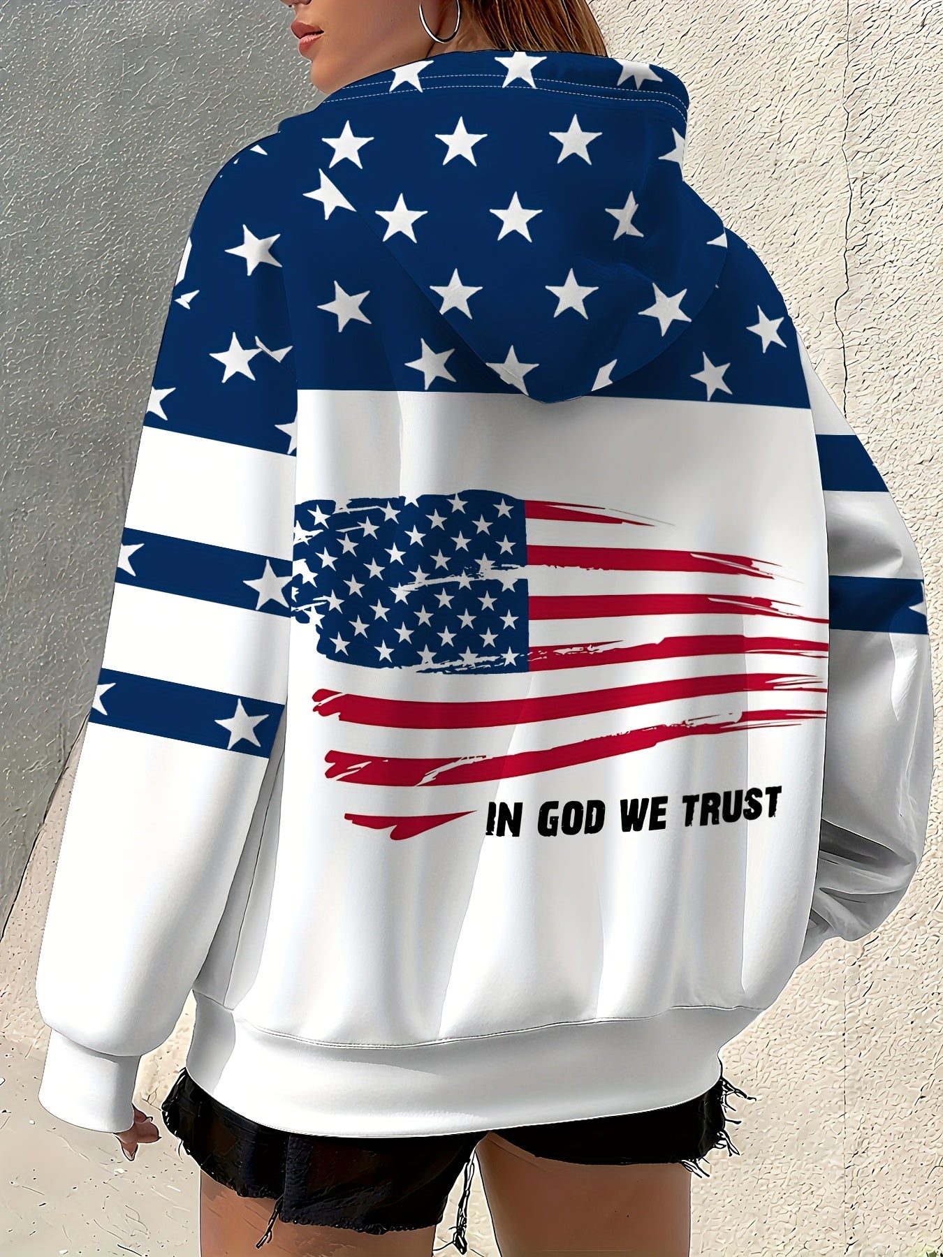 Women's Patriotic Full-Zip Hoodie - American Flag Design, Casual Fit