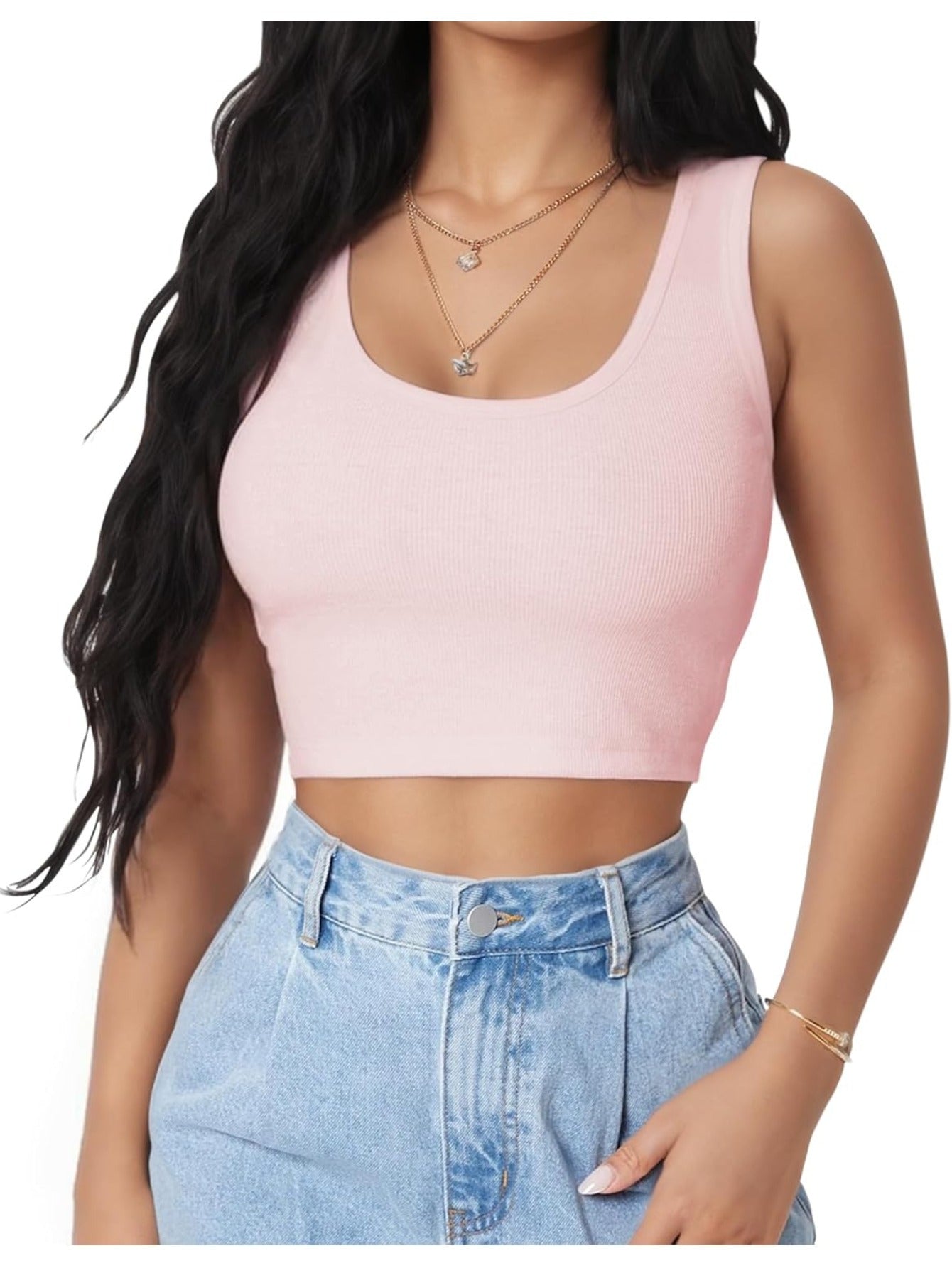 Women's Slim Fit Ribbed Crop Top - U-Neck Sleeveless Style