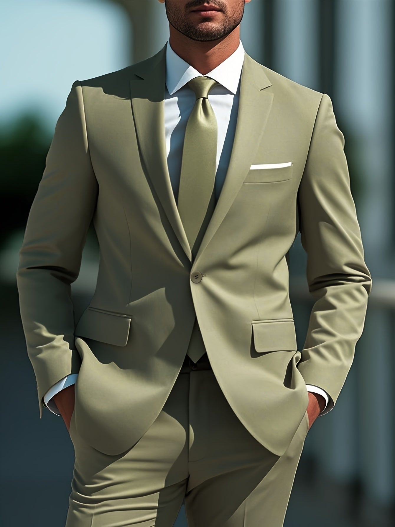 Men's Slim-Fit Notch Lapel Suit Jacket - Lightweight, Solid Color