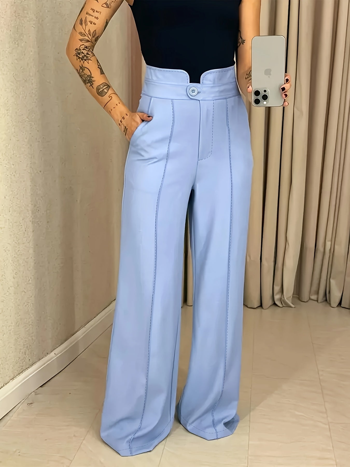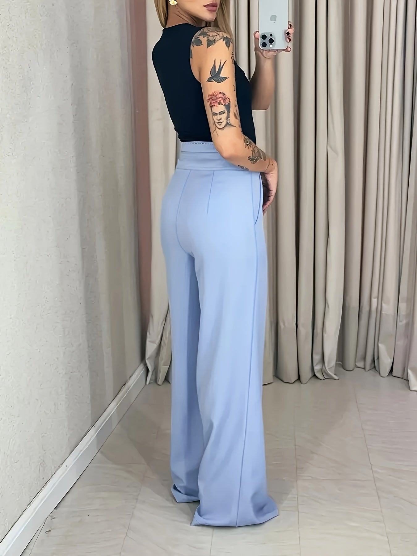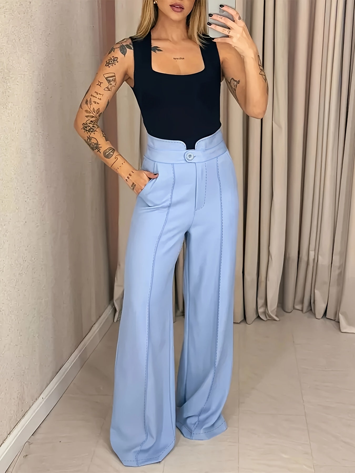 Women's High-Waisted Wide-Leg Pants - Light Blue Formal Trousers