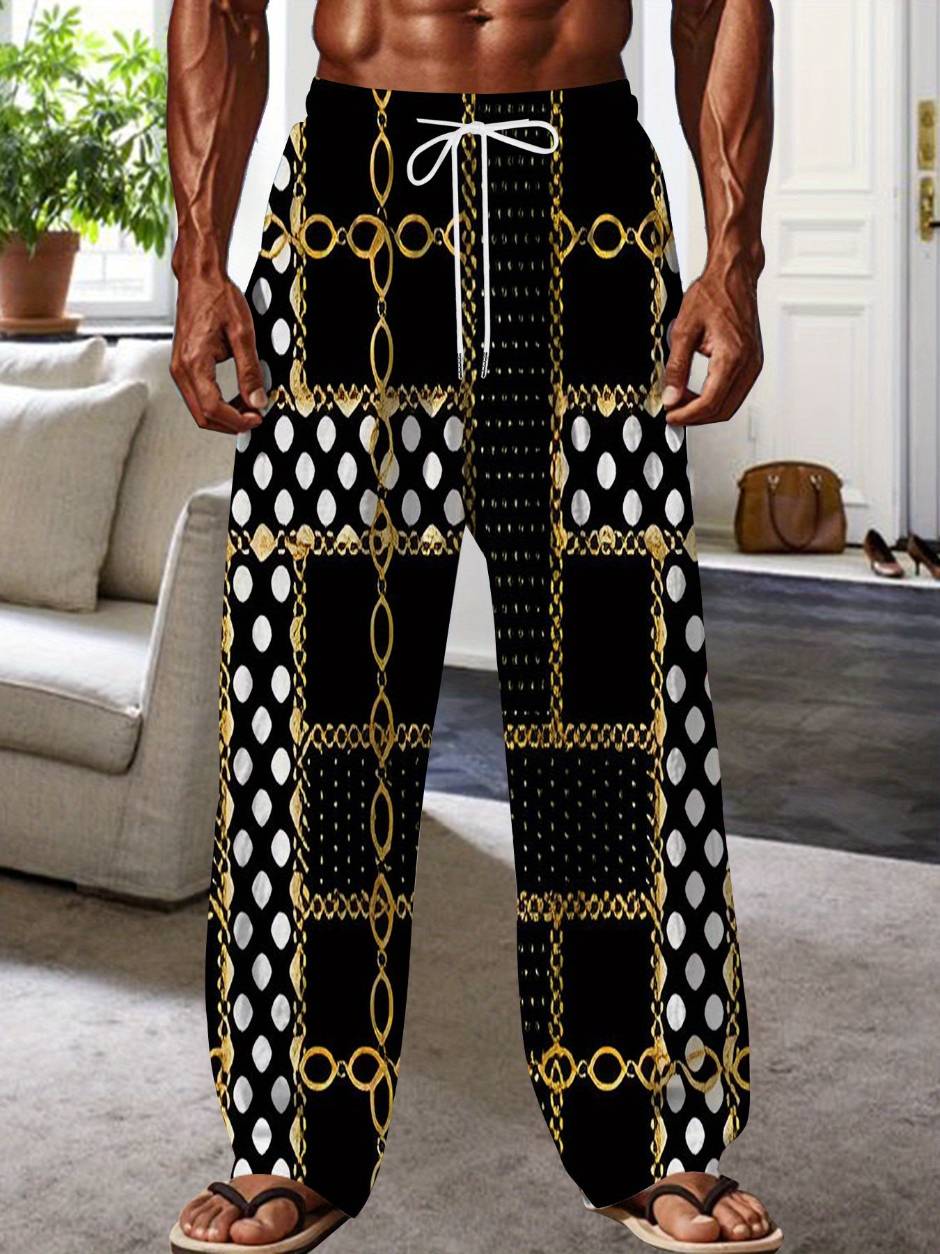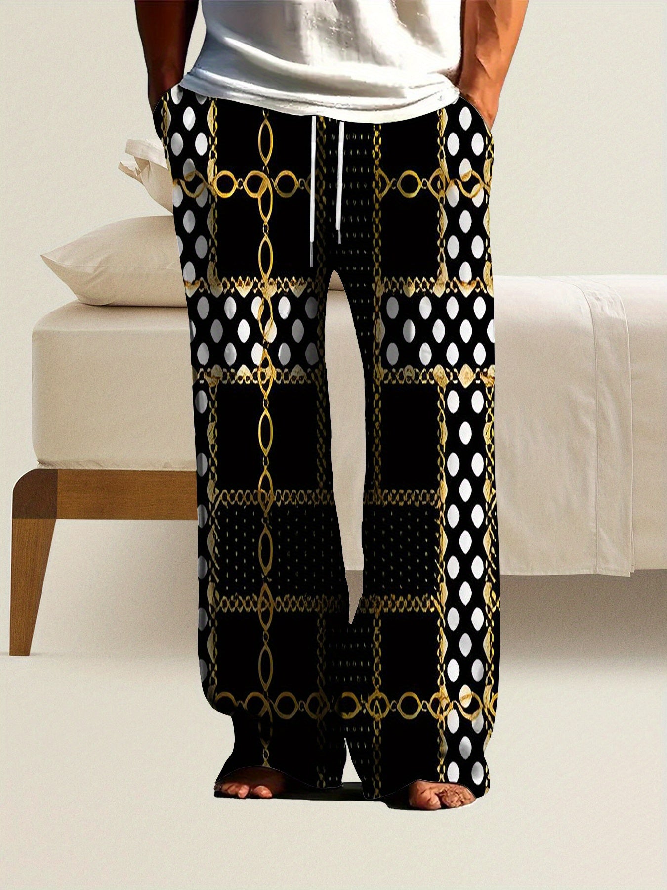 Men's Casual Loose-Fit Pants - Geometric Print with Golden Accents