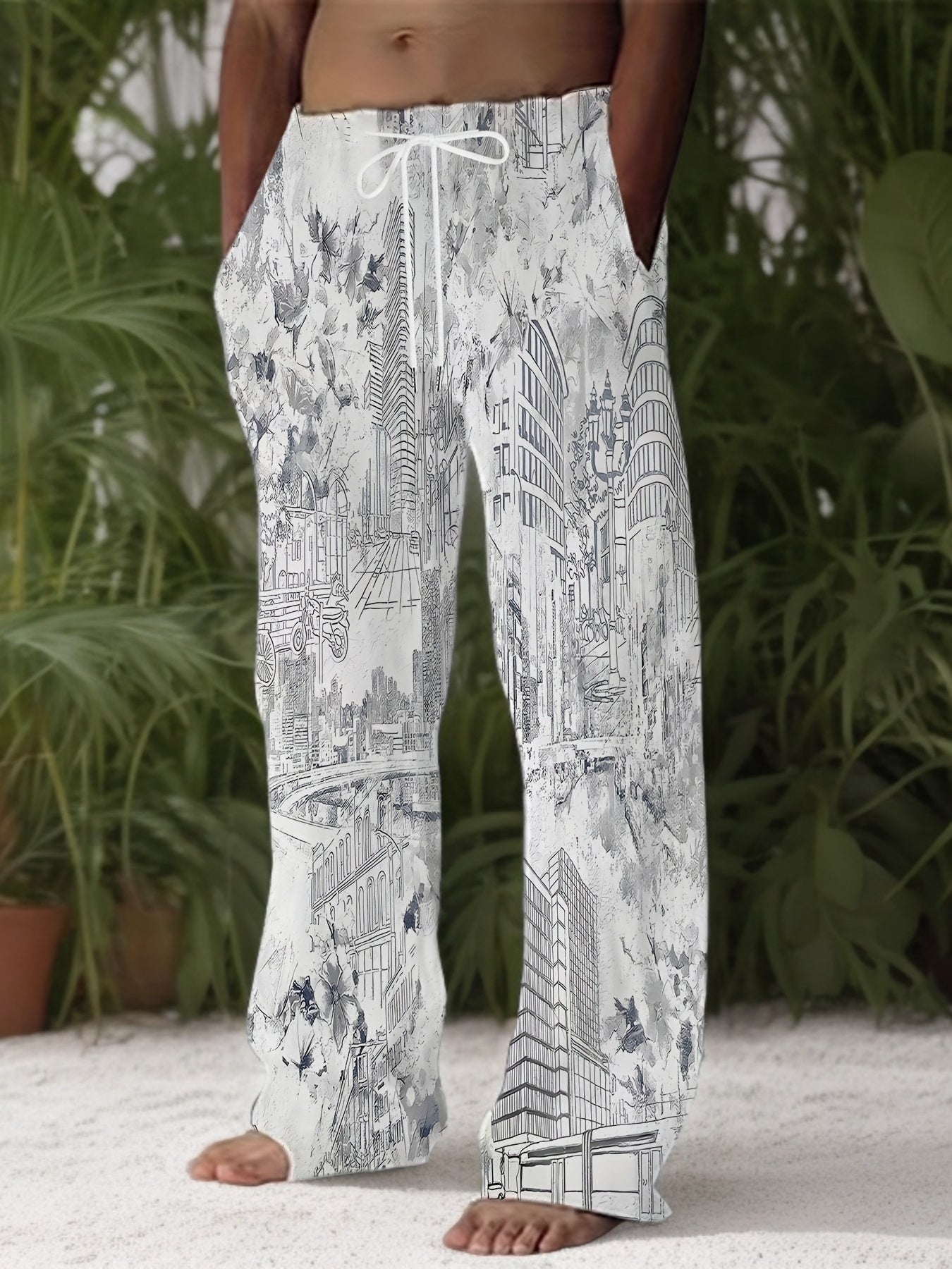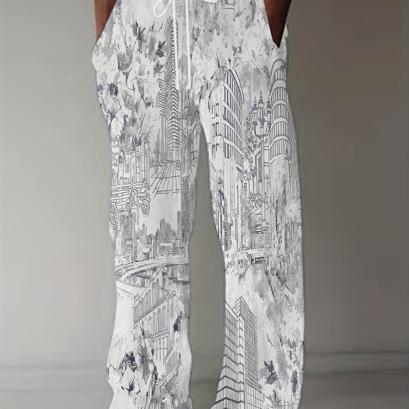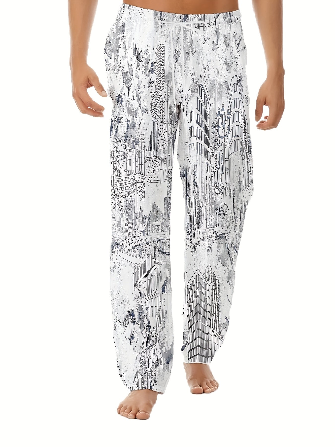 Men's Vintage Loose Fit Straight Leg Pants - Abstract Print, Casual Style