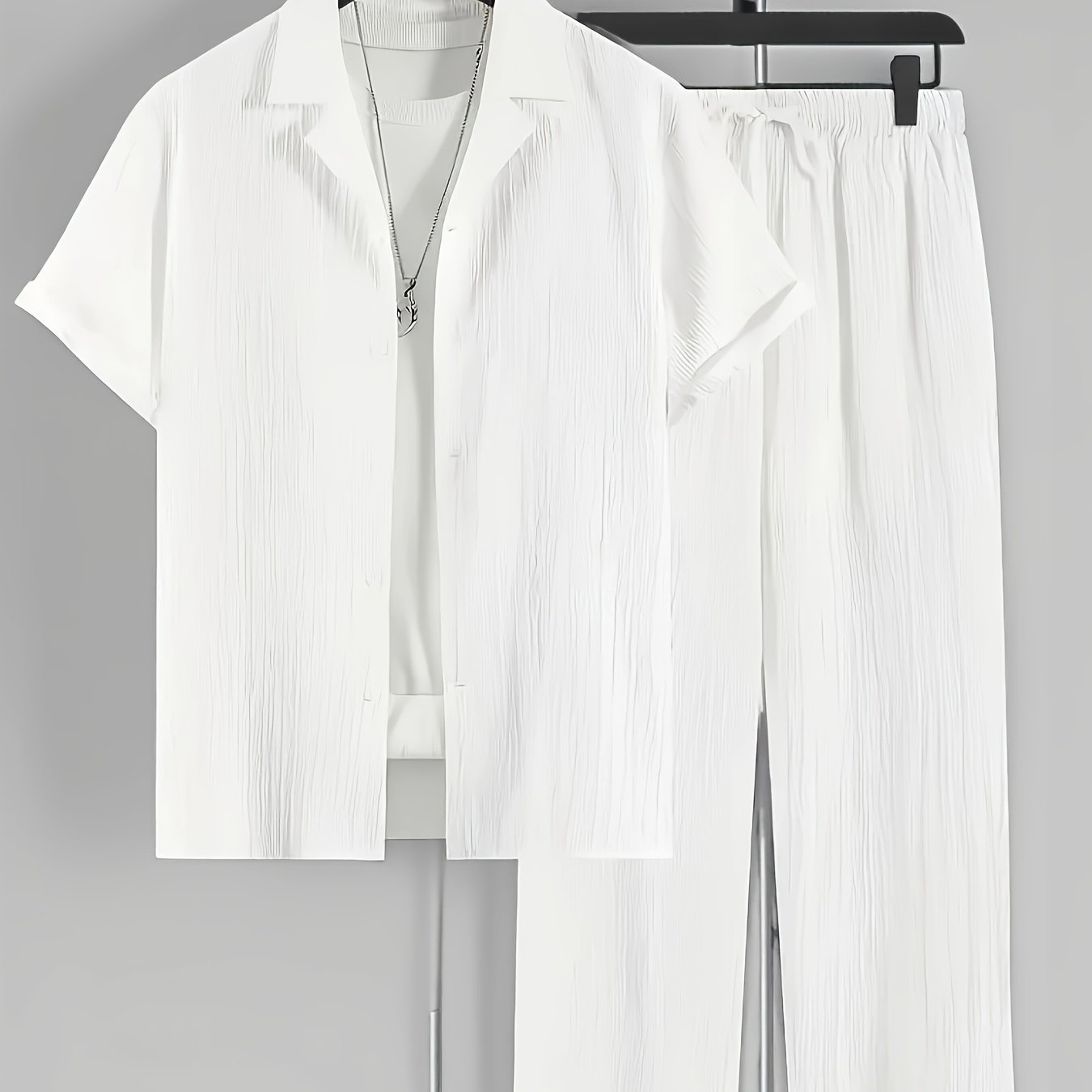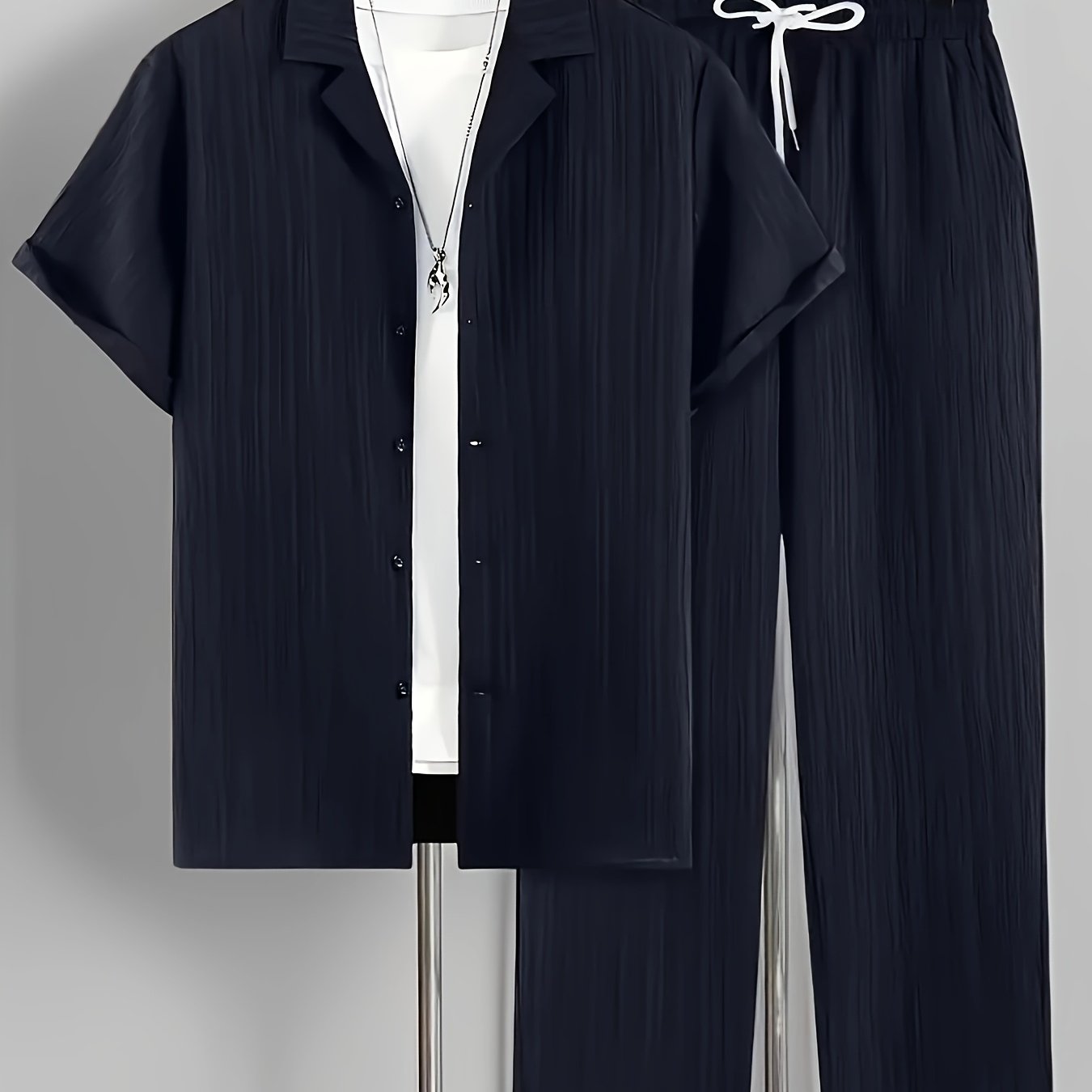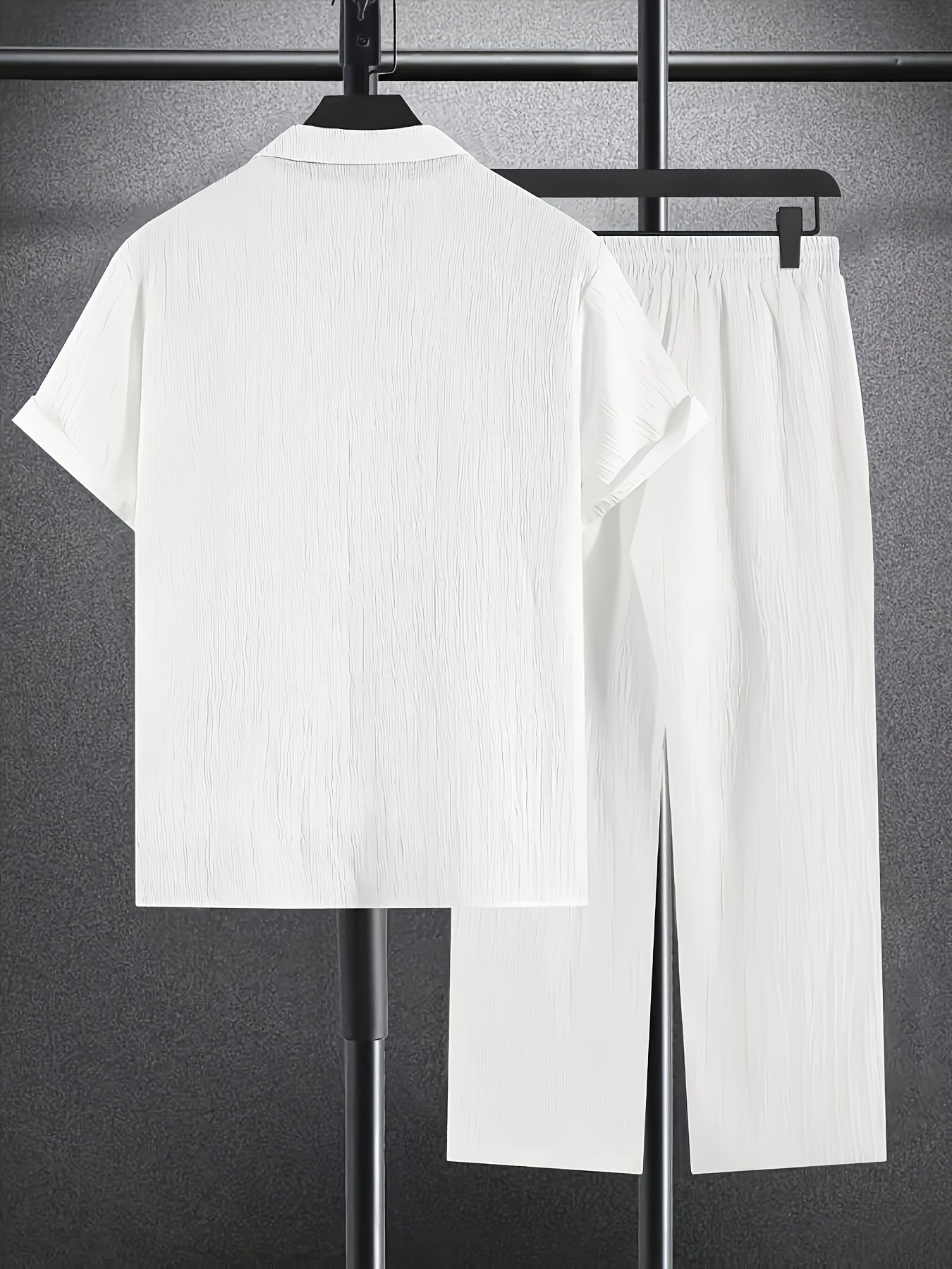 Men's Summer Casual Suit - Short Sleeve Cuban Collar & Drawstring Pants