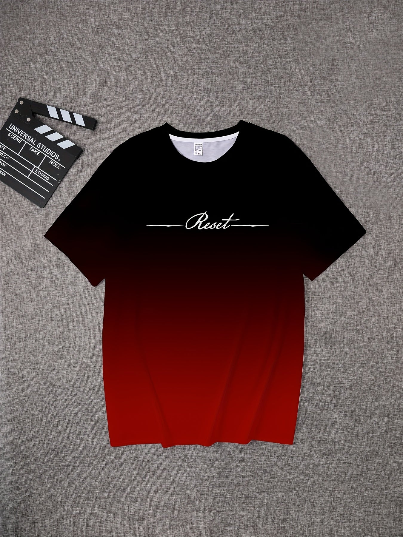 This Men's Gradient "Reset" 3D Print T-Shirt should be a staple in any adult's summer wardrobe. Its unique ombre pattern adds a modern touch to your everyday style, while the lightweight fabric ensures you stay comfortable throughout the day. Upgrade your casual outfits effortlessly with this versatile piece from Jiangxi, China.