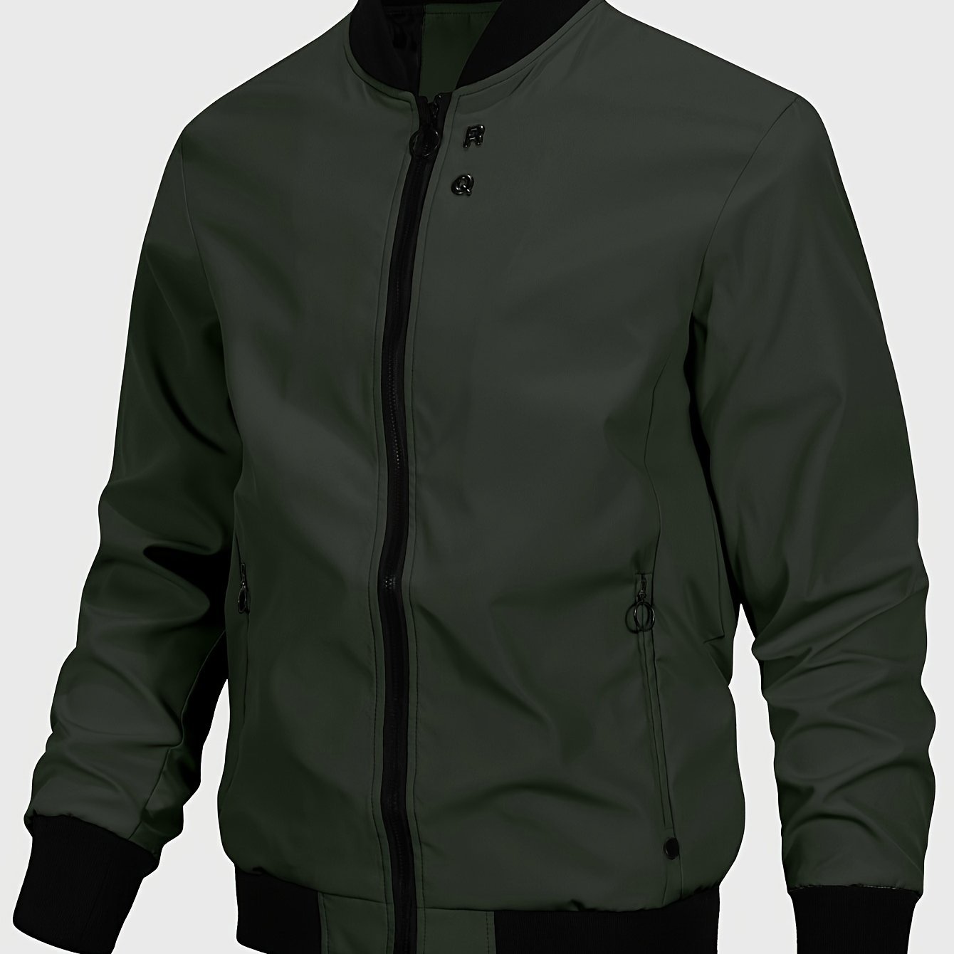 Men's Bomber Jacket - Solid Zip-Up Long Sleeve with Pockets for Fall