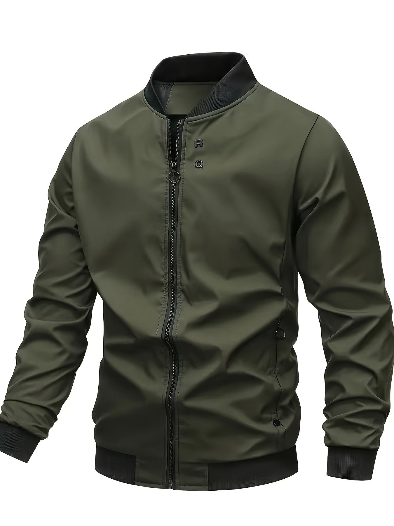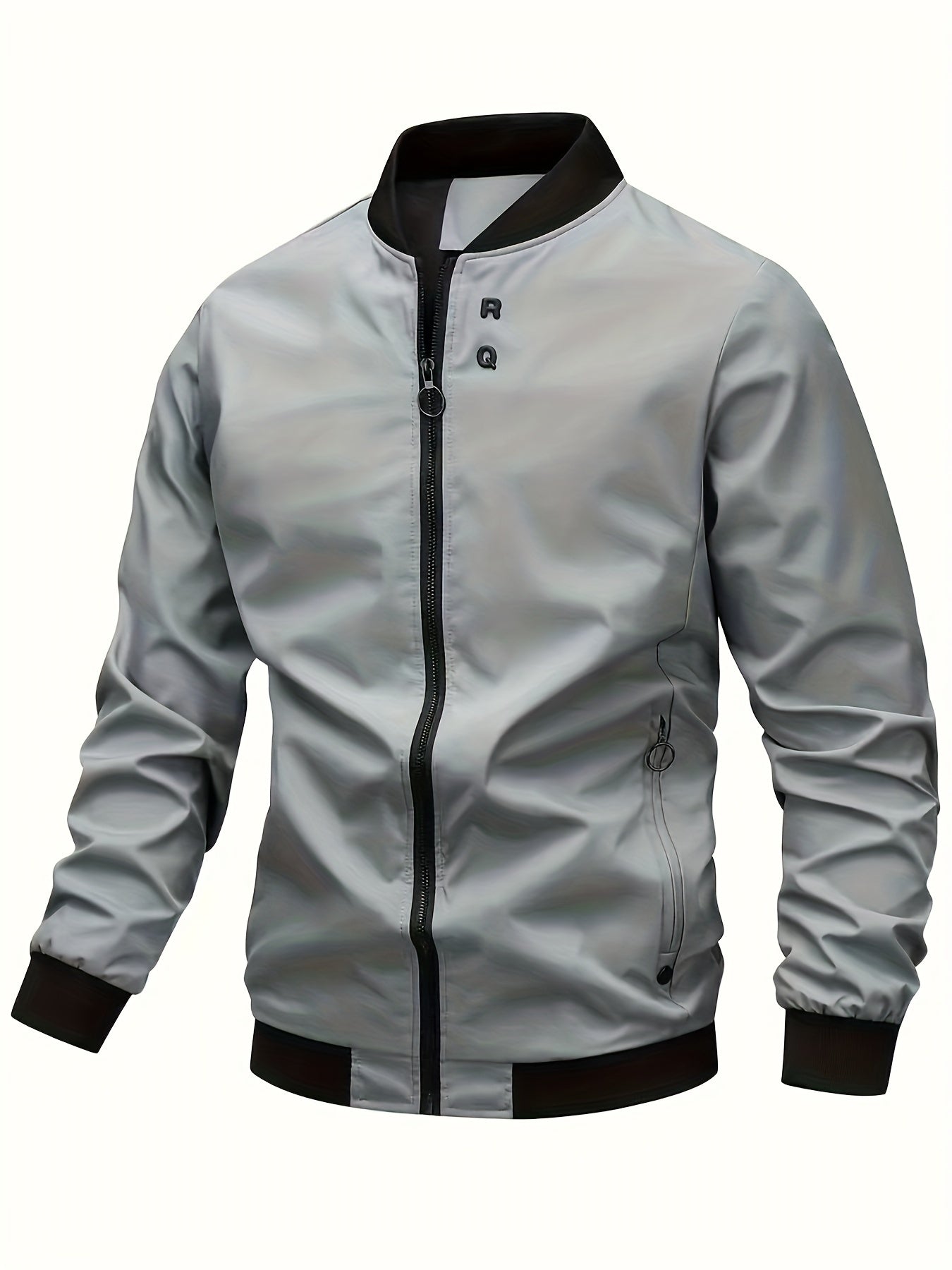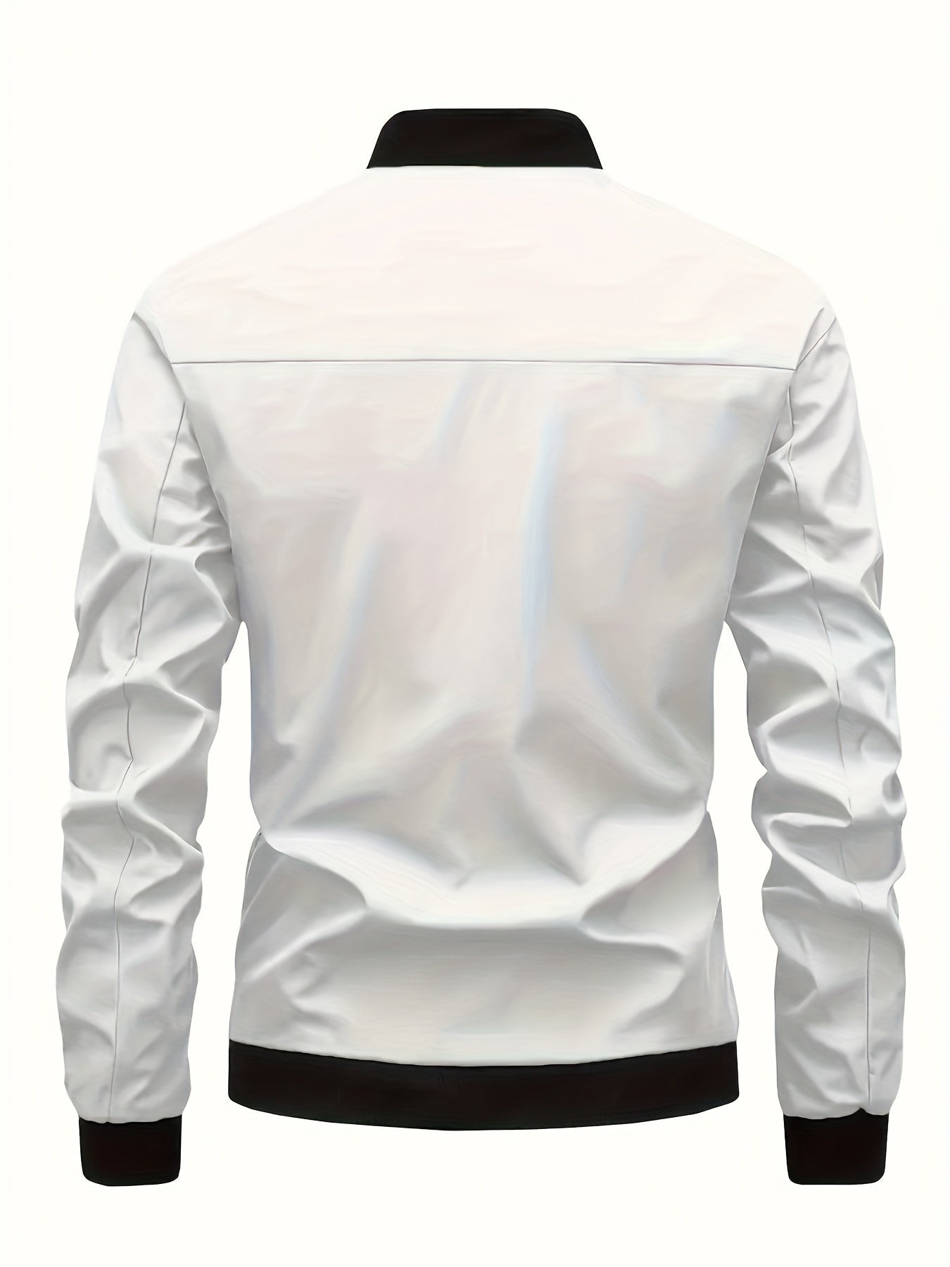 Men's Solid Zip-Up Jacket - Trendy Leisure Fit for Spring/Fall
