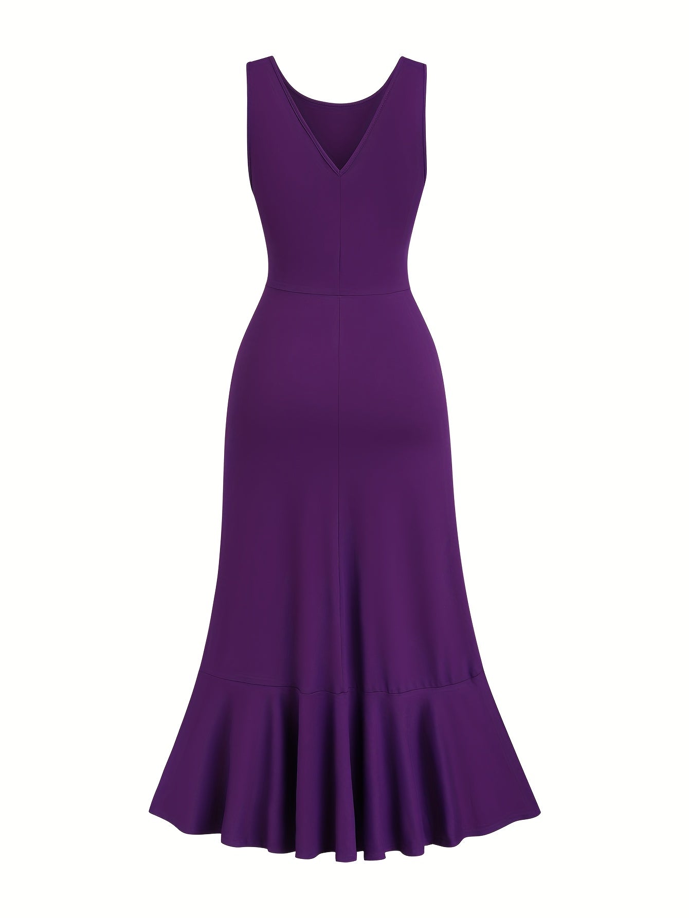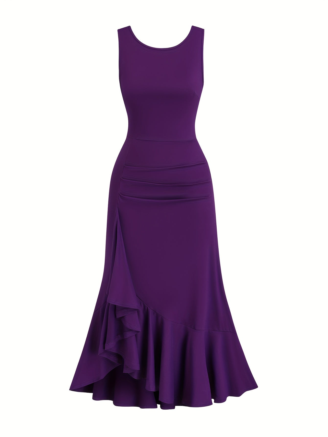 Elevate your wardrobe with this stunning gown that promises to turn heads. Whether you're attending a formal event or a casual gathering, this dress will ensure you stand out. The sleek design and elegant neckline will complement any figure, providing both style and comfort. Make a statement this season with our Women's Elegant Sleeveless Ruffled Dress.